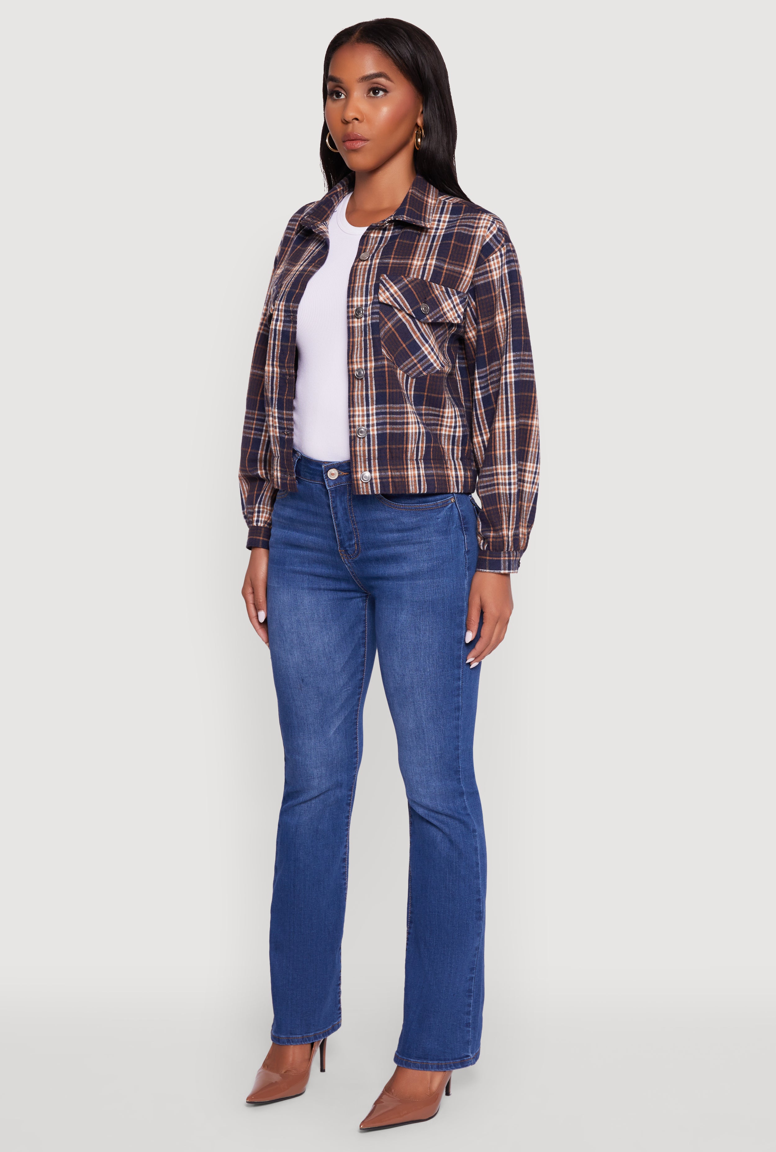• Versatile plaid pattern that pairs effortlessly with your favorite jeans or leggings