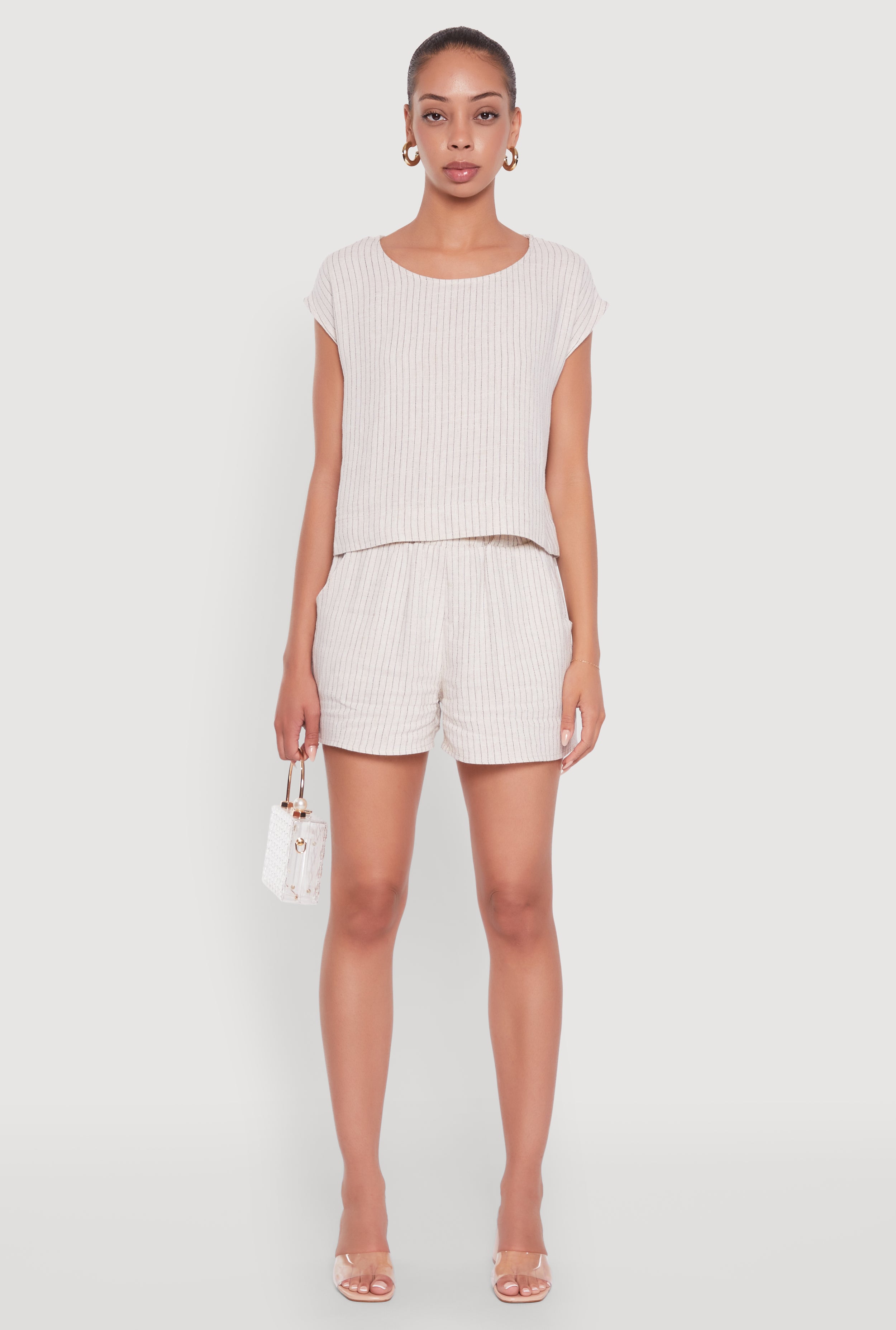 Linen Pinstripe Scoop Neck Cap Sleeve Top