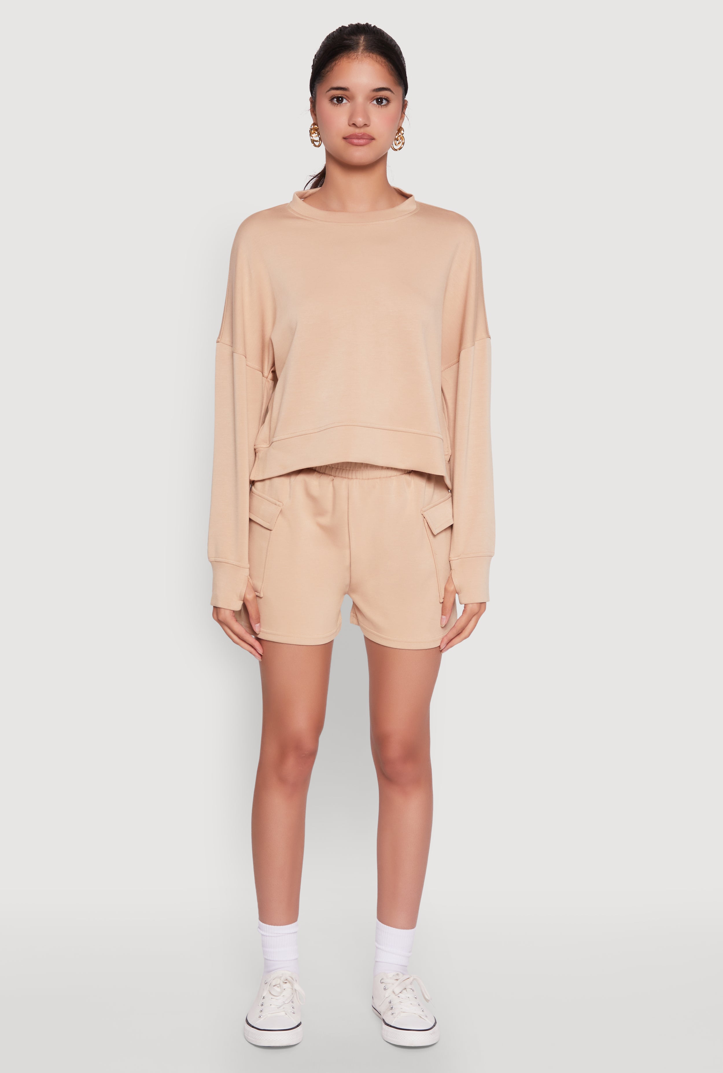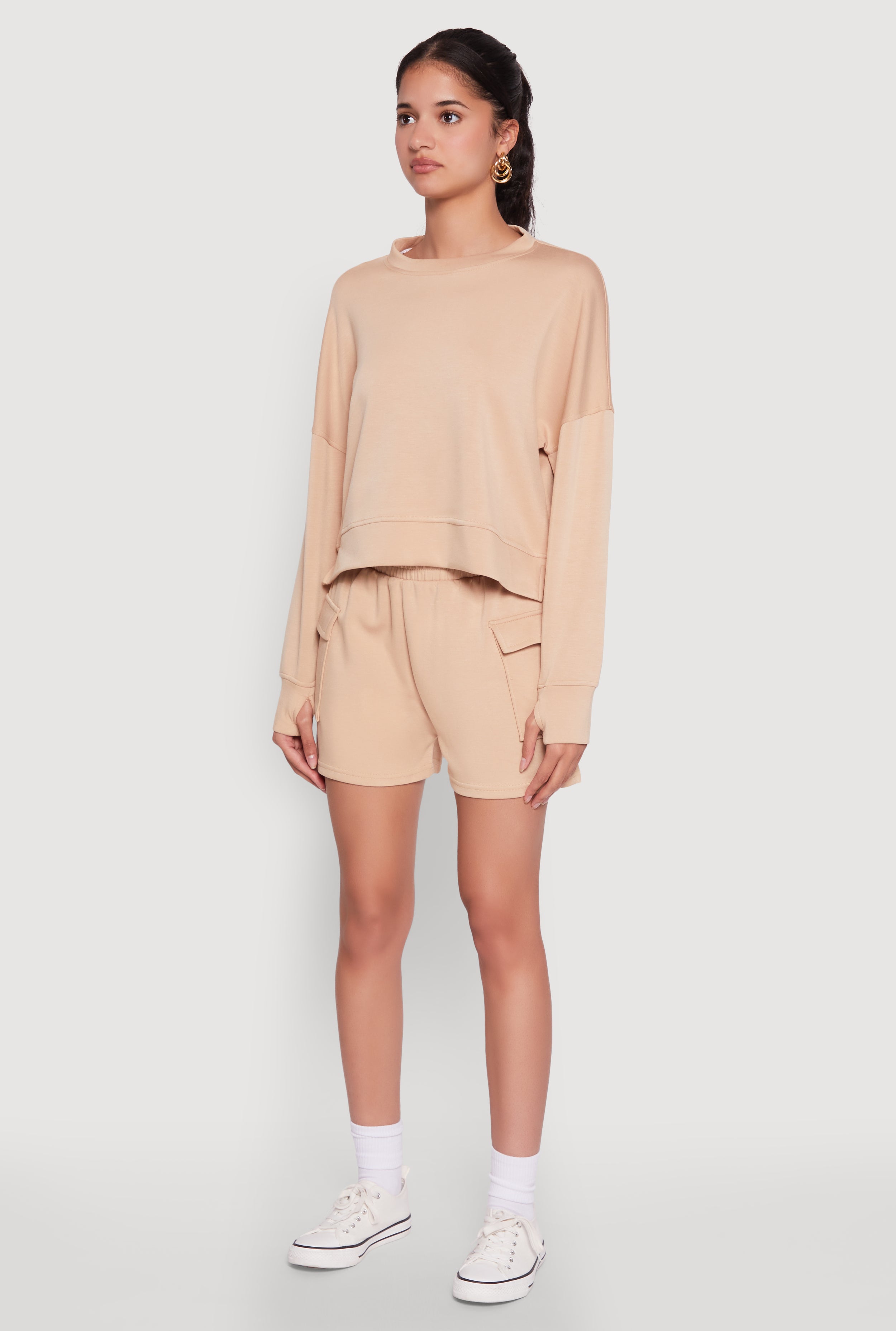 • Stylish Long Sleeve Soft Knit Sweatshirt with Thumb Holes