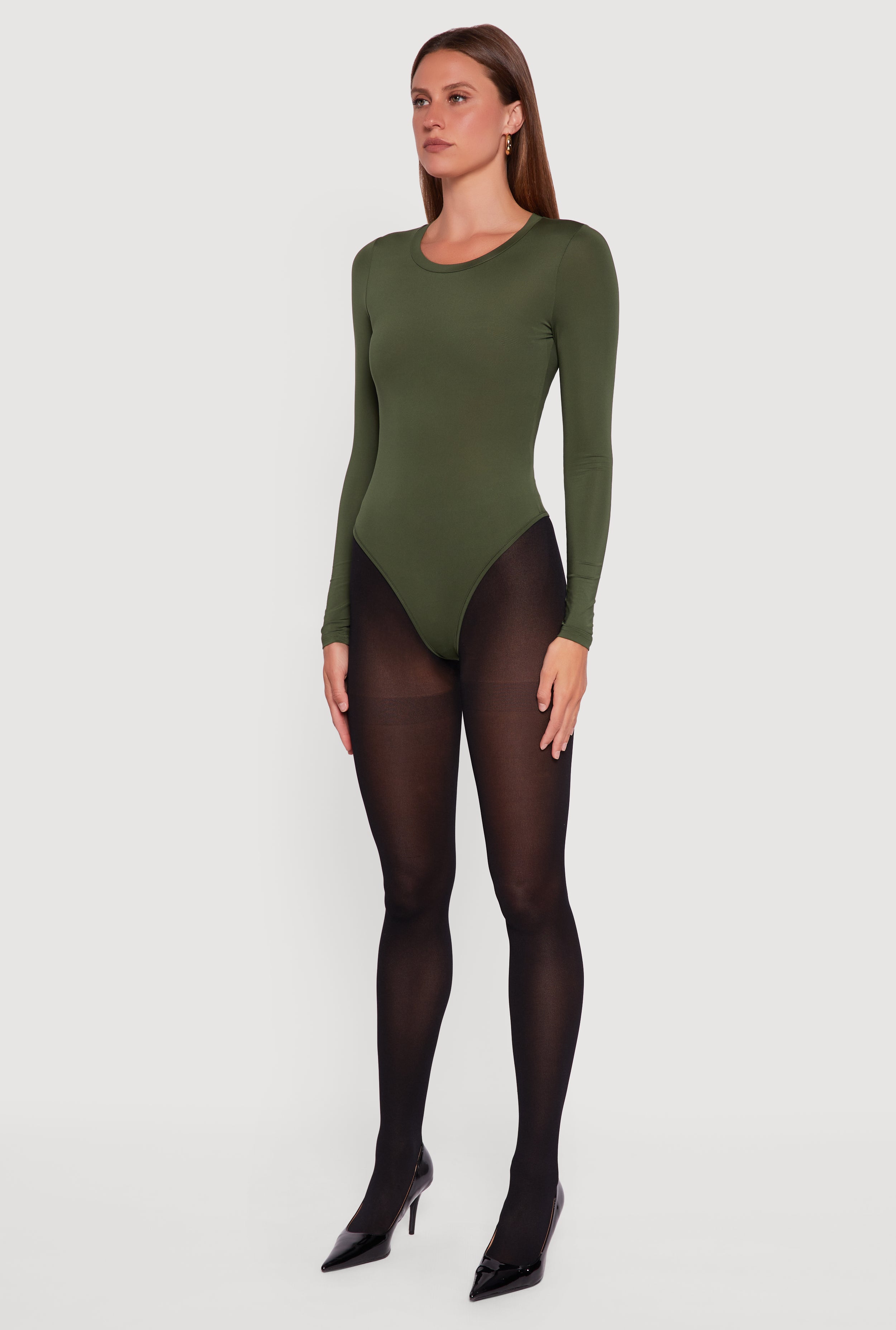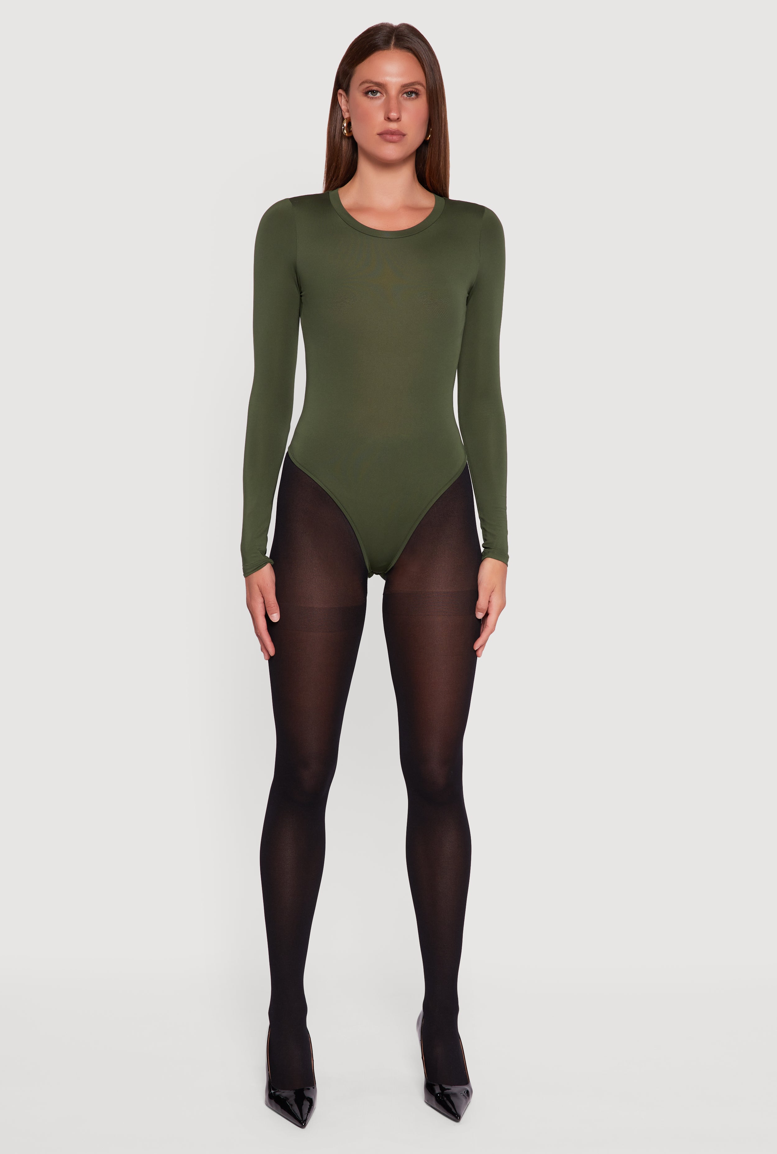 • Basic Curve Hugging Long Sleeve Crew Neck Bodysuit