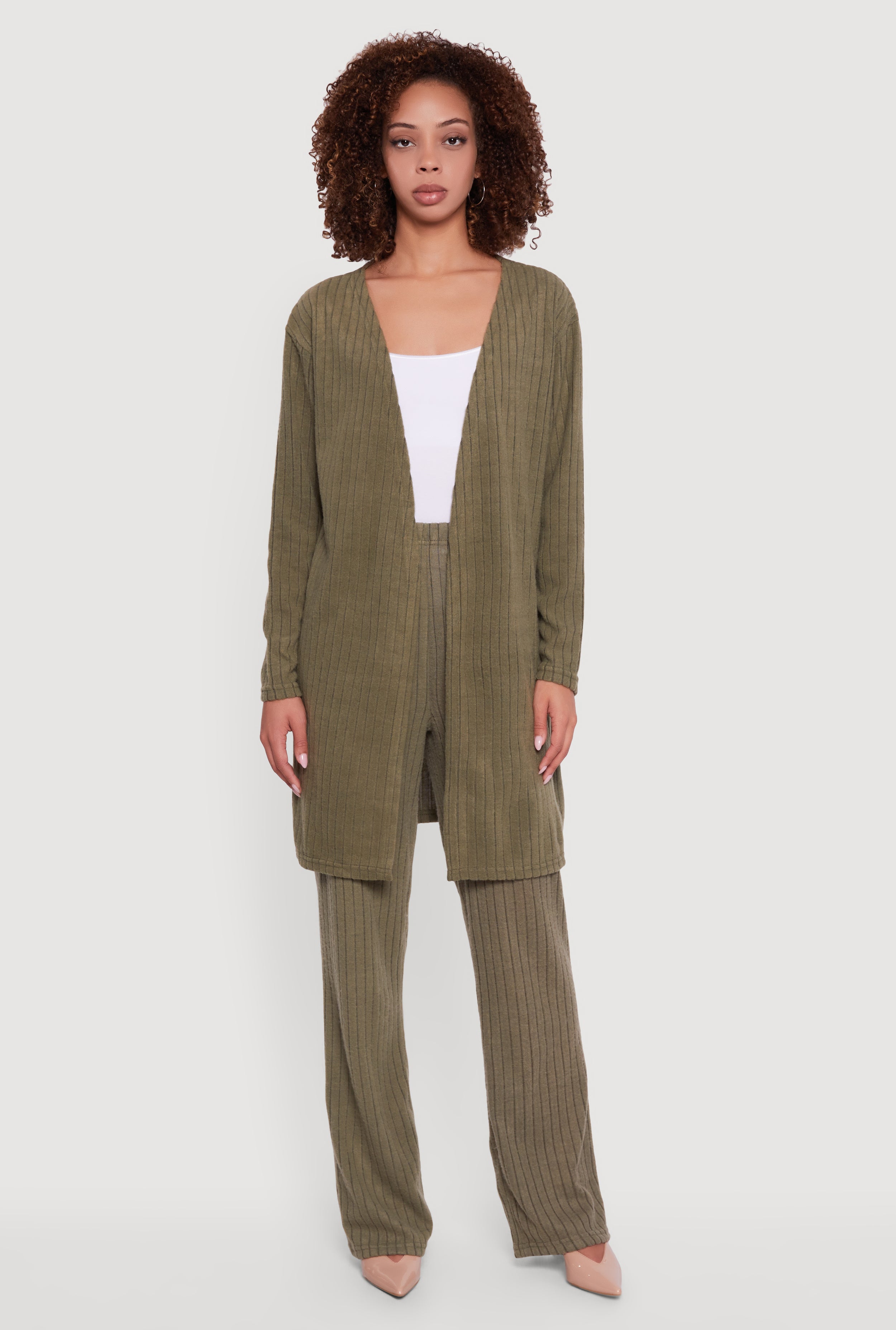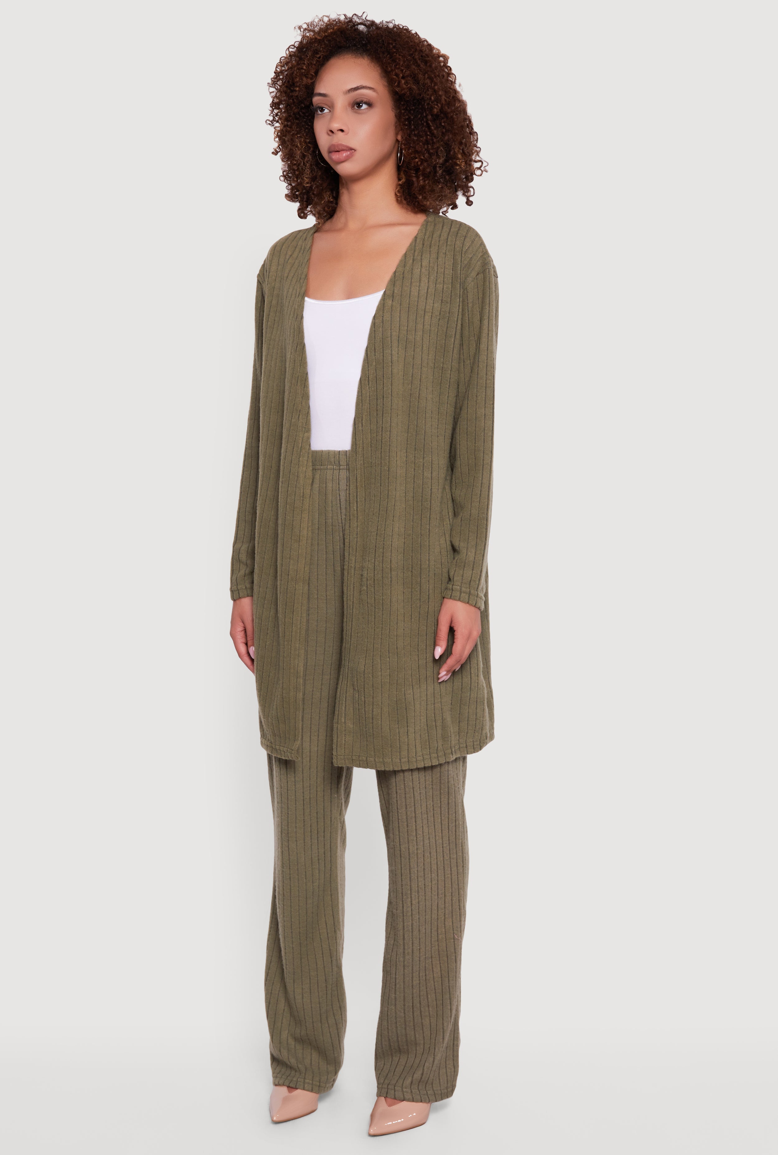 • Brushed Ribbed Knit Long Sleeve Duster