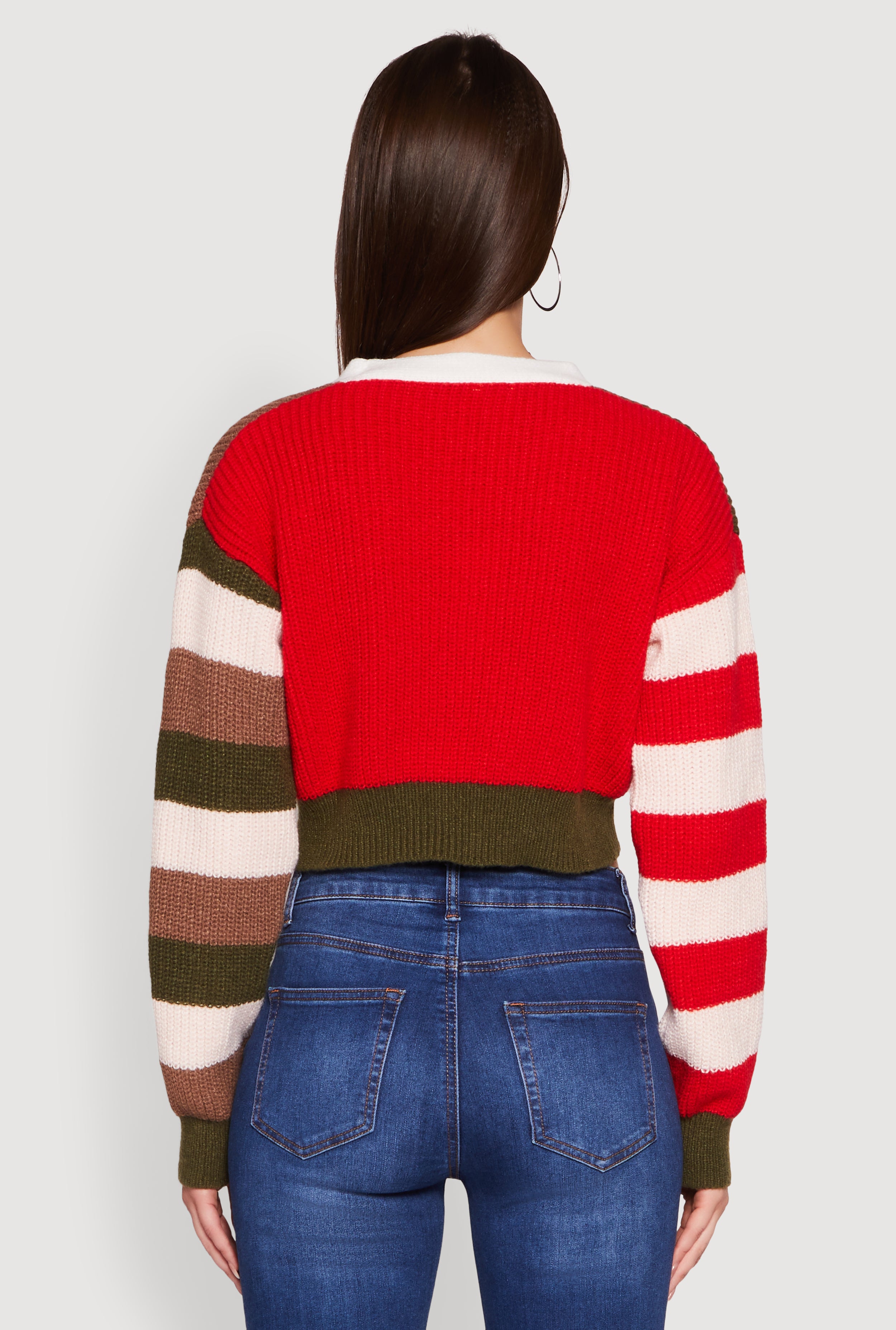 Daisy Color Block Patch Cropped Button Front Cardigan