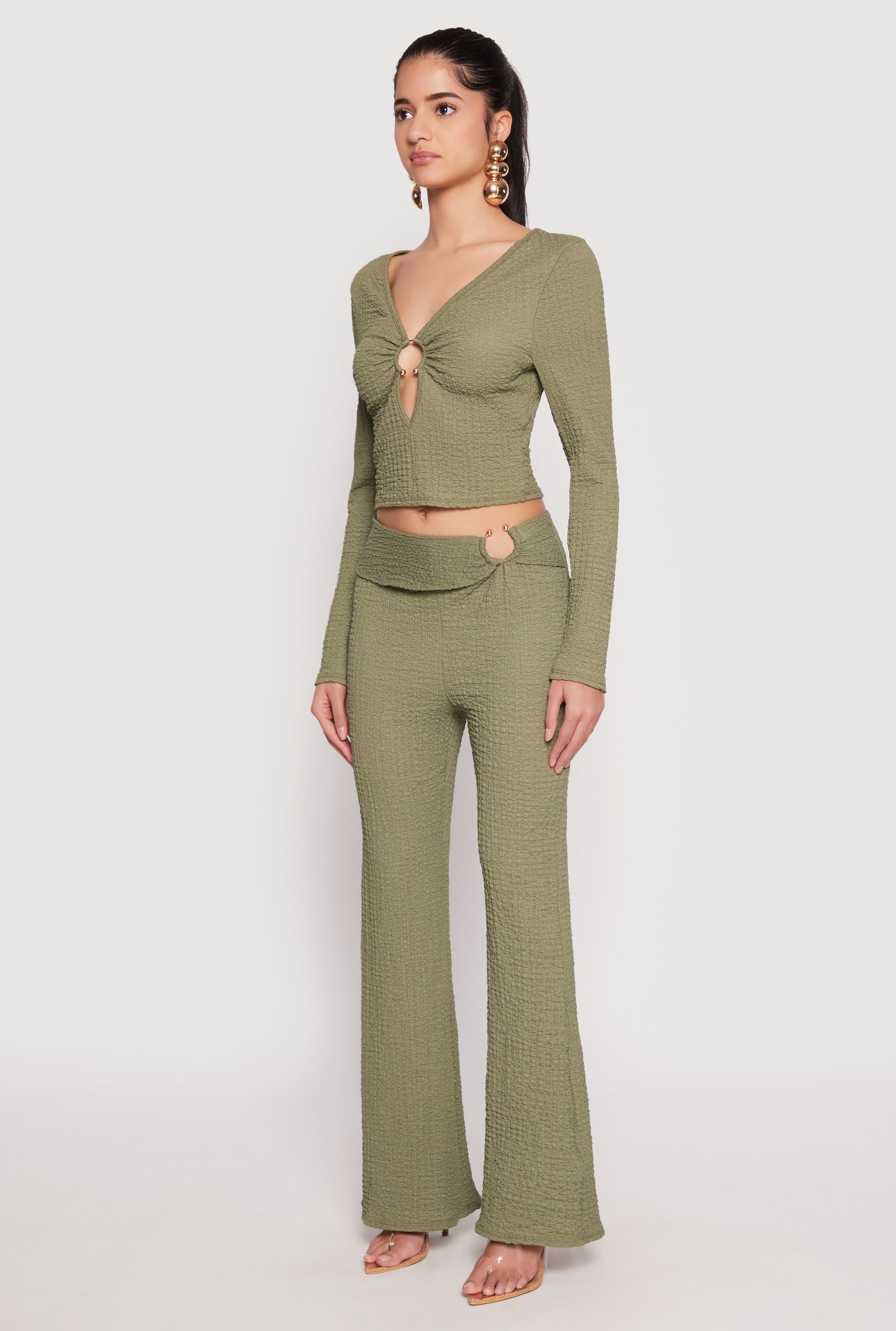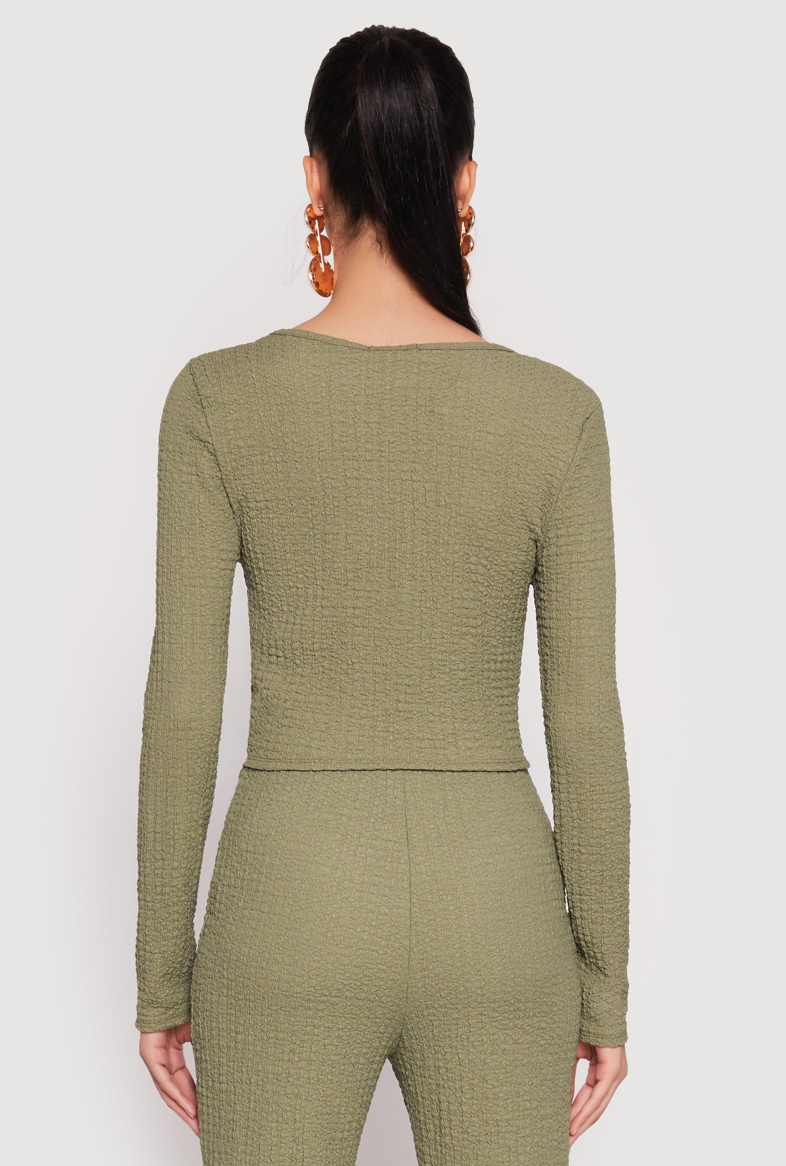 Elevate your everyday style with the Textured Knit O Ring Keyhole Crop Top. Designed for women who love to stand out, this top combines a classic fit with a timeless silhouette that flatters every body. The textured knit fabric adds a touch of unique charm, while the V-neck and keyhole detail bring a flirty vibe. Long sleeves keep it cozy, and the cropped hem makes it perfect for pairing with high-waisted jeans or skirts. Whether you're going for a casual look or dressing up for a night out, this top is your new go-to for effortless chic.