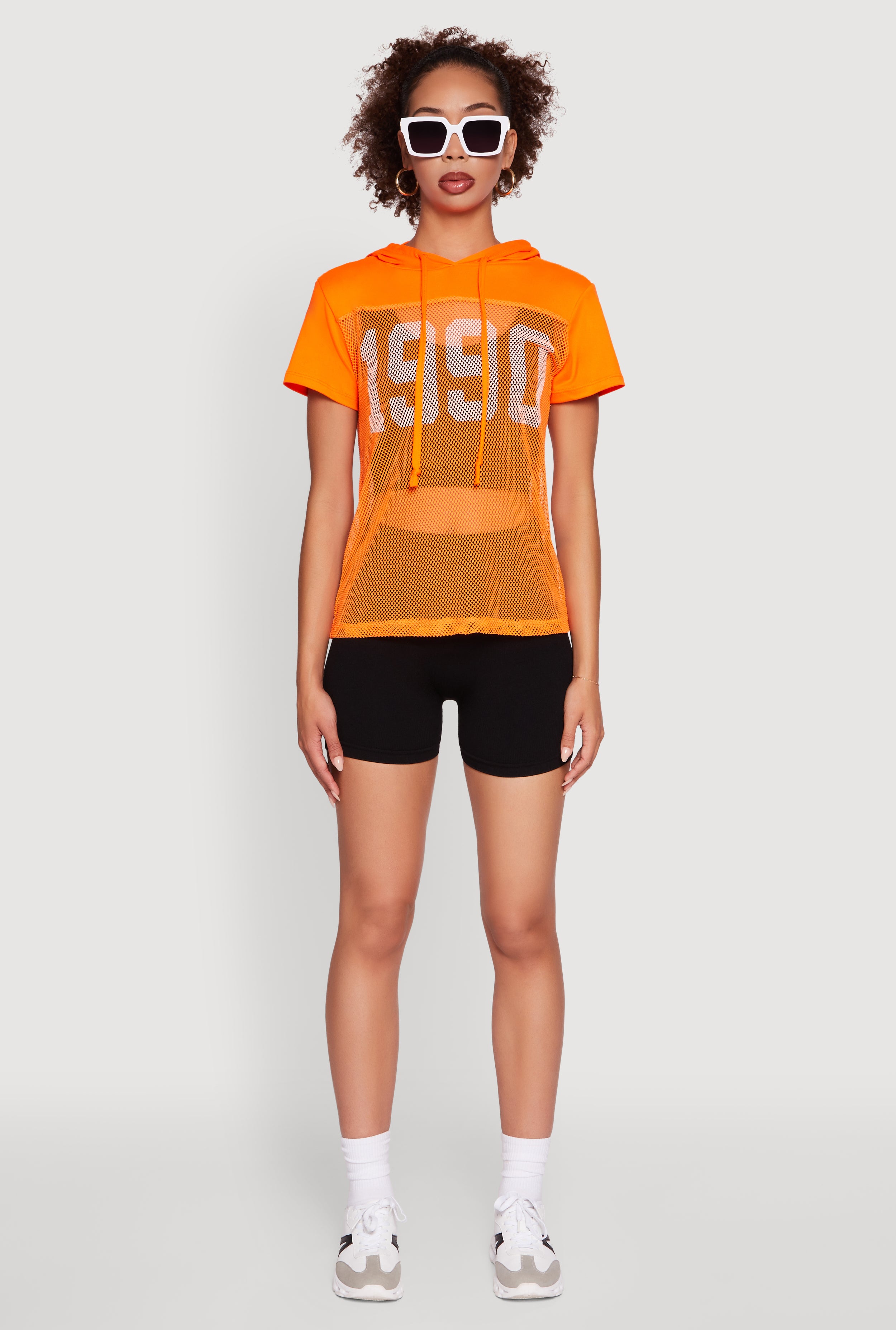Step back into the 90s with this Fishnet 1990 Graphic Hooded Short Sleeve Top. Perfect for those who love a little edge with their casual style, this classic fit pairs sheer fishnet fabric with a bold graphic print and a cozy hood. It’s the ultimate mix of retro vibes and modern cool, designed to keep you looking effortlessly stylish whether you’re out with friends or just chilling. Just add your favorite bralette or crop top underneath and you’re ready to turn heads.