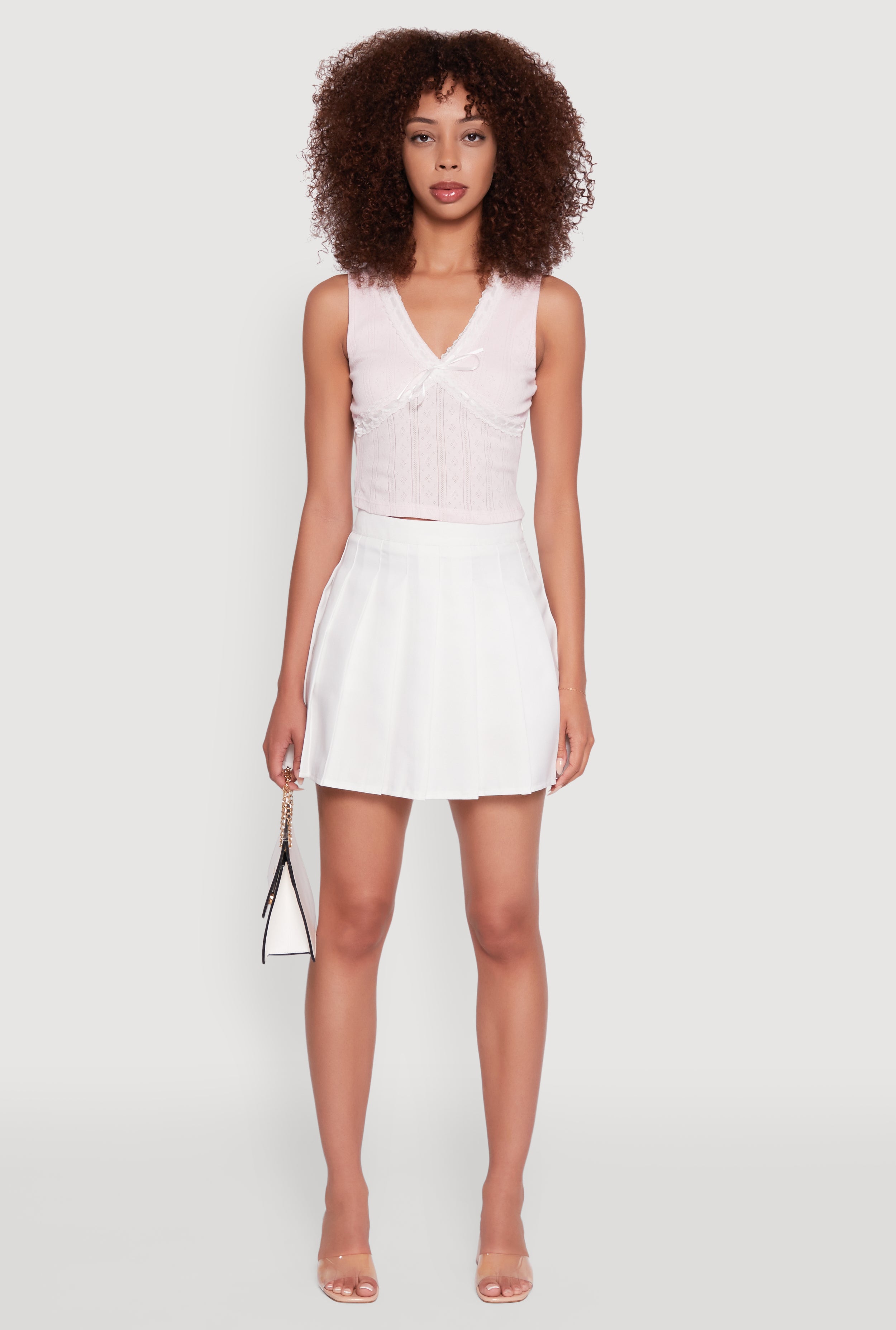 Step up your casual game with the Blashe Ribbon Lace Trim V-Neck Tank Top. This sleeveless classic fit piece features a delicate contrast lace trim and a charming bow detail that add a sweet, feminine touch to your everyday look. The textured pointelle knit fabric keeps it breathable and comfy, while the cropped hem gives it a trendy edge perfect for pairing with your favorite high-waisted jeans or skirts. Whether you’re out with friends or just chilling, this tank top blends timeless style with a playful vibe you’ll want to wear on repeat.