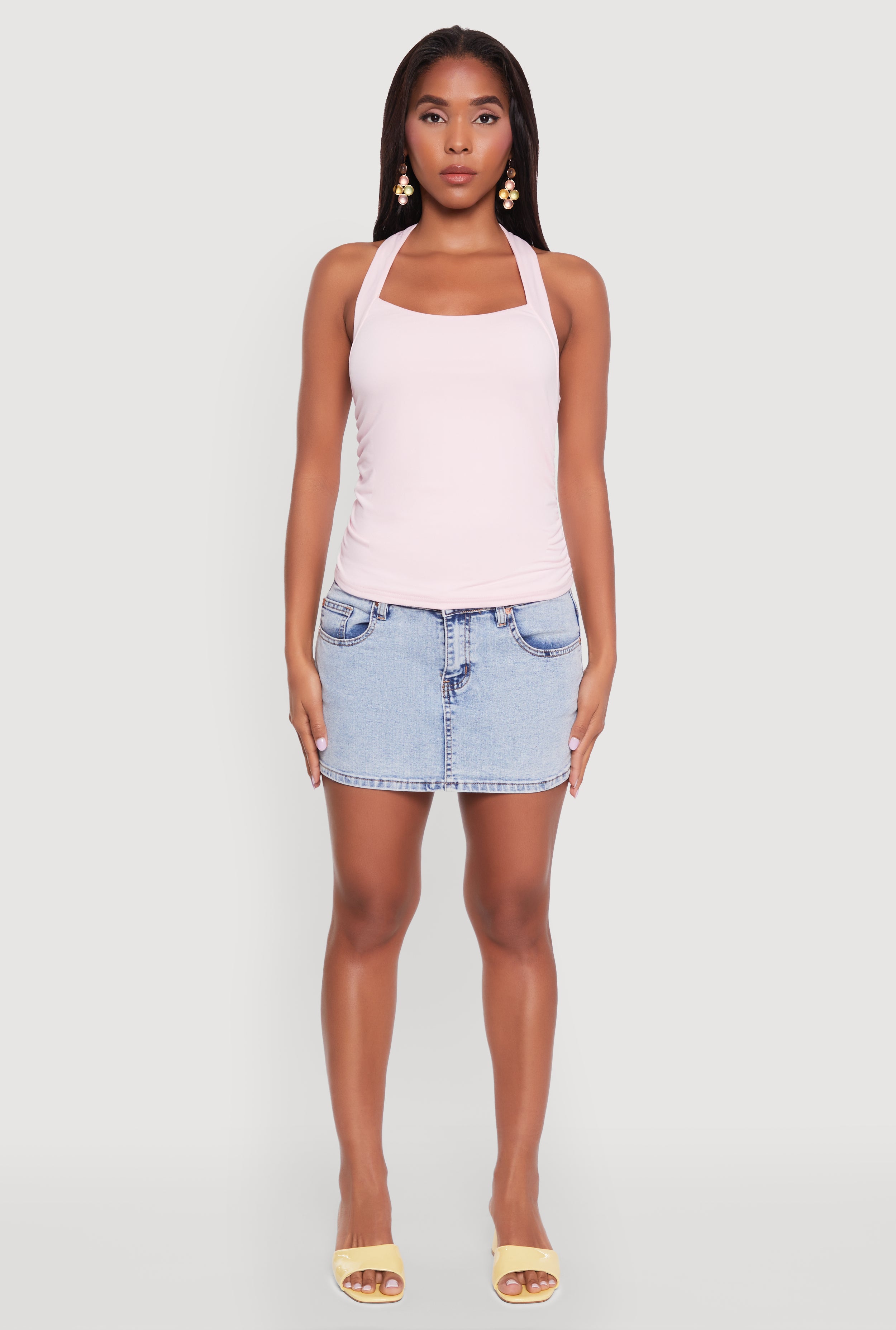 Step up your style game with the Elegant Ruched Halter Top, the perfect blend of effortless chic and comfort. Whether you're heading out for a casual day or a fun night out, this sleeveless top with its timeless silhouette and flattering halter neckline is your new go-to. The ruching detail adds a touch of flair, making you stand out in all the right ways. Dress it up or keep it laid-back, this top is all about versatile fashion that fits your vibe.