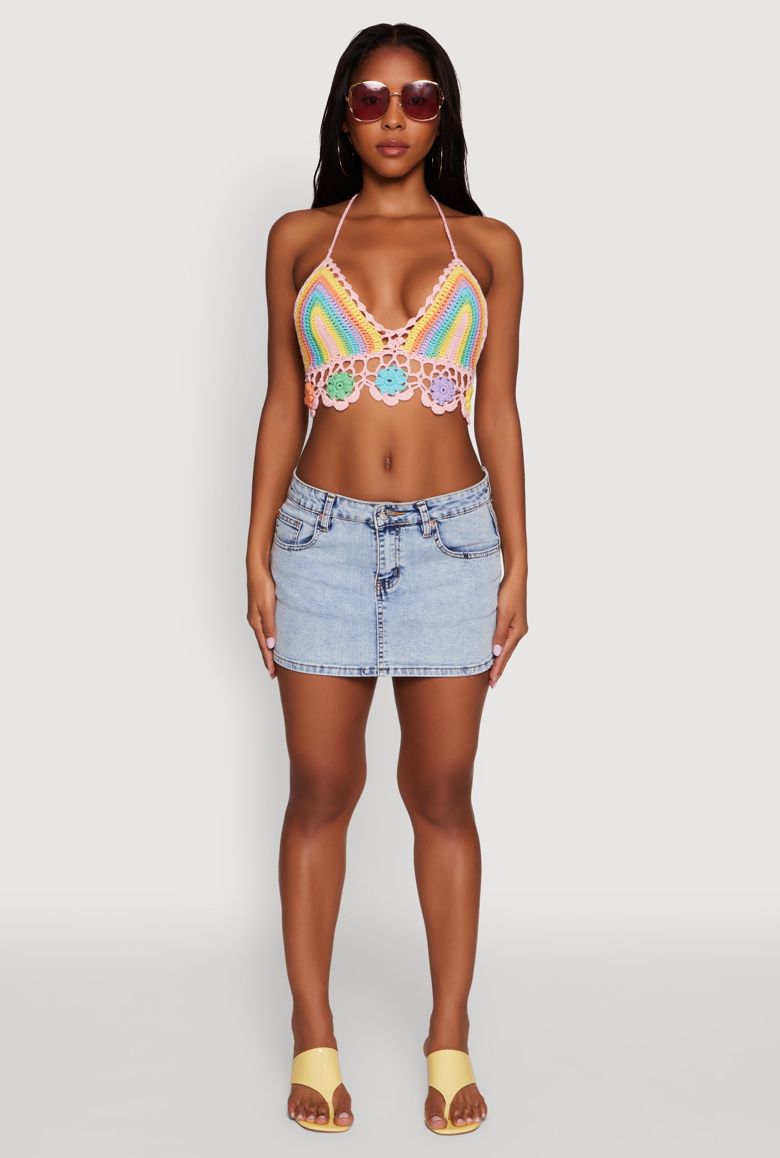 Step into sunny vibes with this Trendy Crochet Floral Detail Cropped Halter Top. Perfect for casual hangouts or festival fun, this sleeveless classic fit piece features an open back and delicate flower embellishments that bring all the carefree energy you need. The scalloped hem adds a playful touch while the cropped length keeps your look fresh and flirty. Ready to turn heads and keep you cool, this halter top is your new go-to for easy, stylish days.