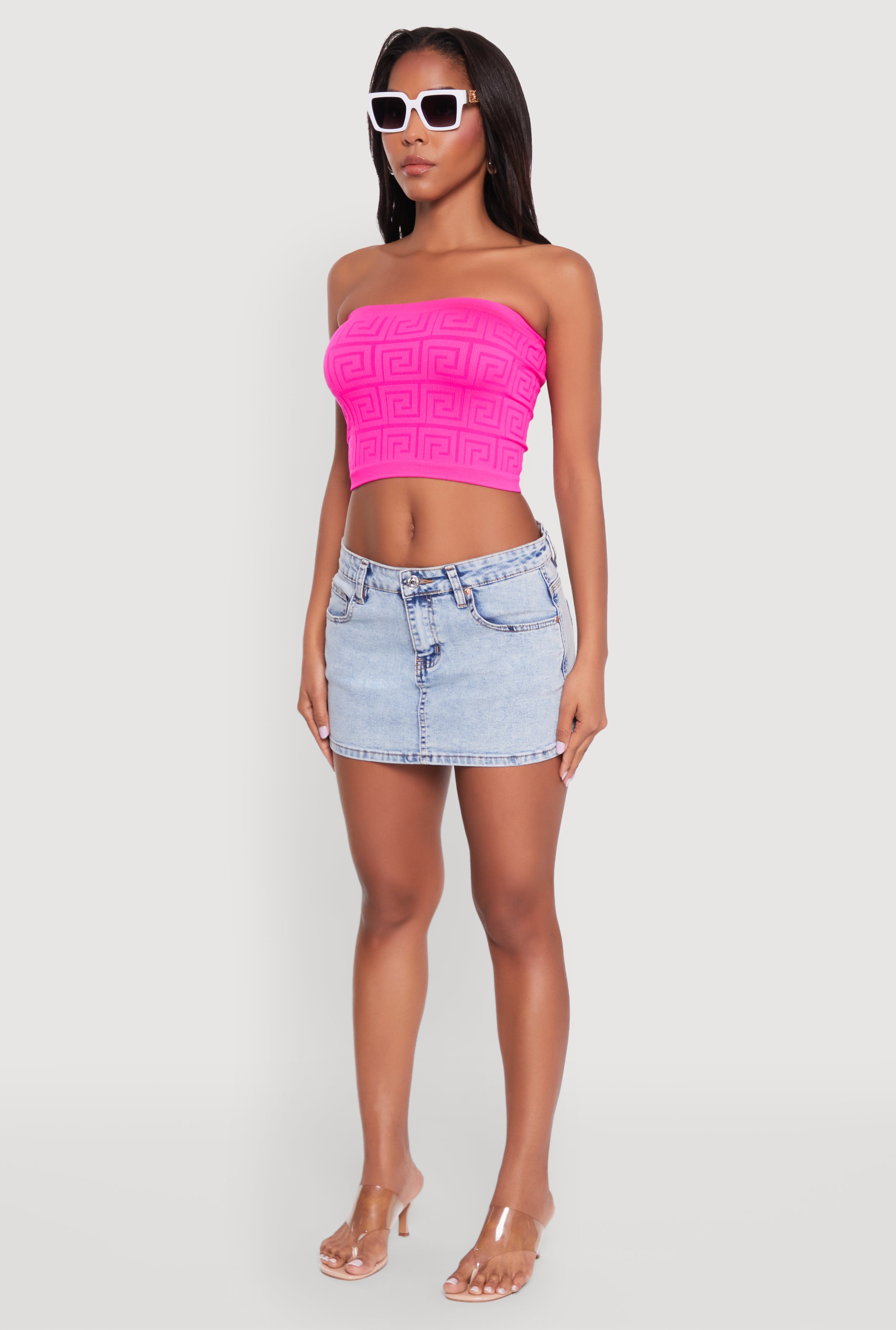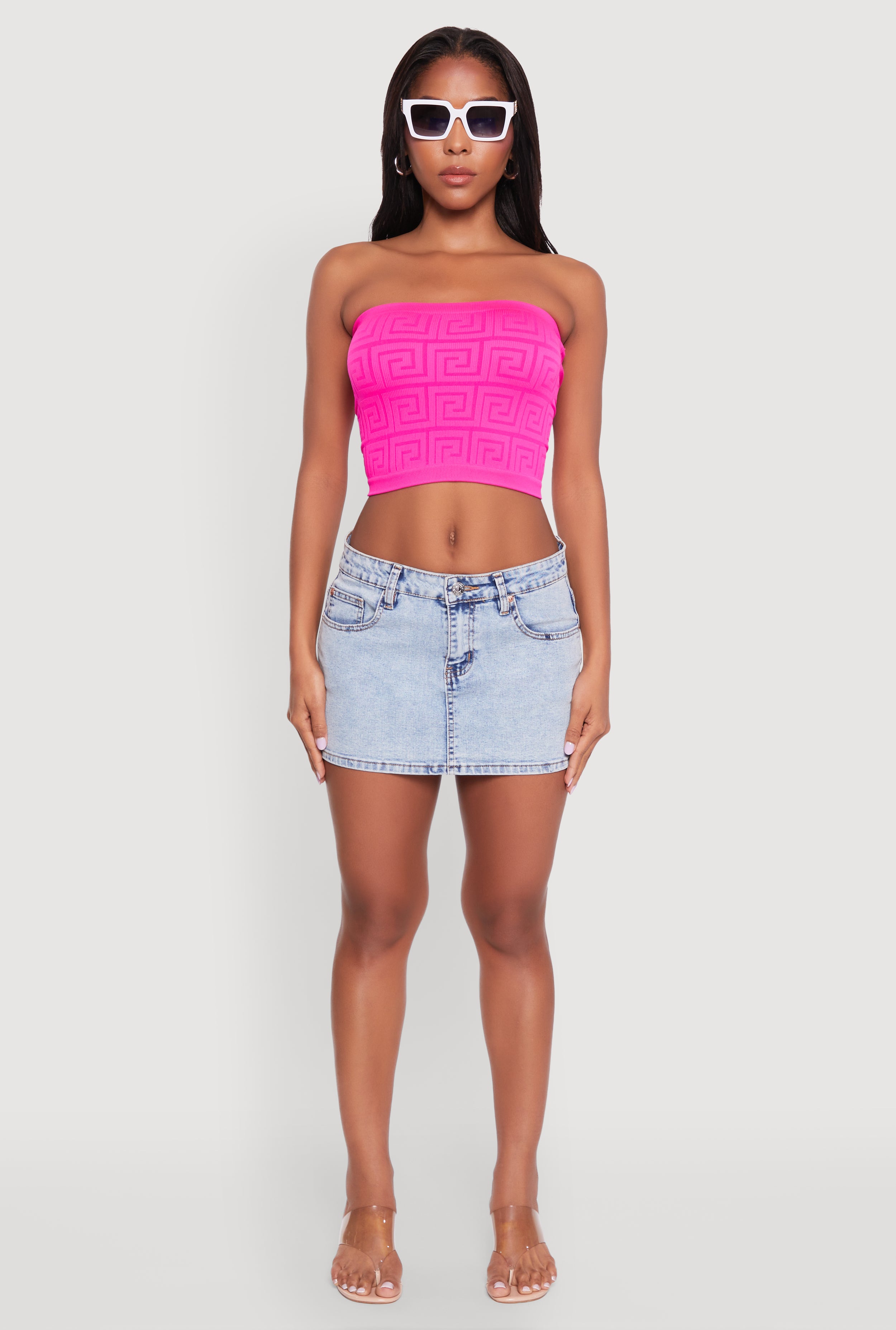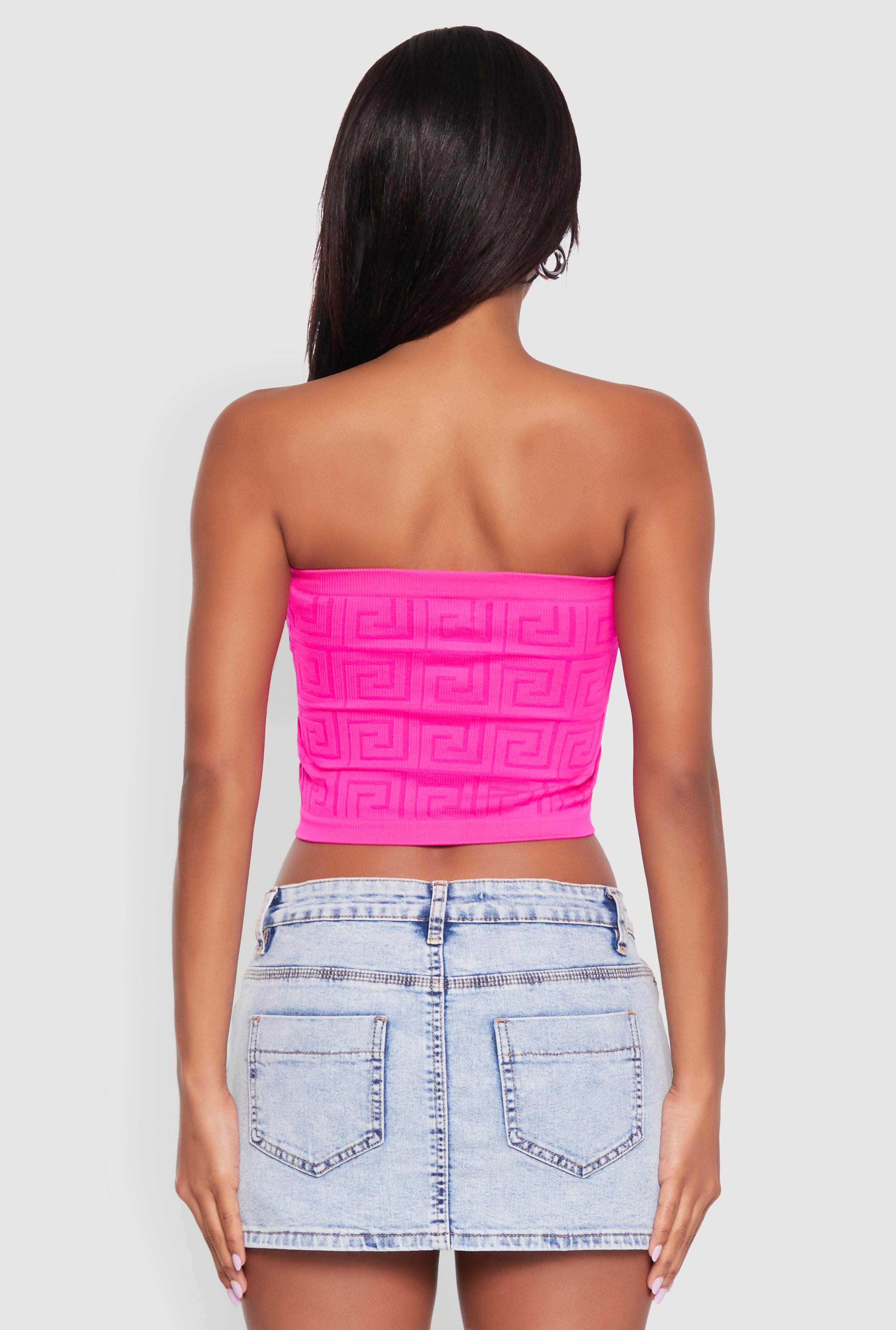 Trendy Greek Key Rib Knit Cropped Tube Top