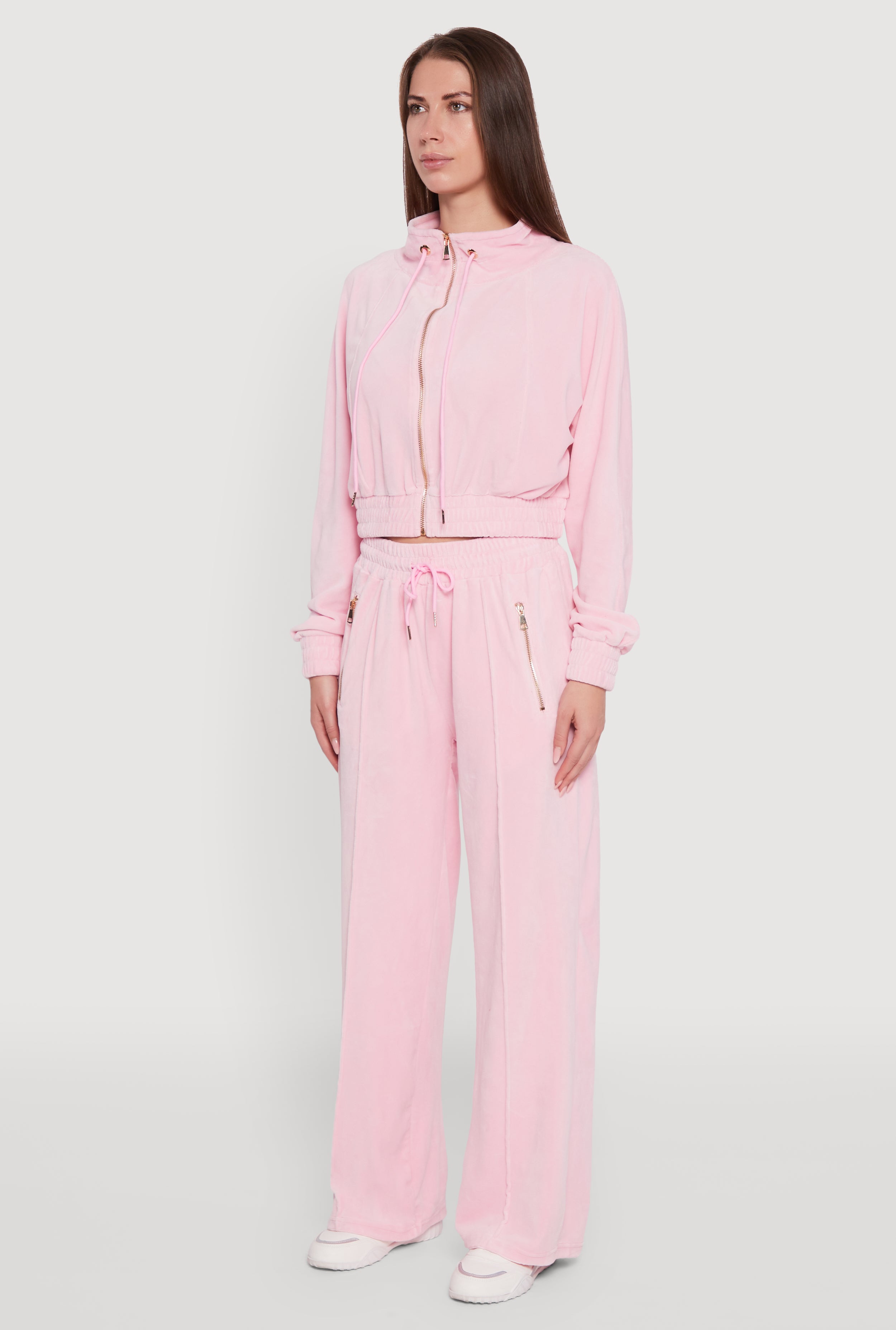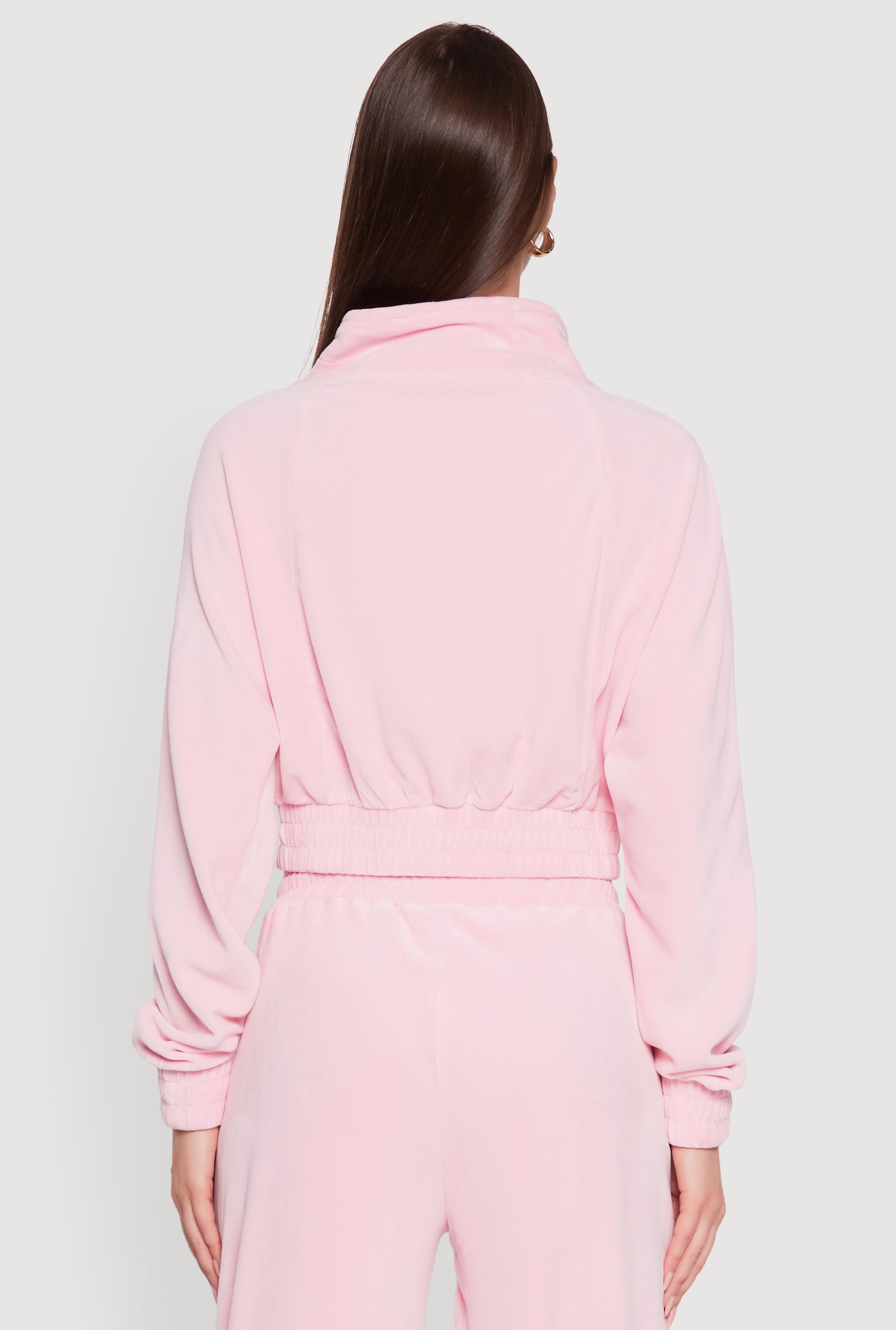 Slip into the ultimate cozy-chic vibe with the Velour Drawstring Mock Neck Cropped Zip Front Sweatshirt by Love University. This sweatshirt is your new go-to for casual days, or spontaneous nights out. The soft velour fabric feels like a hug, while the cropped fit and pintuck details keep your look fresh and on point. With a zip front and adjustable drawstring, it’s all about effortless style and comfort that moves with you.