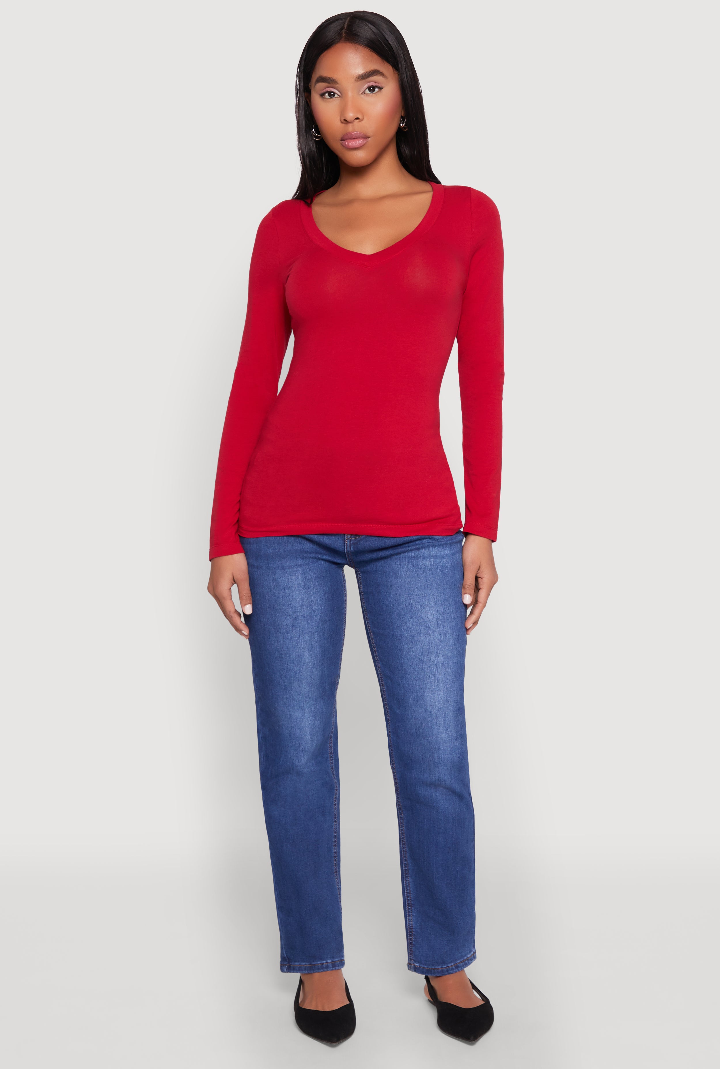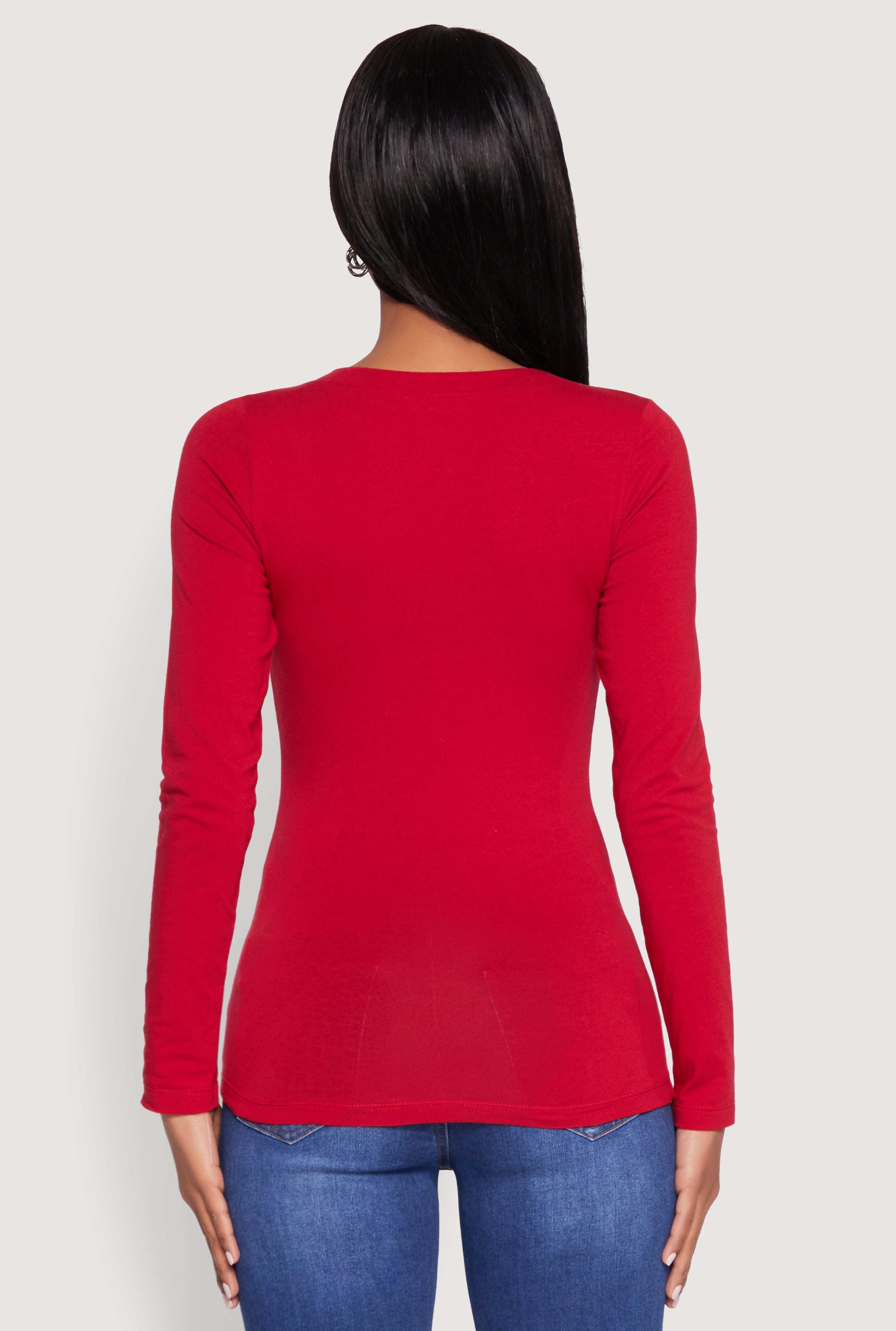 Upgrade your wardrobe with the Basic Long Sleeve V Neck Tee from Ambiance. Perfect for adding a touch of effortless style to any outfit, this timeless piece is a must-have for your closet. Its classic fit and flattering V-neck make it versatile enough for casual days or special occasions like valentines. Comfortable, chic, and easy to style, this tee is your new go-to for looking good and feeling even better.