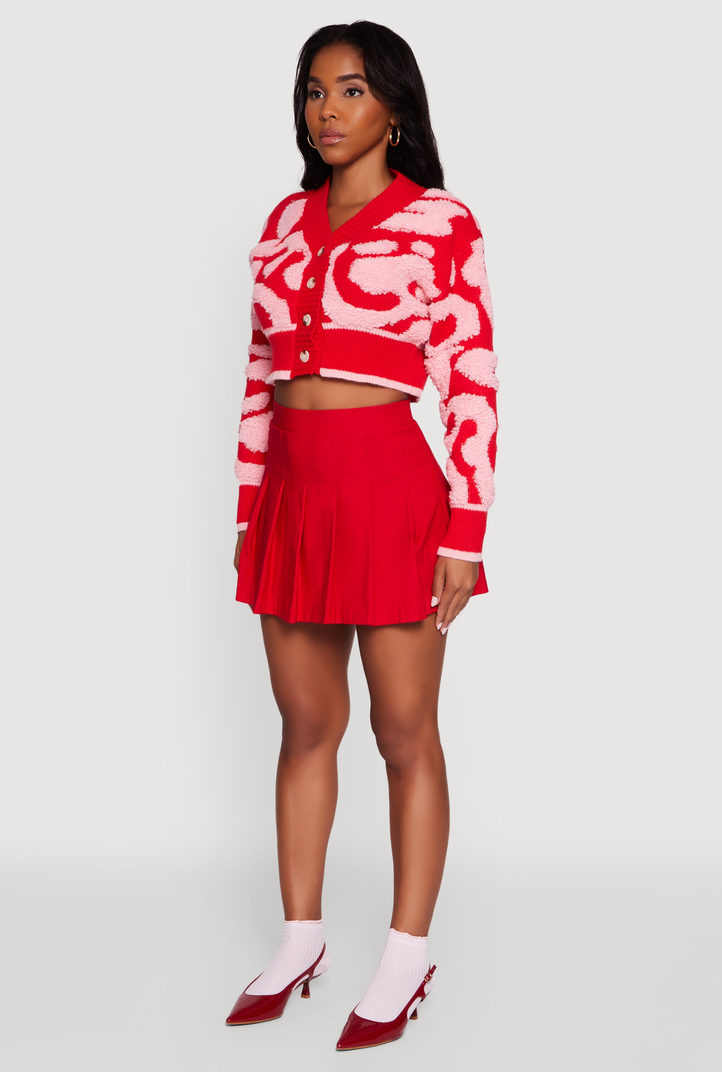 Step into cozy vibes with the Tufted Knit Button Front Cropped Cardigan by Daisy. This classic fit cardigan features a flattering V-neck and long sleeves, making it your go-to for effortless style. Crafted from soft brushed knit and chenille, it feels like a warm hug on cooler days. The button front adds a touch of charm while the cropped length keeps your look fresh and fun. Perfect for back-to-school days or casual hangouts, this cardigan is all about comfort meeting cool.