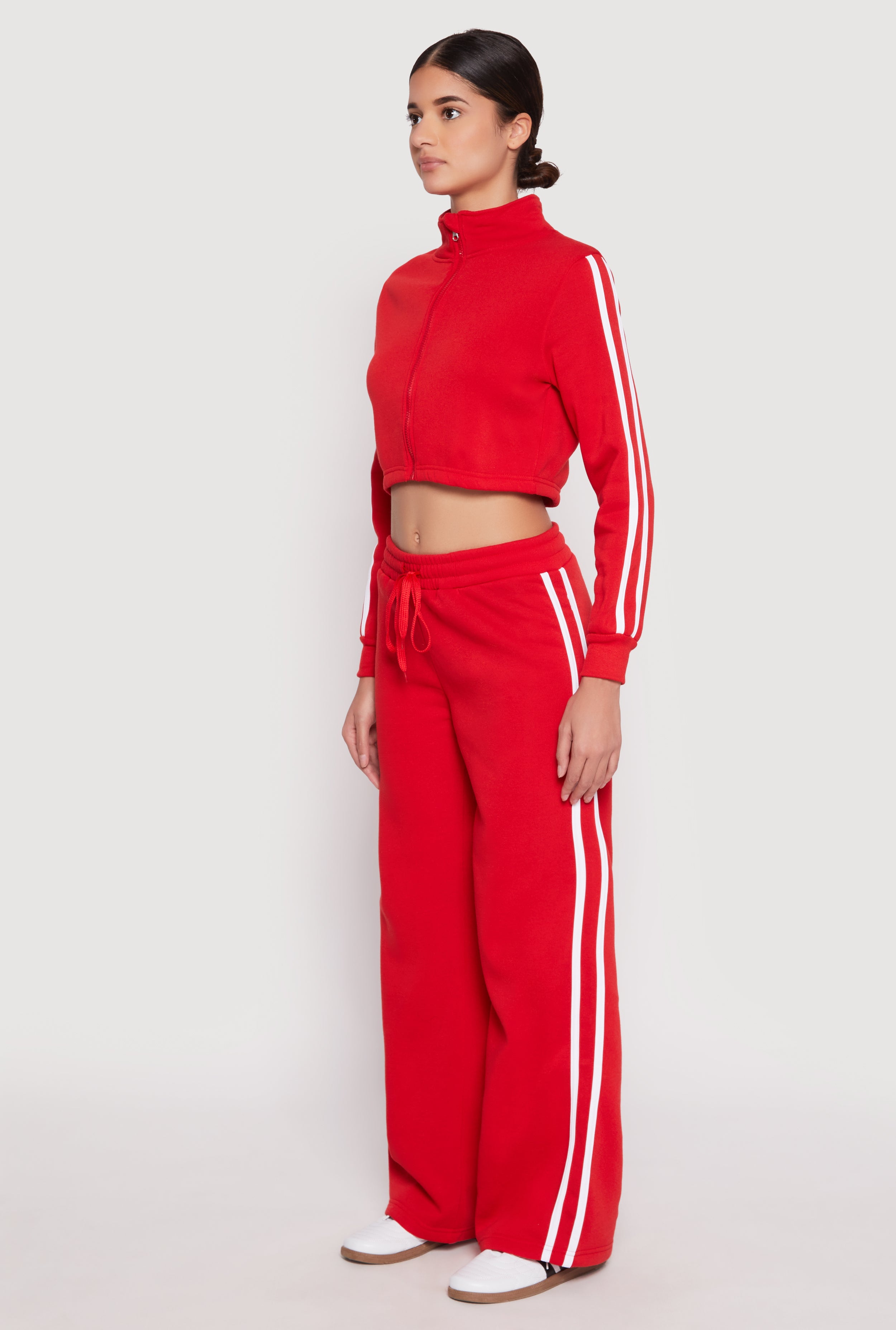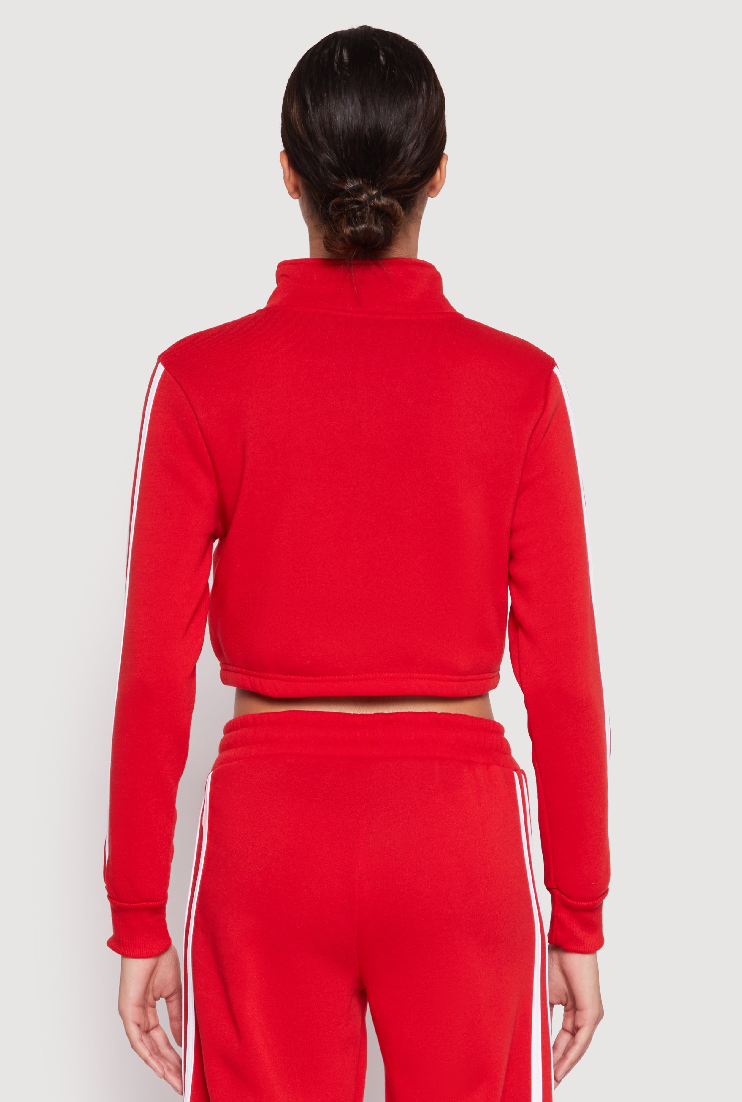 Upgrade your casual look with our Varsity Stripe Zip Front Cropped Sweatshirt. Perfect for adding a sporty-chic vibe to your everyday wardrobe, this sweatshirt combines comfort with style. The classic fit and timeless silhouette make it a versatile piece that pairs effortlessly with your favorite jeans or leggings. Featuring bold varsity stripes, a cozy fleece lining, and a trendy cropped hem, it’s the ultimate blend of sporty and stylish. Whether you're heading to class, hitting the gym, or just lounging with friends, this sweatshirt is your go-to for effortless cool.