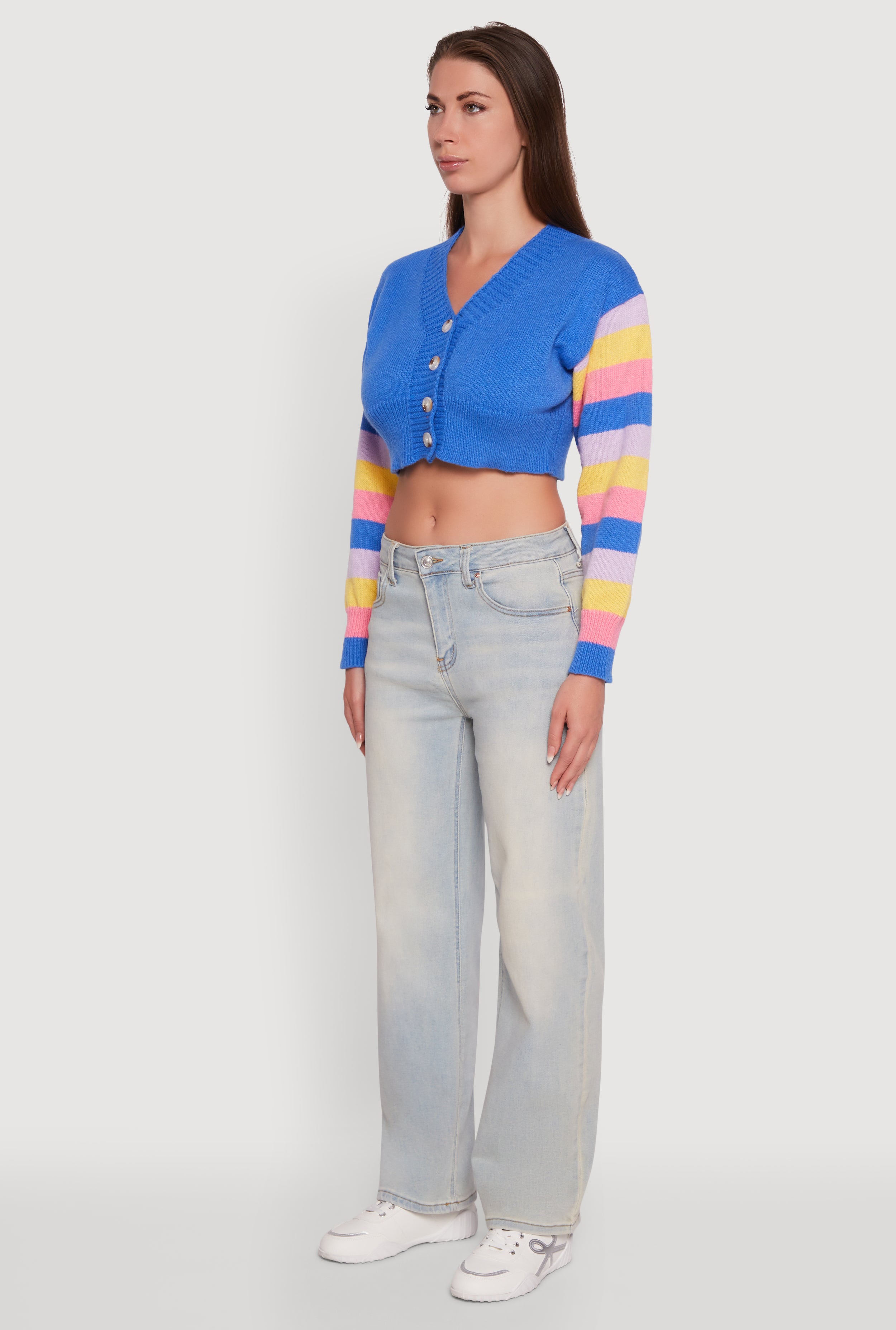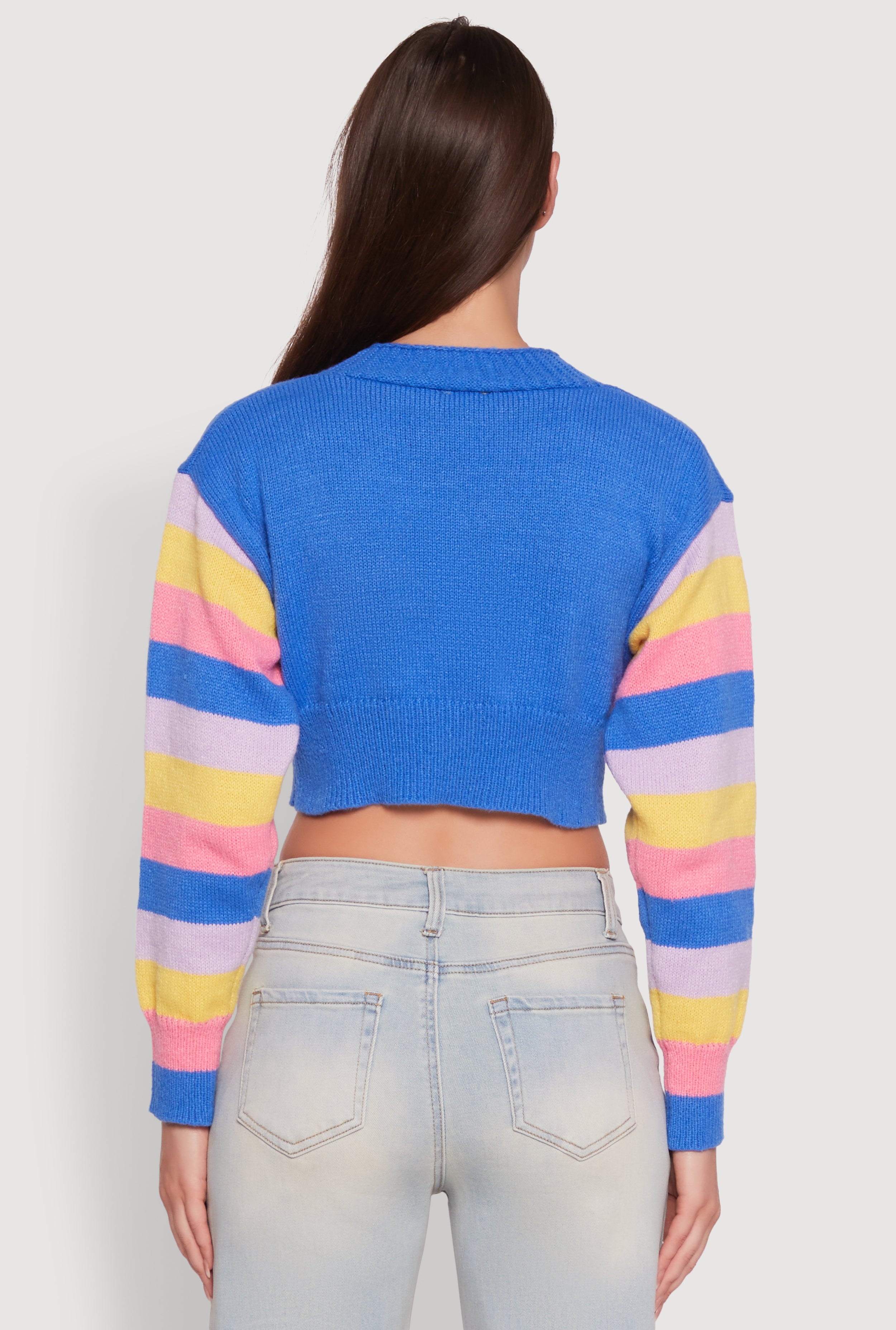 Daisy Color Blocked Striped Sleeve Cropped Cardigan