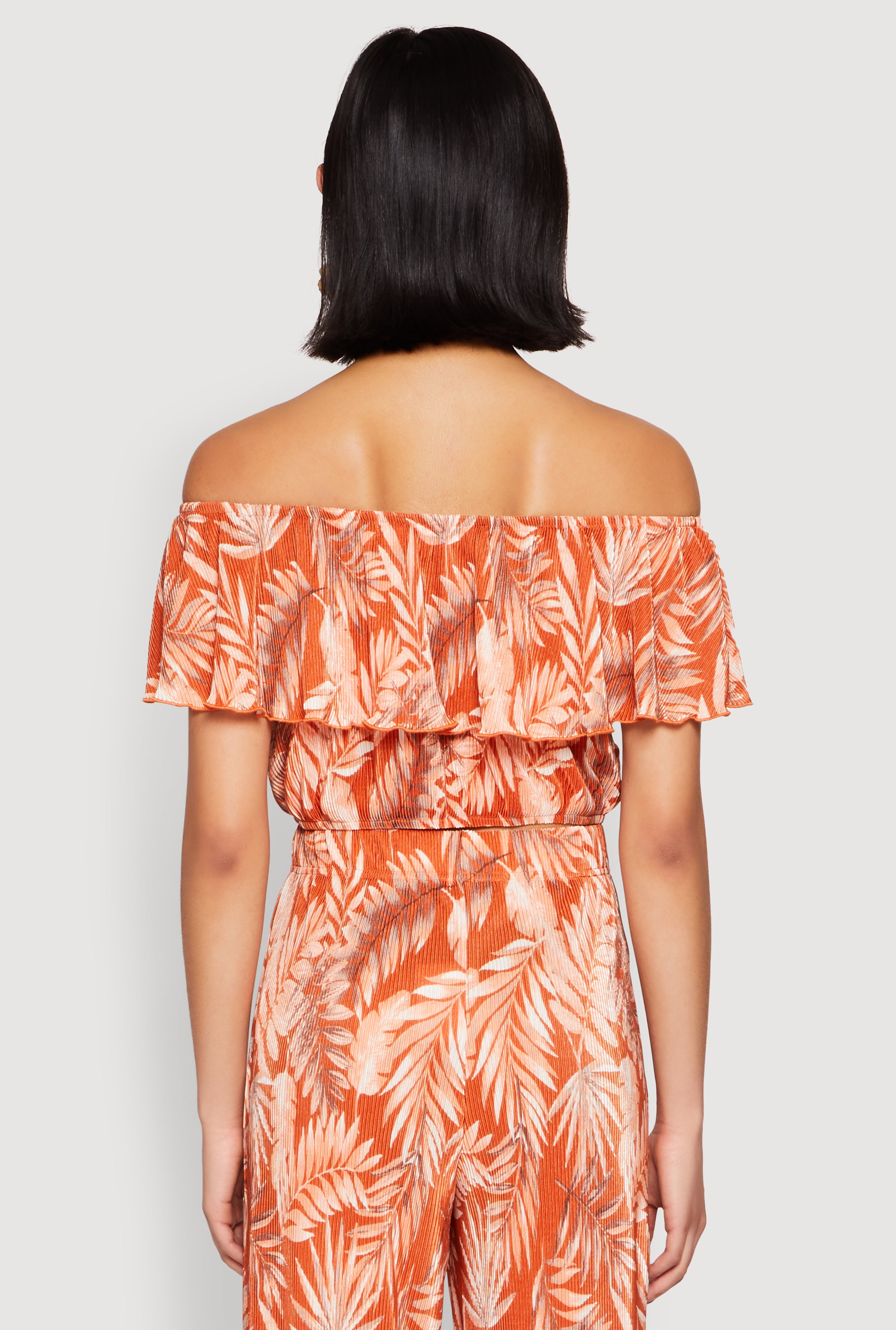 Get ready to turn heads with the Almost Famous Tropical Print Off the Shoulder Top. Perfect for sunny days and weekend adventures, this chic blouse combines a classic fit with a playful cropped hem and eye-catching lettuce edge details. Made from lightweight plisse fabric, it’s designed to keep you cool and stylish whether you're at a brunch date or a beach getaway. Effortlessly versatile and totally on-trend, this top is a must-have for your casual wardrobe refresh.