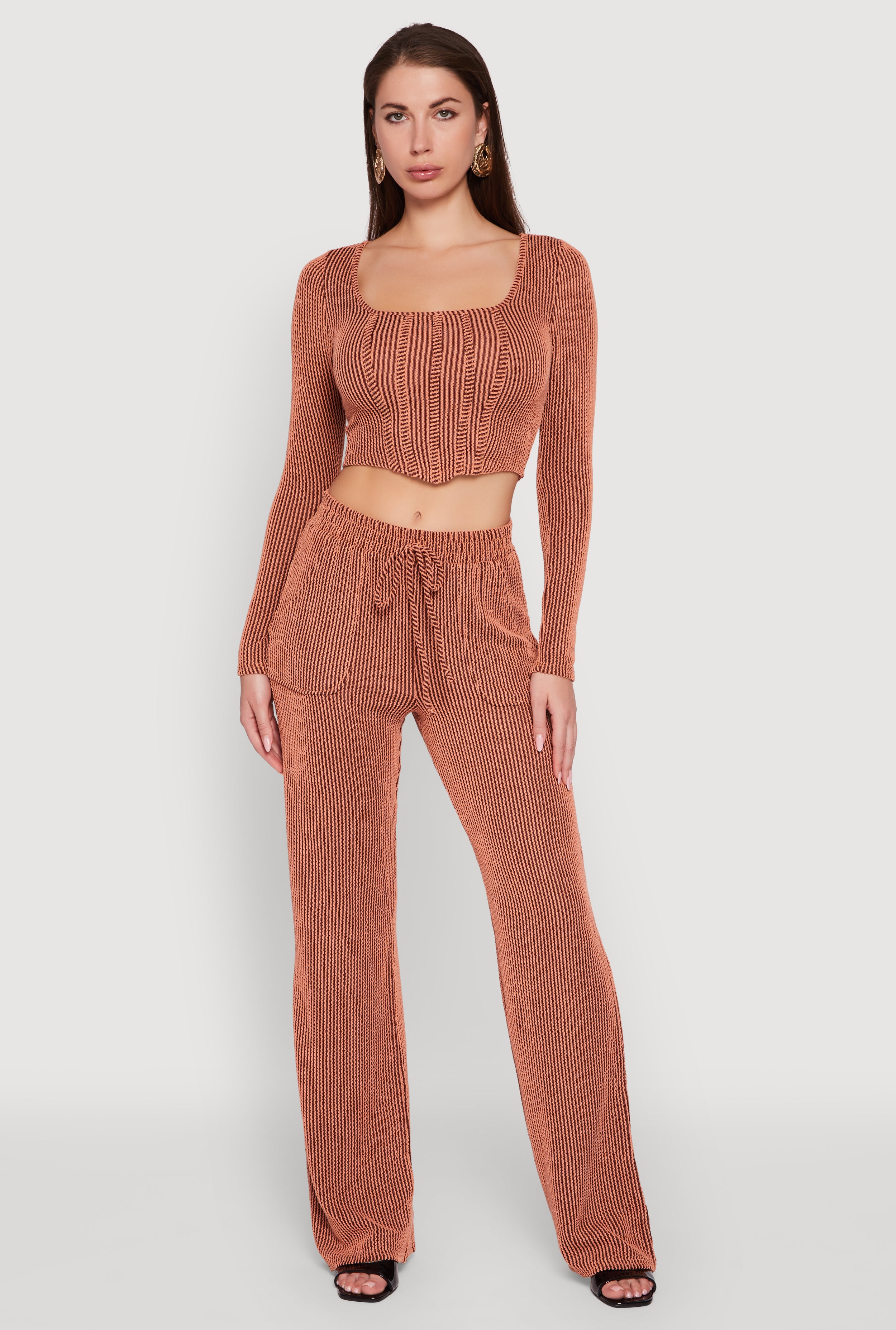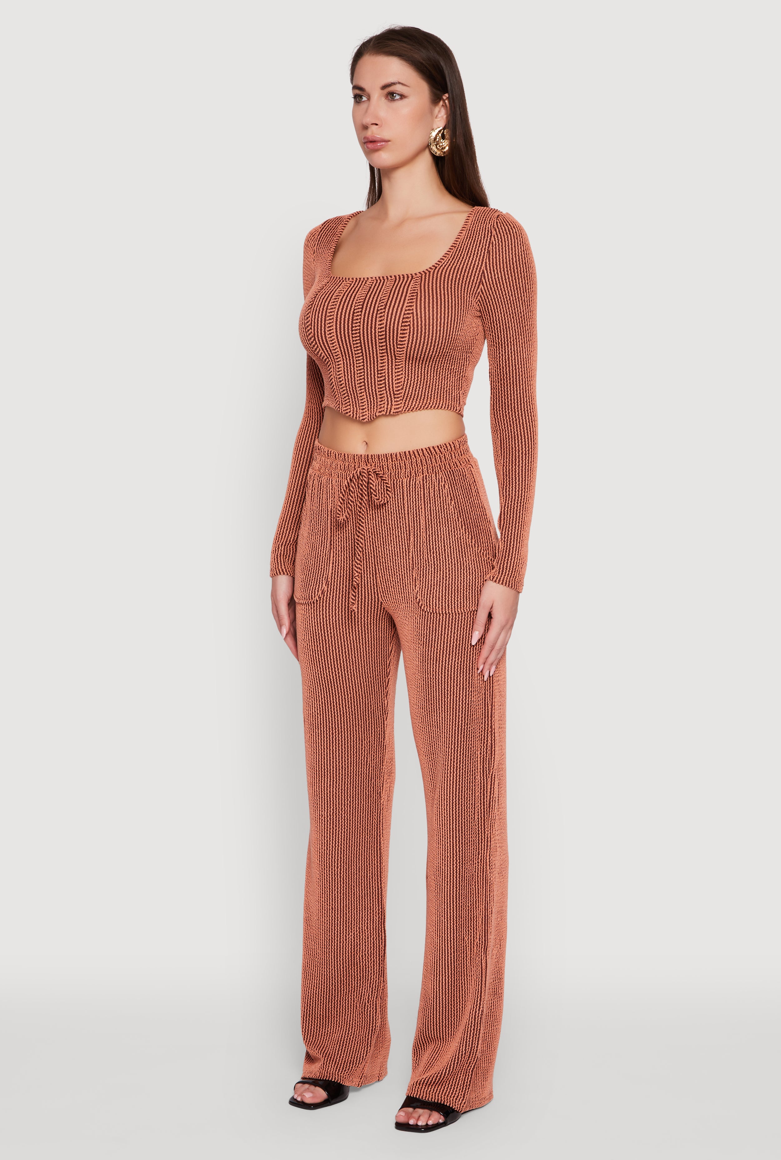 Rib Knit Shadow Stripe Corset Detail Crop Top