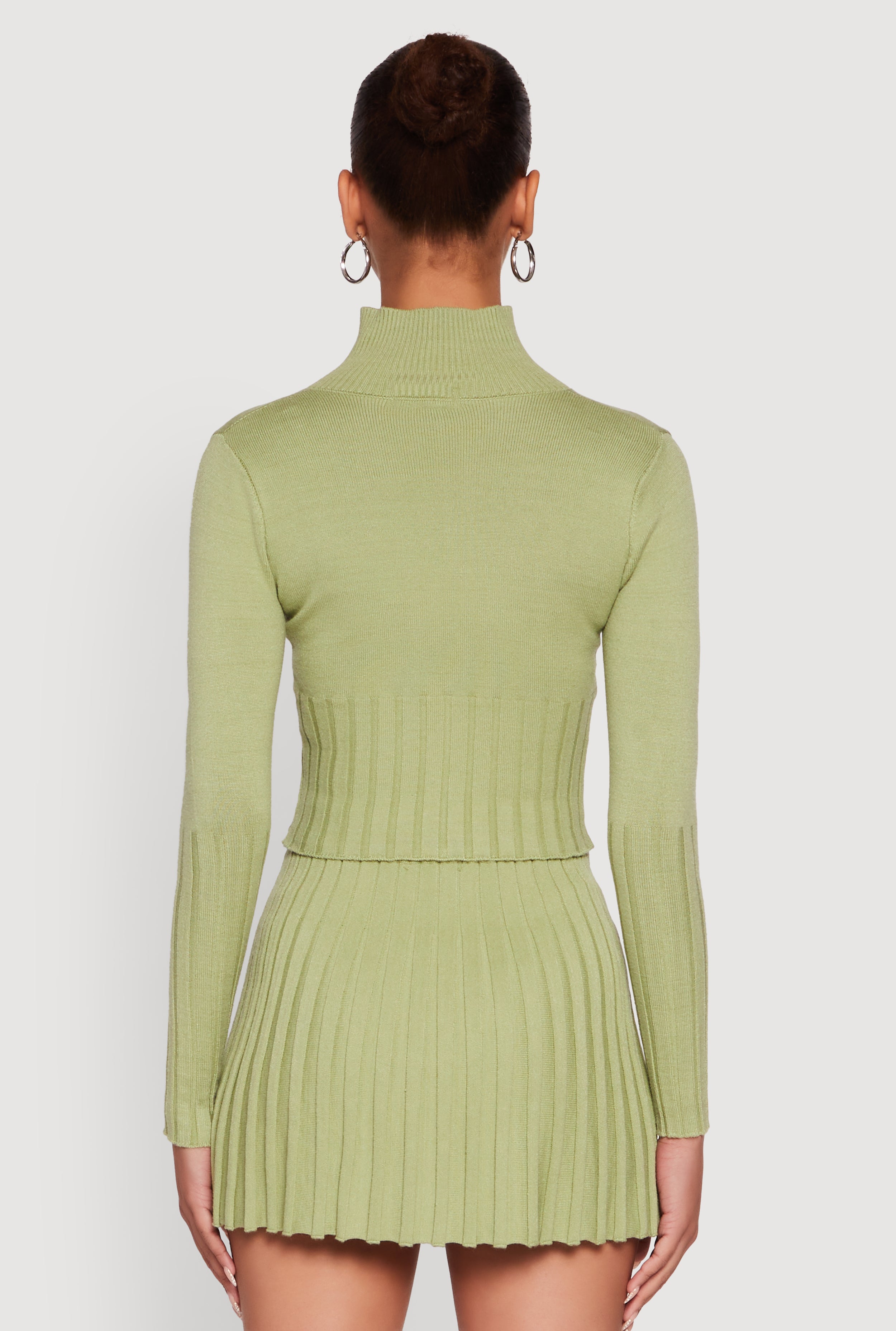• Classic Fit Zip Front Mock Neck Cropped Sweater