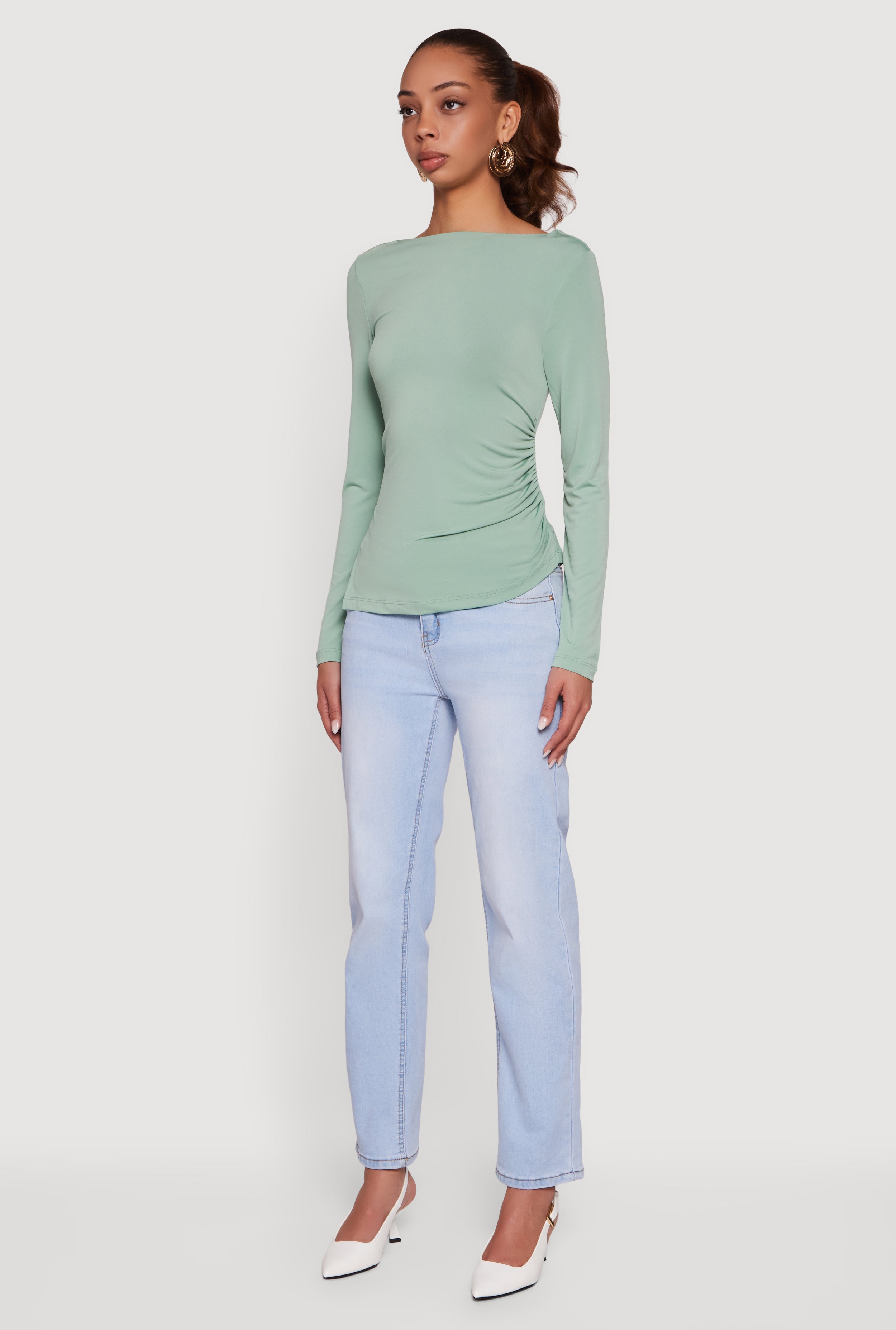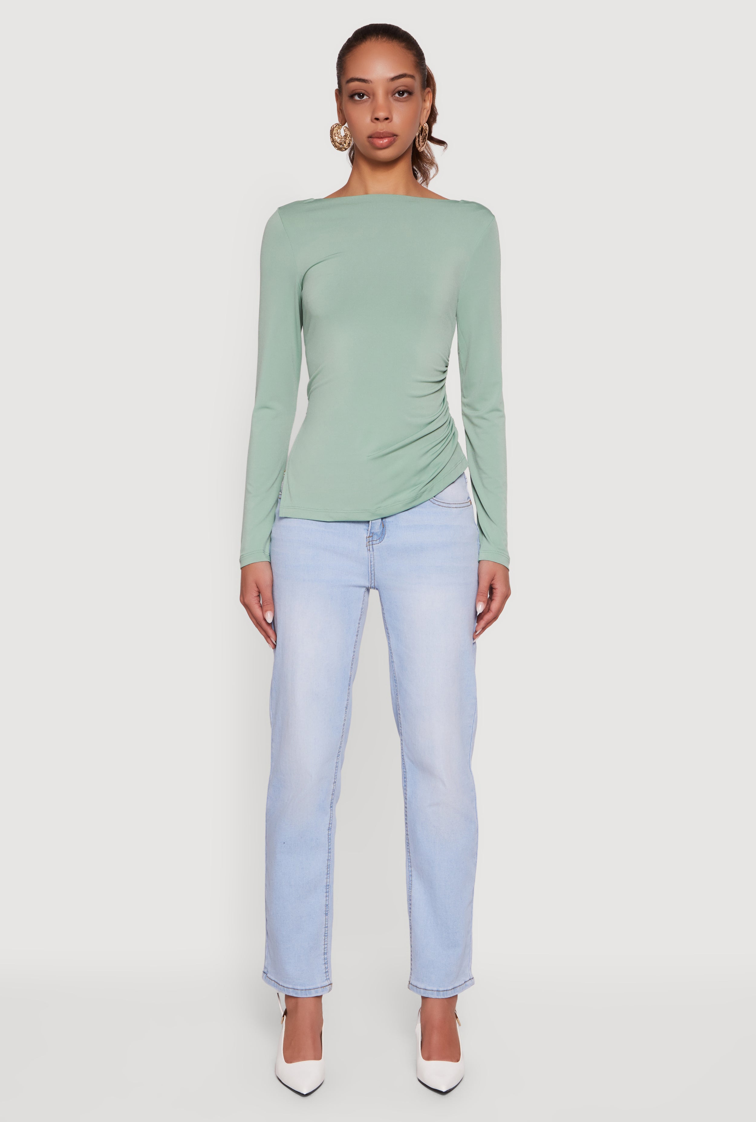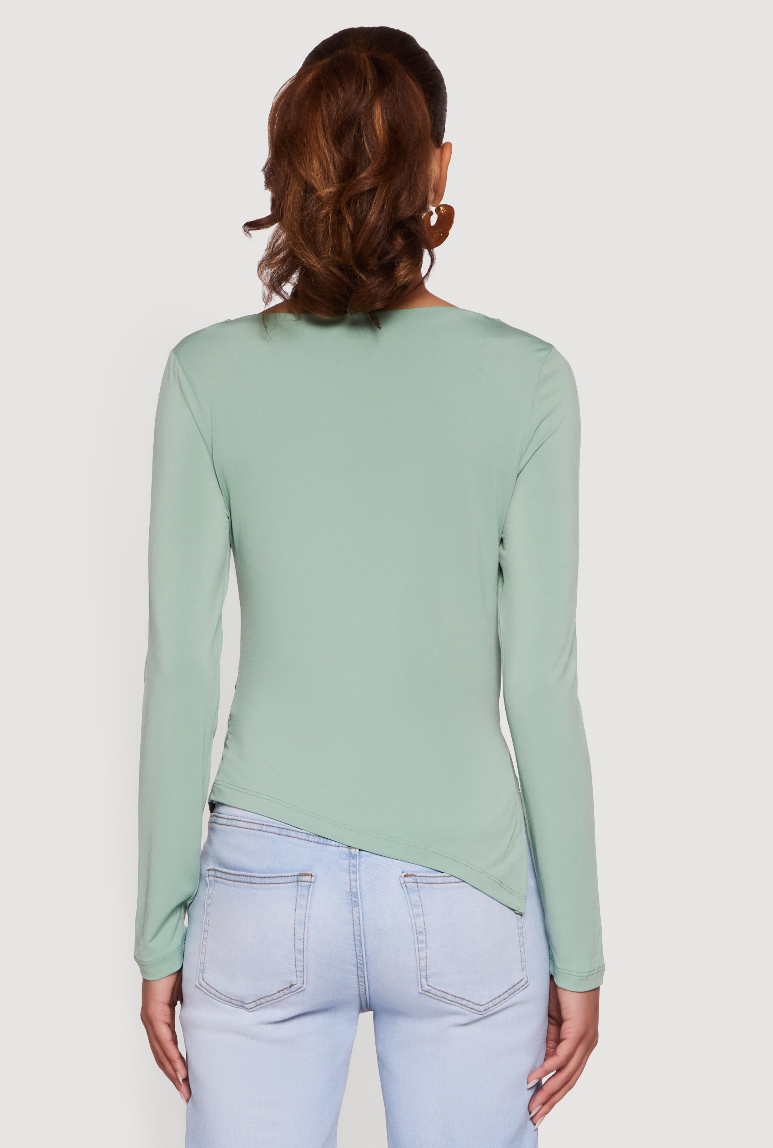 • Long Sleeve Side Ruched Scoop Neck Blouse