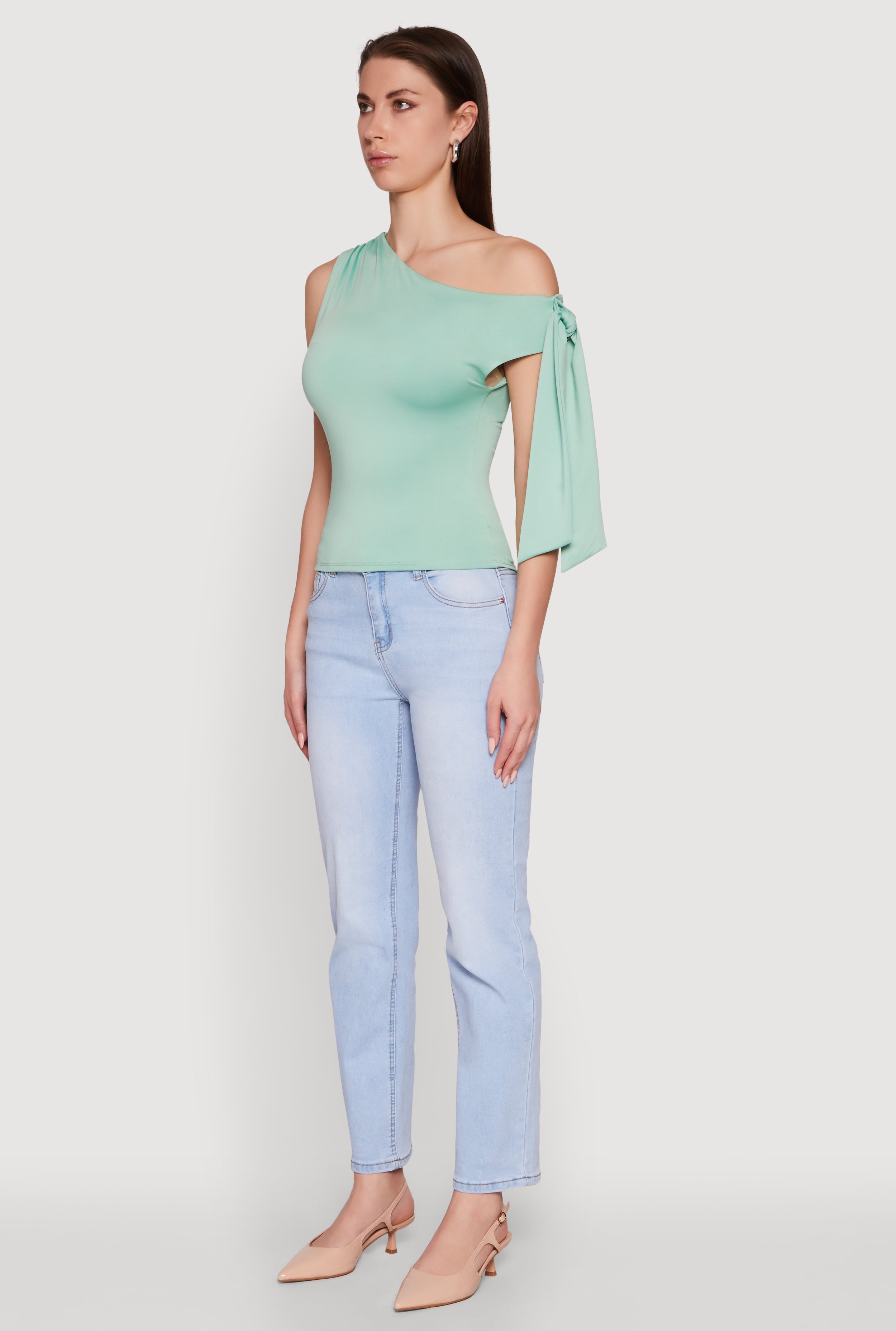 Step up your style game with the Trendy Tie Sleeve Ruched Asymmetrical Top. This eye-catching piece is perfect for turning heads and making a statement wherever you go. With its one-shoulder design and playful tie sleeves, you'll feel confident and effortlessly chic. The classic fit and timeless silhouette ensure you'll want to wear it on repeat. Whether you're dressing up for a night out or adding a trendy touch to your everyday look, this top is your new wardrobe essential.
