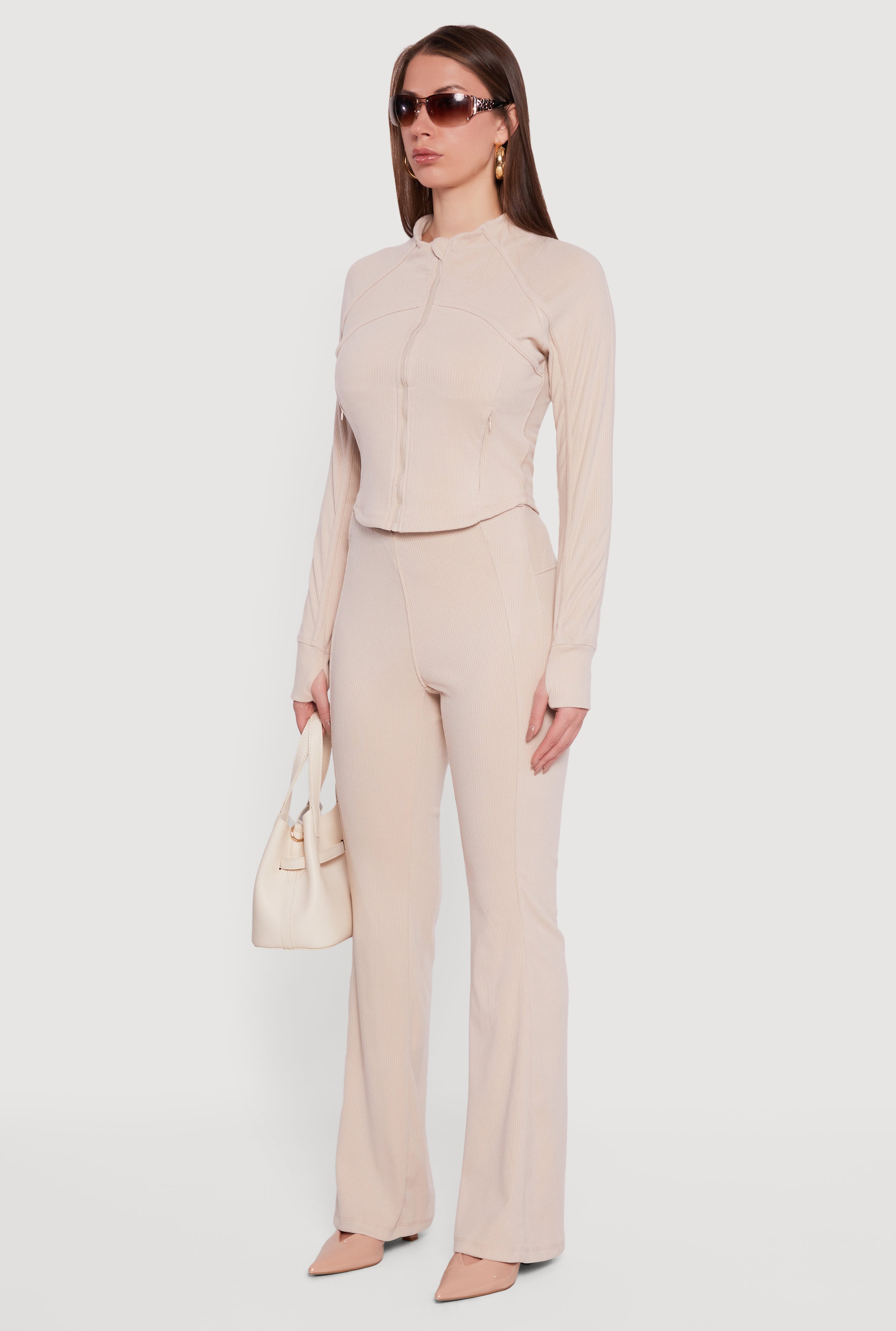 • Brushed Knit Mock Neck Zip Front Sweatshirt