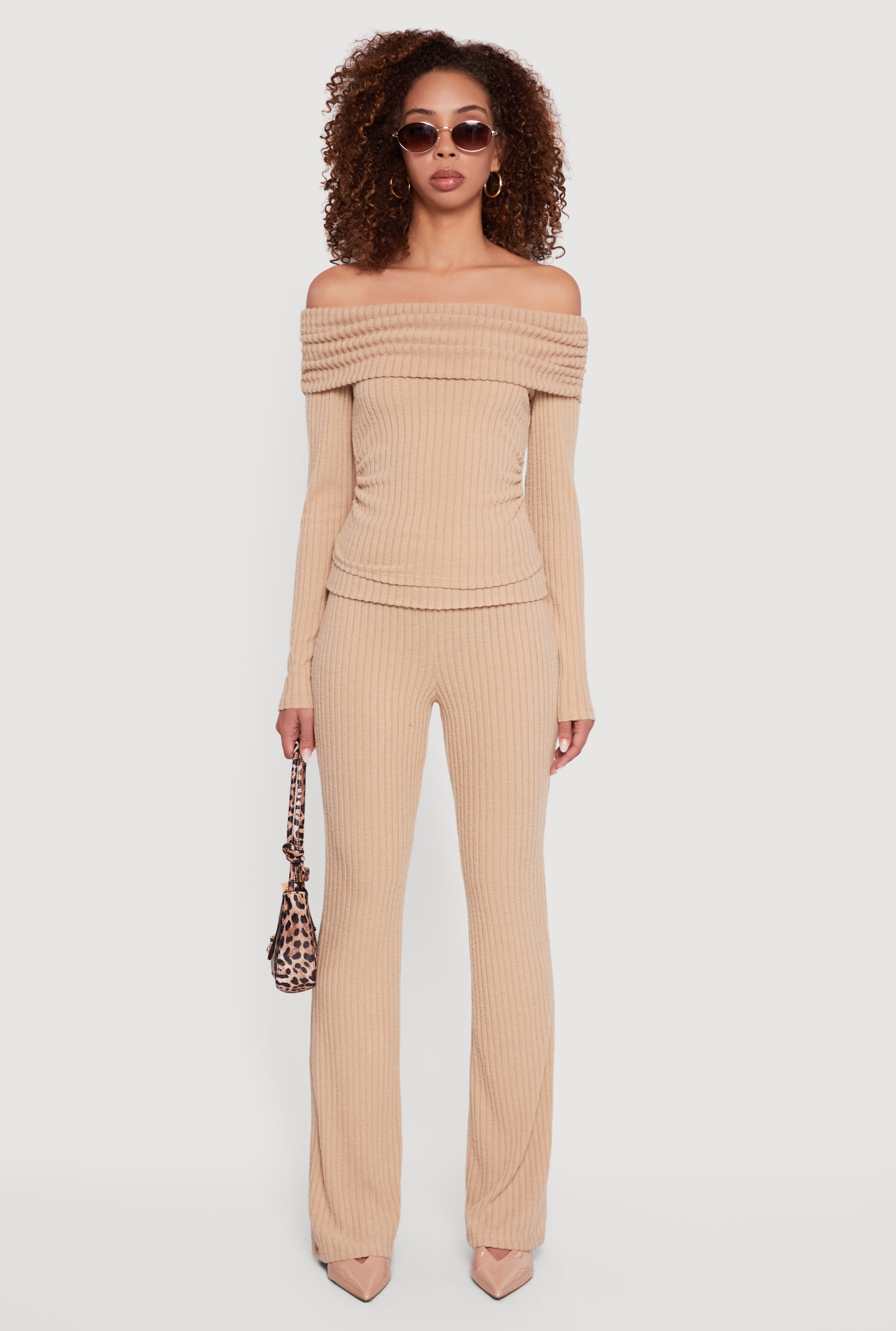 • Off the Shoulder Long Sleeve Brushed Knit Top