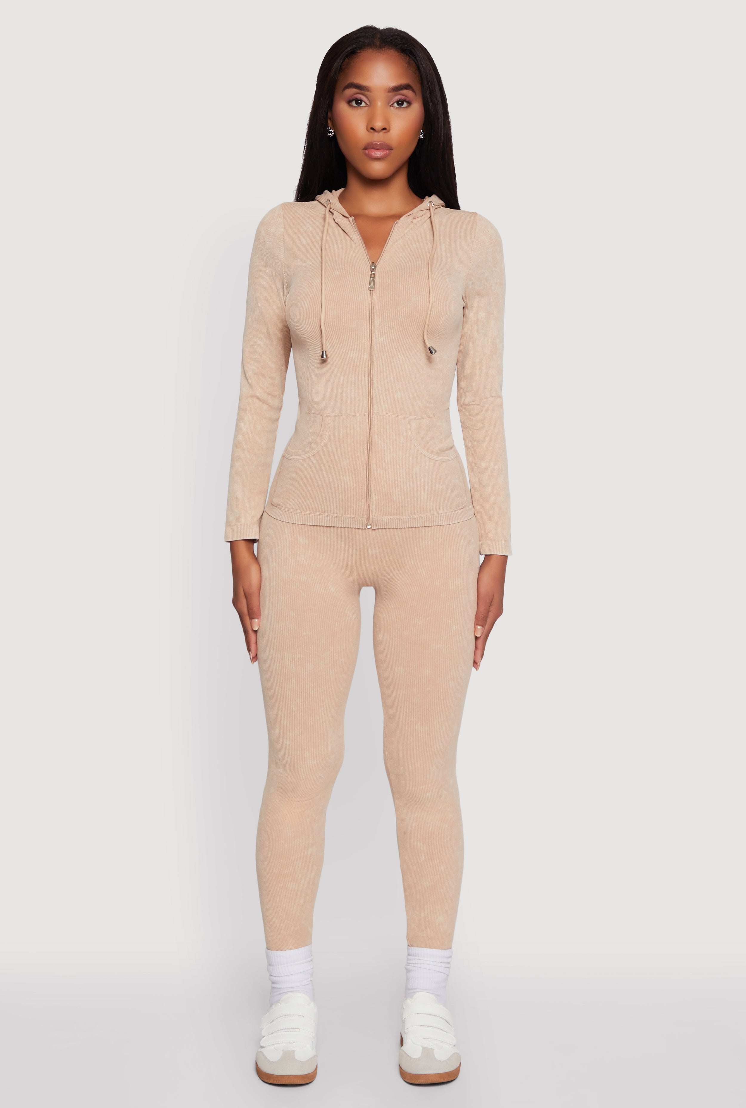 Seamless Acid Wash Zip Front Hooded Sweatshirt