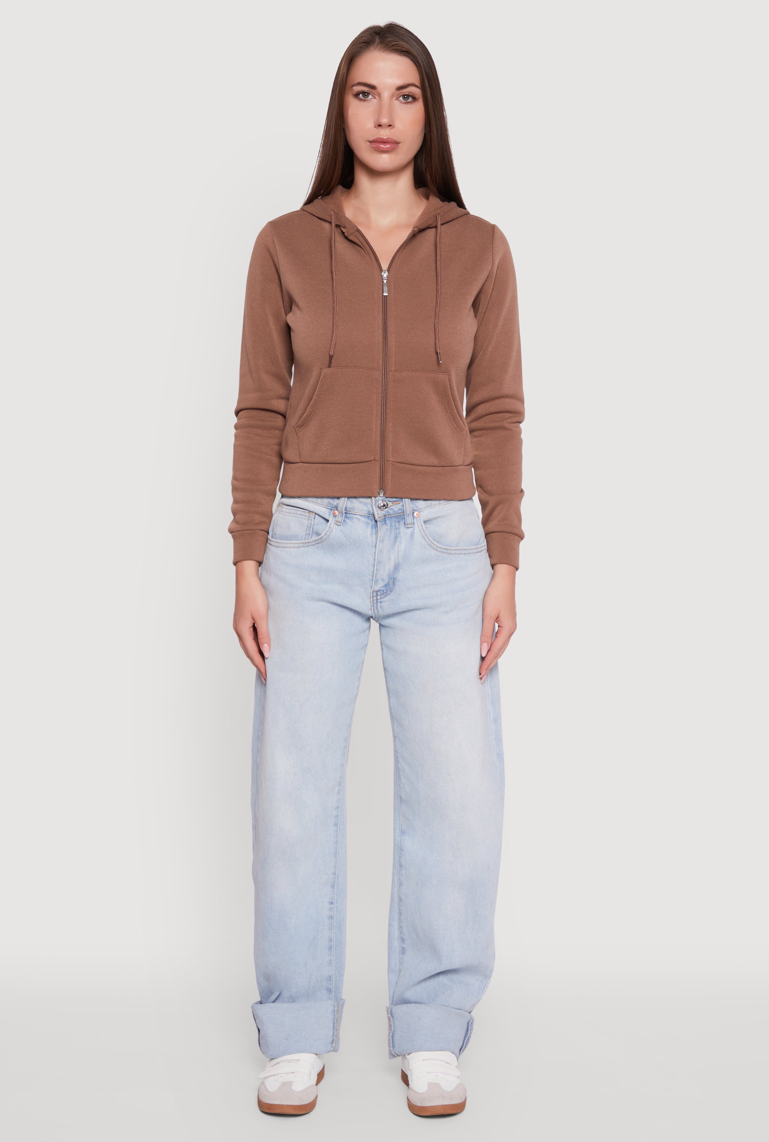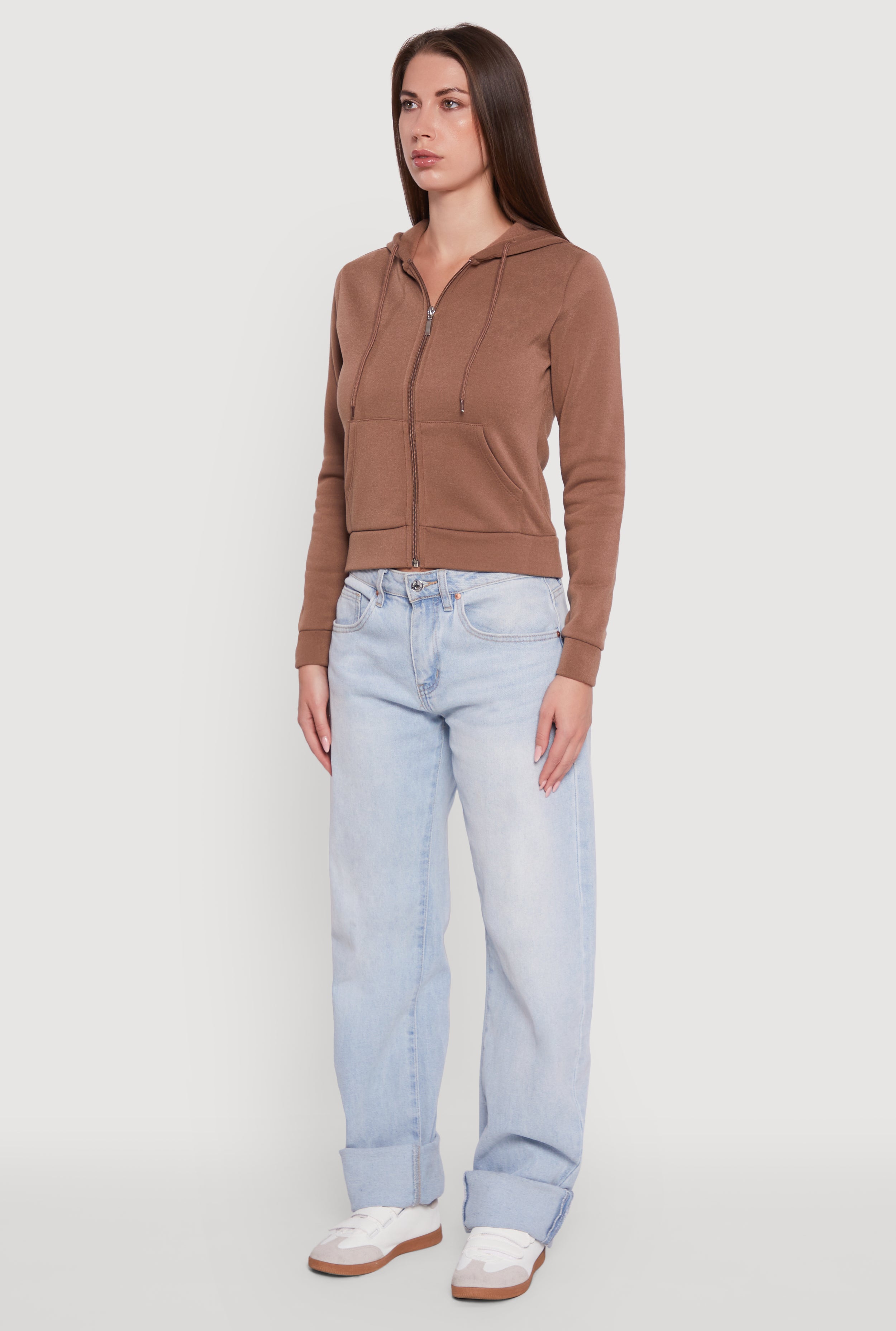 - Full front zipper for easy layering and versatile styling