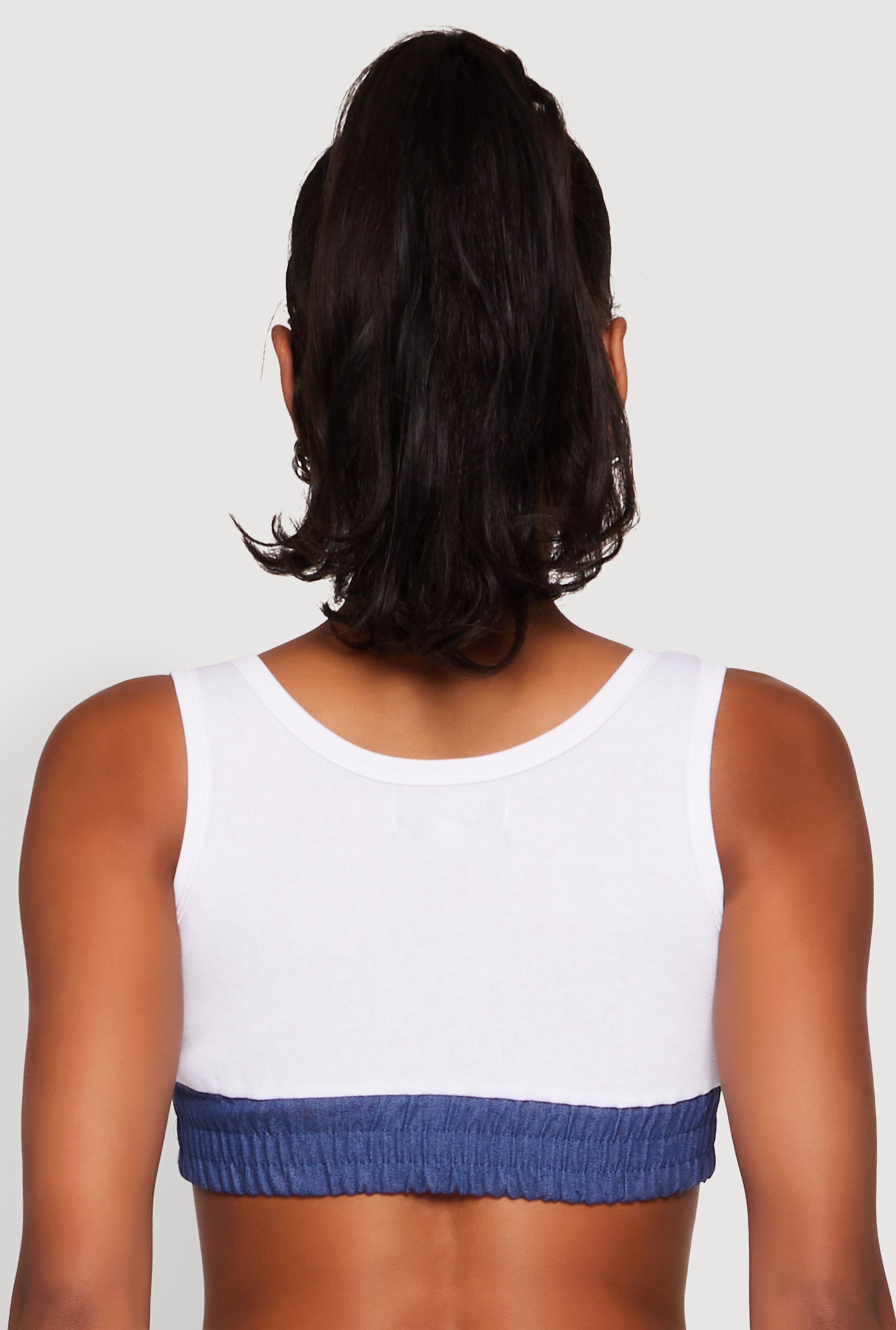 Get ready to turn heads with the 94 Graphic Denim Trim Crop Top. Perfect for adding a cool, casual vibe to your wardrobe, this sleeveless top features a classic scoop neck and a trendy cropped hem that shows just the right amount of skin. With its eye-catching contrast denim trim and playful patches, this top is all about effortless style and comfort. Whether you're hitting the streets or lounging with friends, this versatile piece is your new go-to for a laid-back yet chic look.