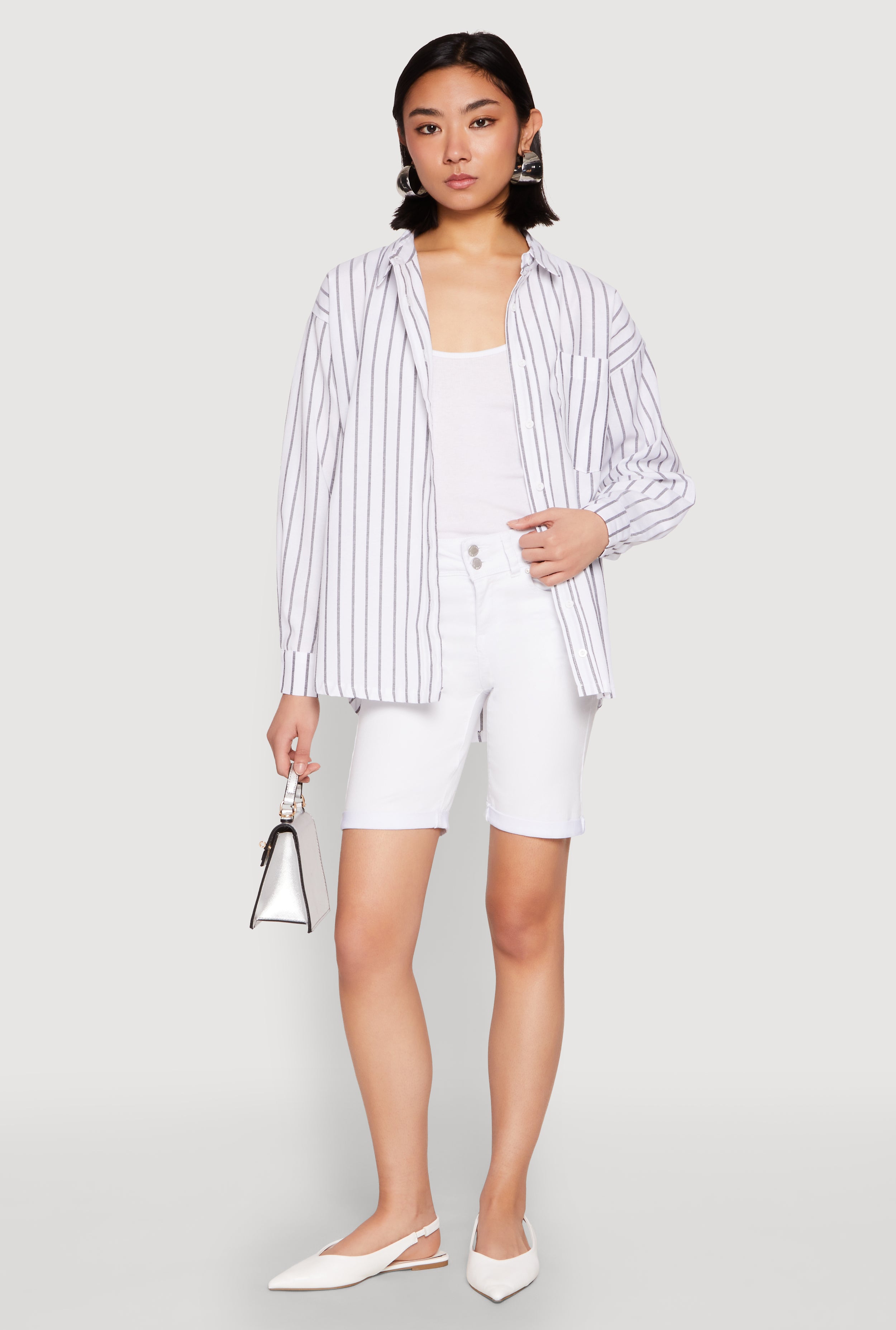 Upgrade your wardrobe with the Iris Striped Linen Button Front Shirt, the perfect blend of effortless style and comfort. Crafted from breathable linen, this classic fit shirt features long sleeves and a timeless shirt collar that makes it versatile for any occasion. Whether you're heading out or lounging in style, this top keeps you looking fresh and feeling cool all day long. Its clean design and lightweight fabric make it a must-have for your everyday wardrobe. Dress it up or down—either way, you'll love how it elevates your look with minimal effort.