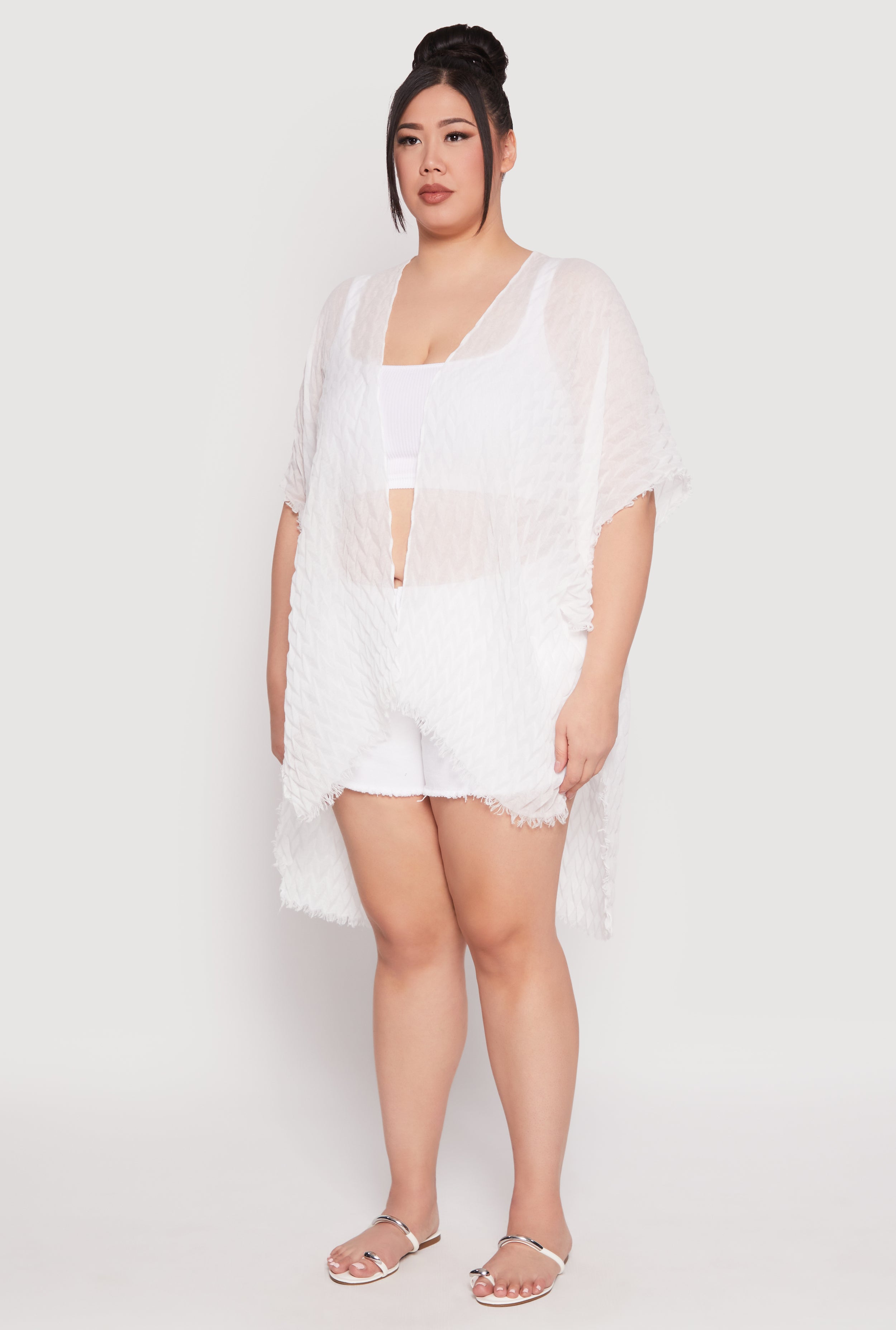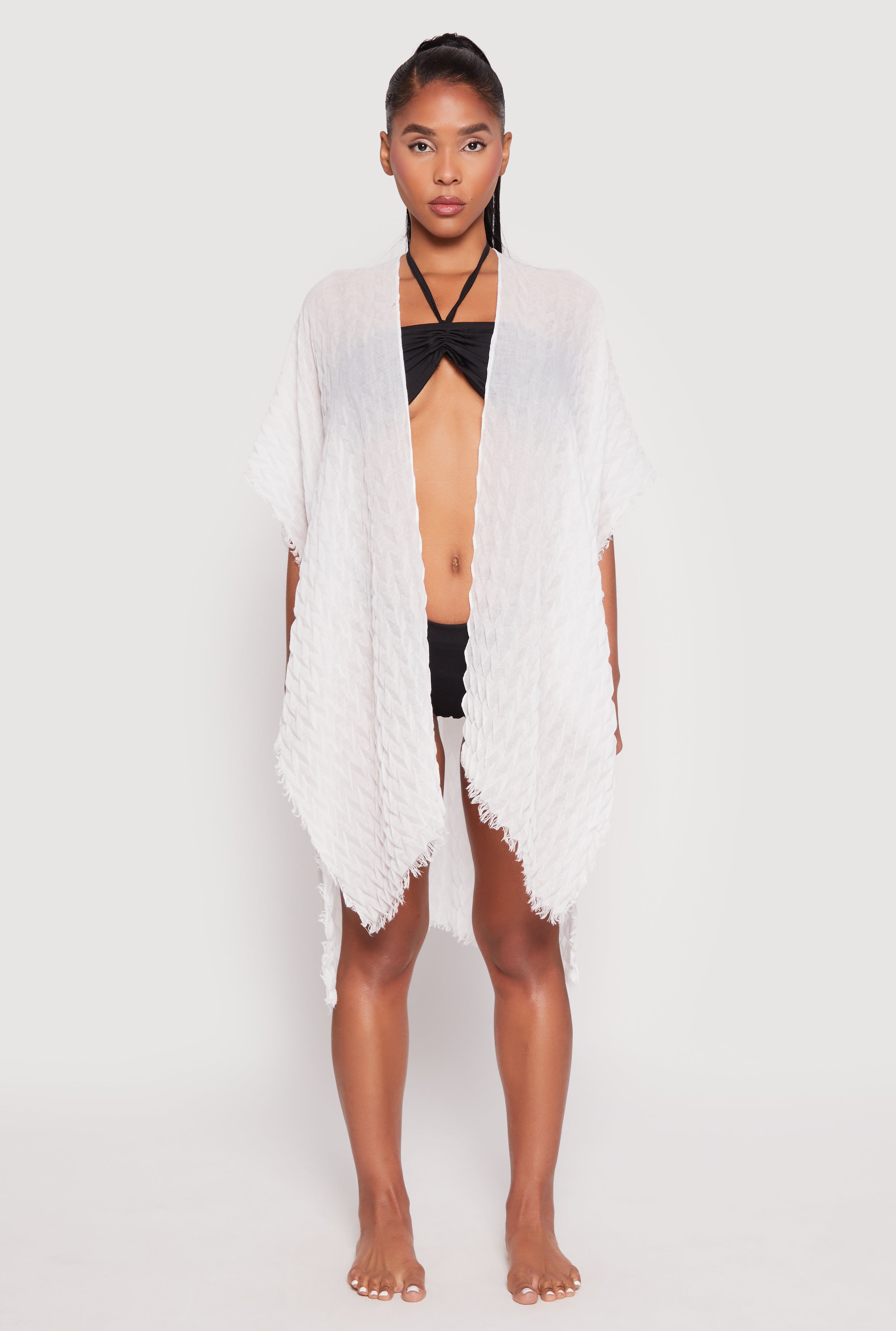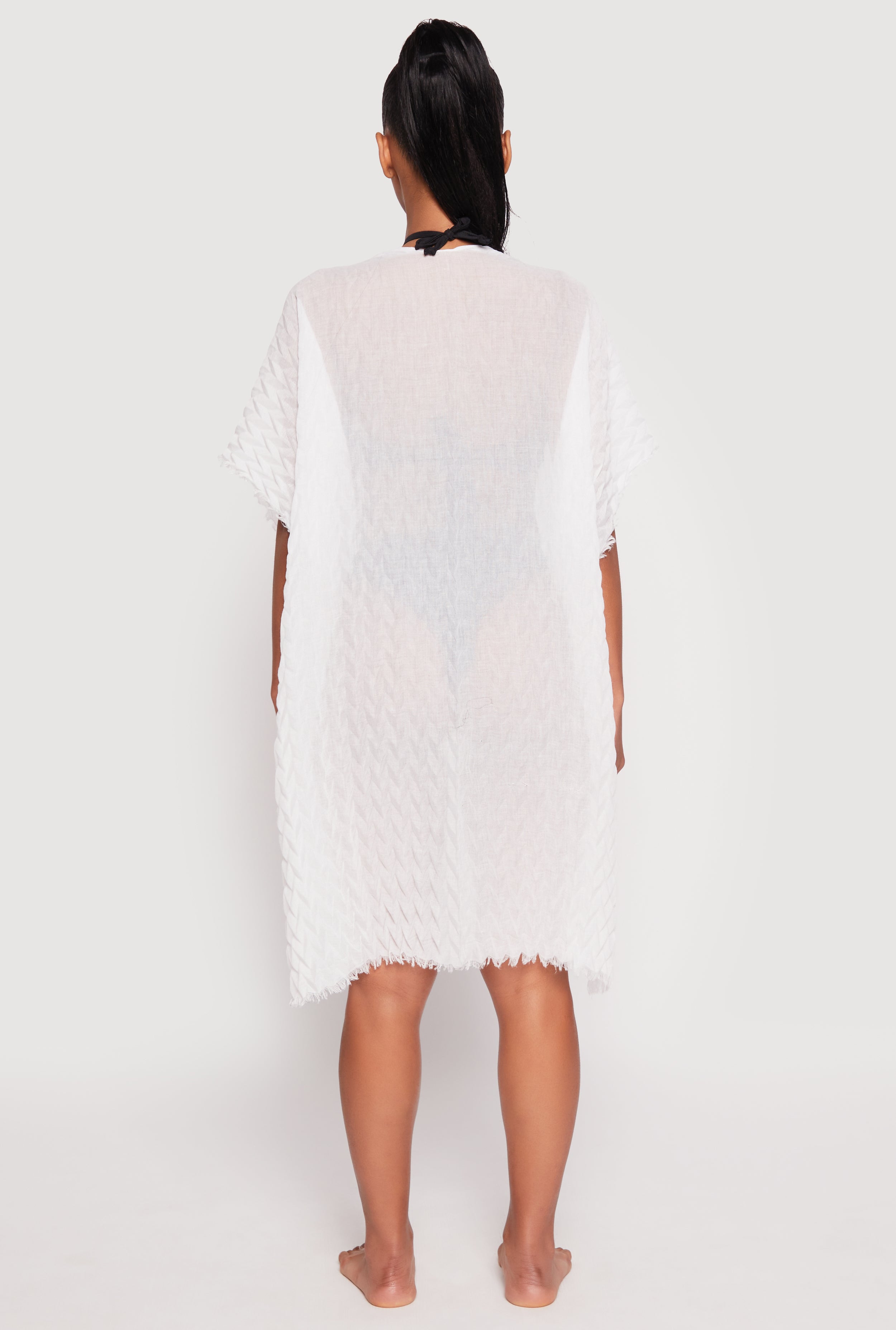 Get ready to turn heads at the pool or beach with our Chevron Cover Up Kimono. Designed to be your go-to piece for effortless style, this lightweight gauze knit kimono offers a relaxed fit that drapes beautifully over your swimsuit. The raw hem adds a touch of edgy charm, while the short dolman sleeves keep you feeling cool and comfy. Perfect for lounging or strolling along the shoreline, this versatile cover up is a must-have for every fashion-forward woman. Plus, it fits XS to 4X, so everyone can enjoy its chic vibe.