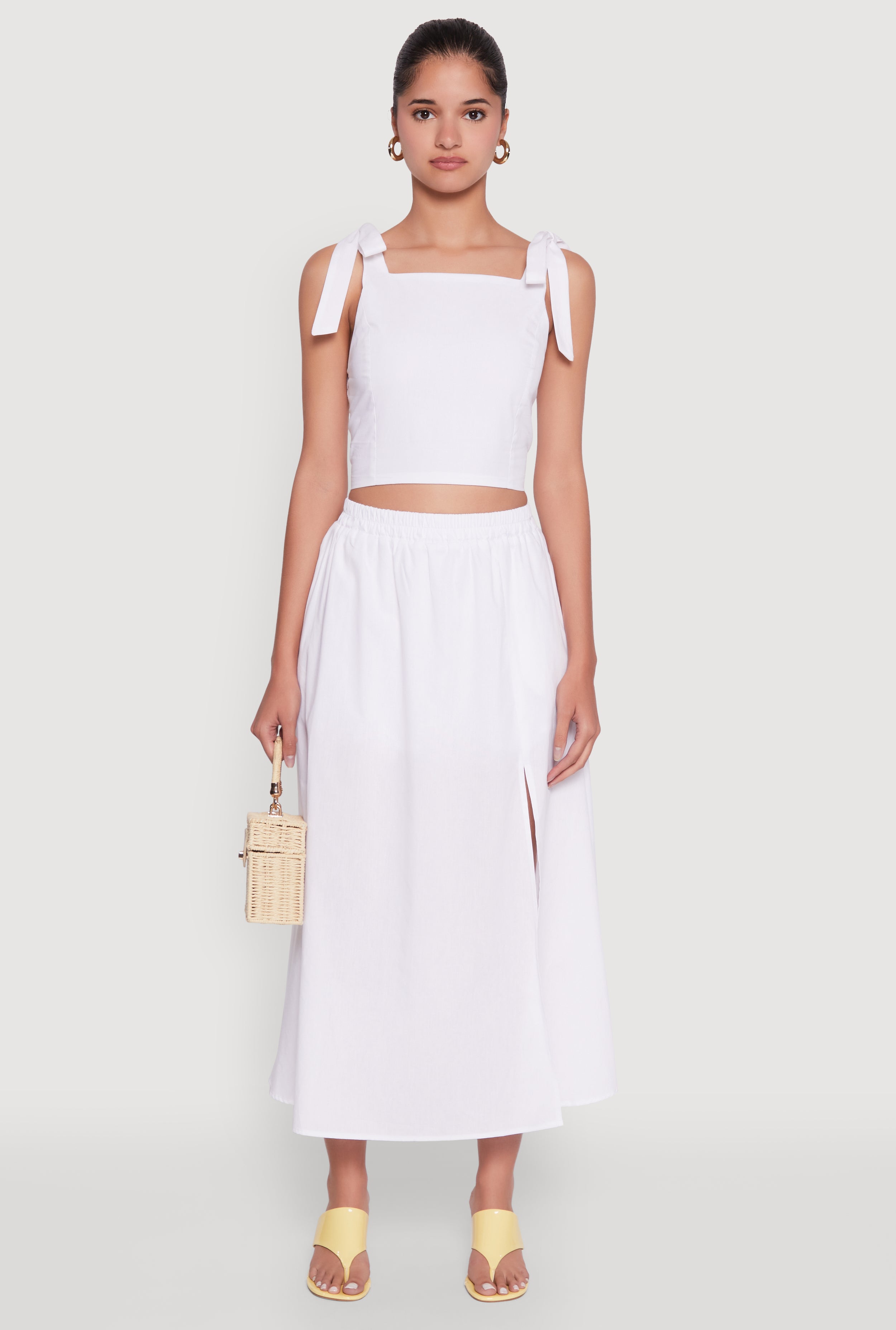 Upgrade your wardrobe with the Chic Bow Detail Smocked Crop Top, a must-have for effortless style and all-day comfort. Featuring a cute bow detail and a flattering square neckline, this sleeveless blouse is perfect for sunny days or layered looks. The classic fit and cropped hem give it a timeless silhouette that pairs easily with your favorite jeans or skirts. Whether you're heading out with friends or just want to feel fabulous, this top is your new go-to piece.