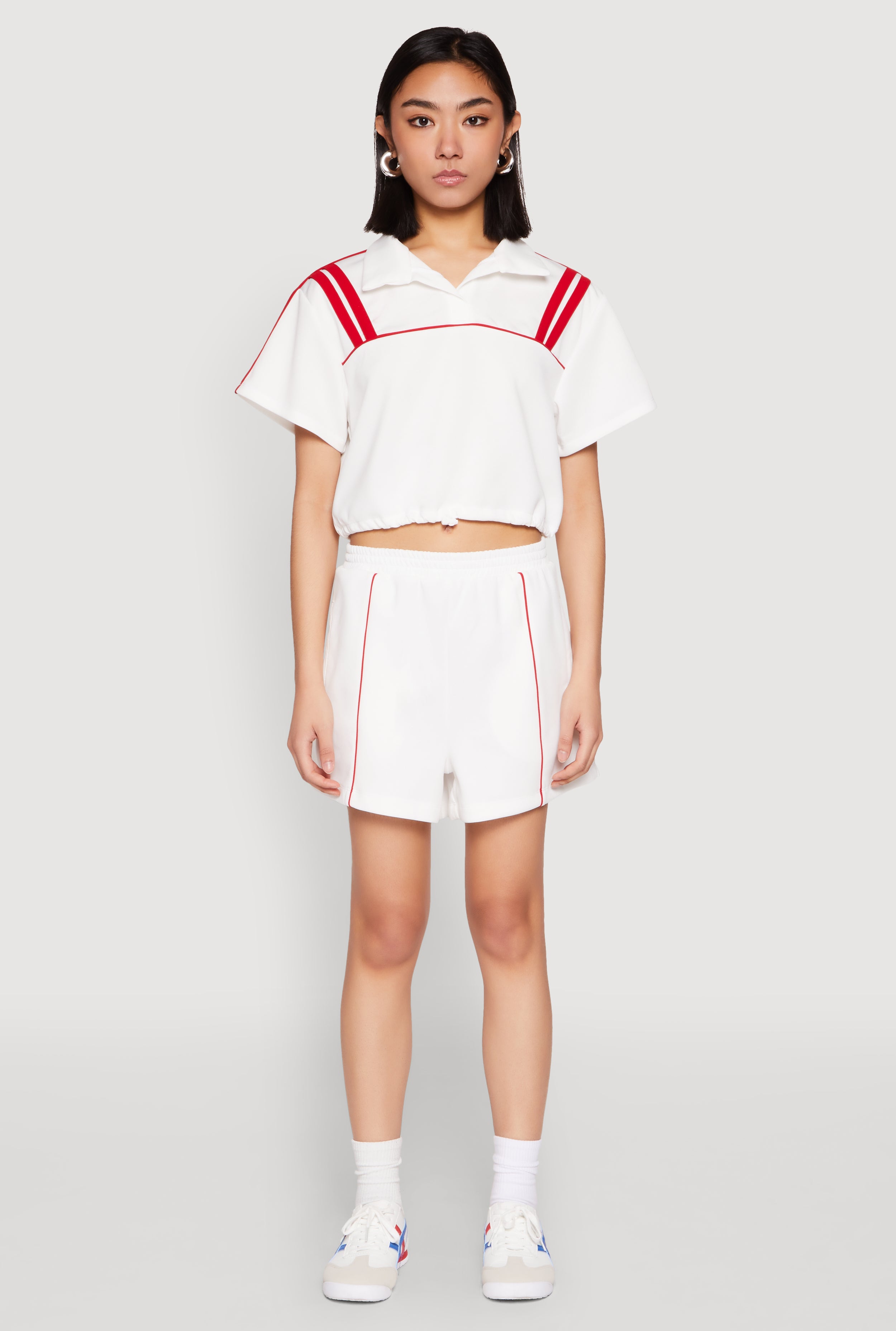 Contrast Piping Varsity Stripe Detail Crop Top