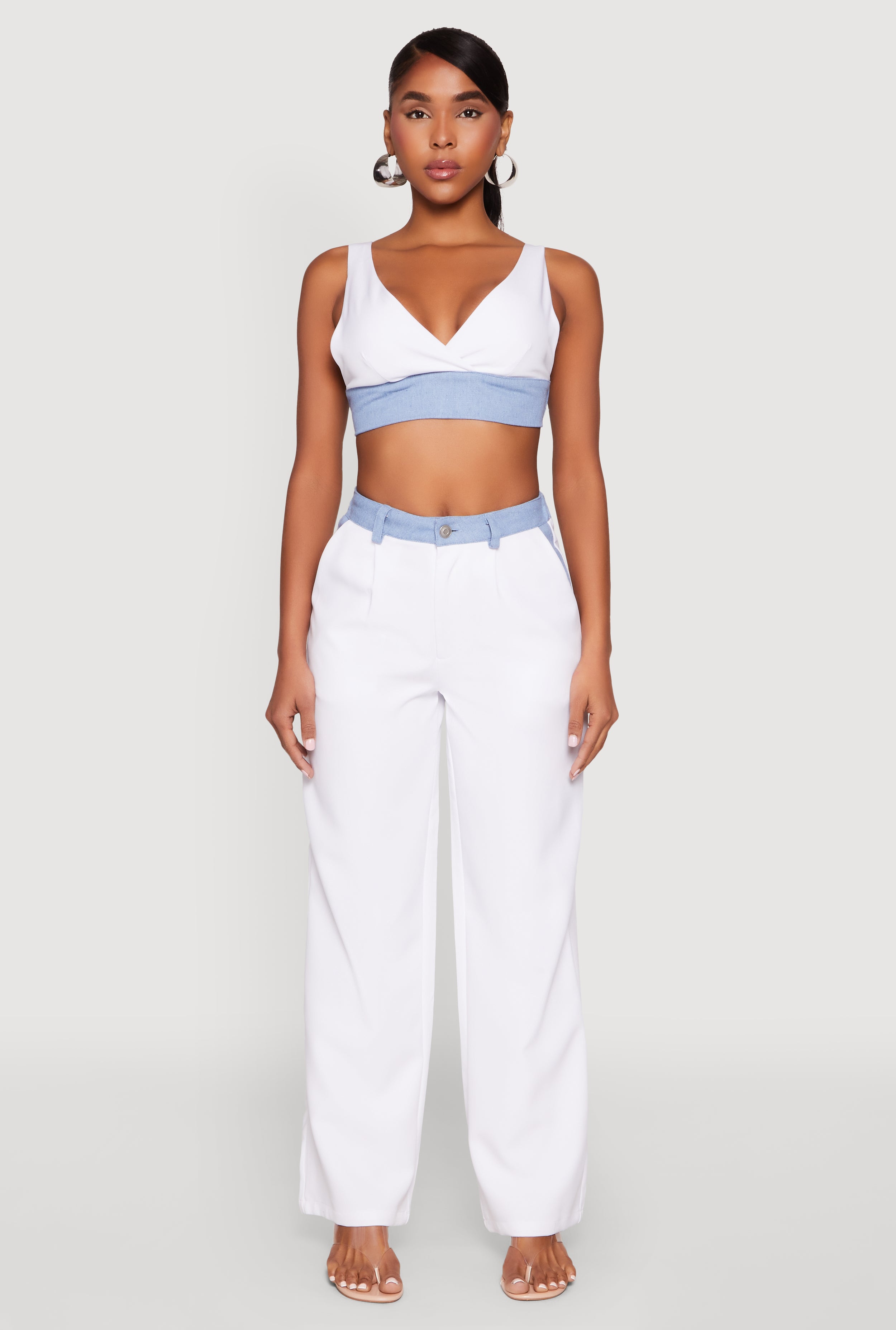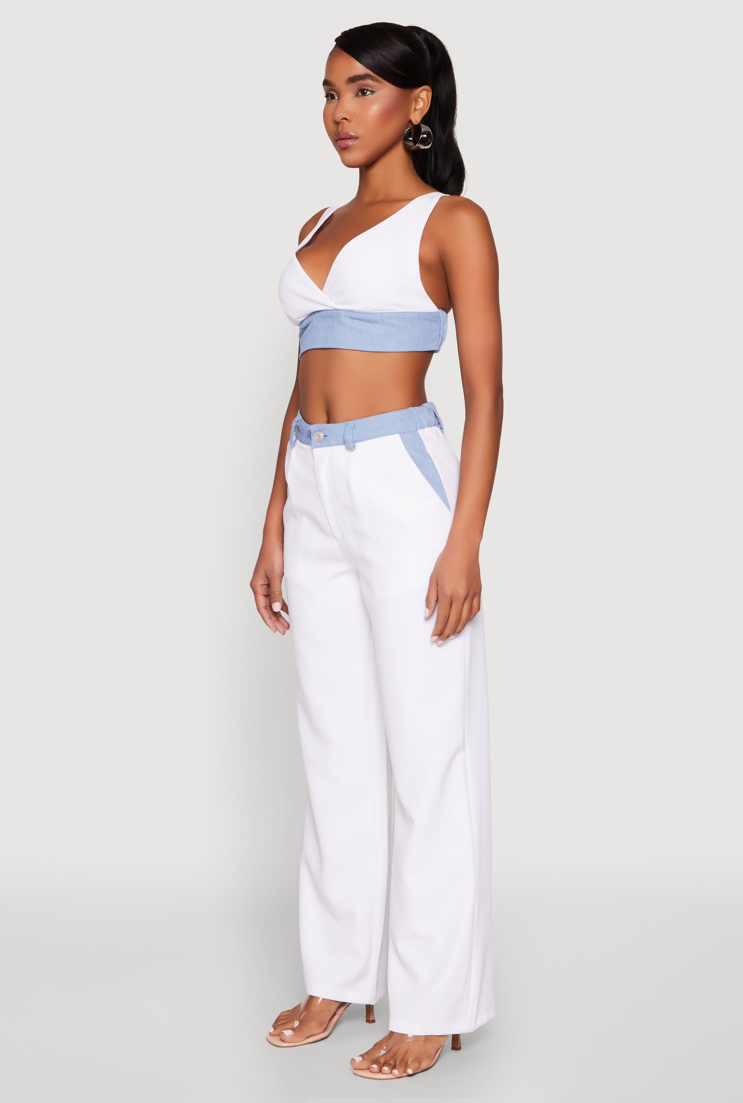 Upgrade your wardrobe with our Denim Contrast Trim Bralette, the perfect blend of comfort and style. Designed to hug your curves with a shaped silhouette, this sleeveless bralette features a trendy V-neck and a cropped hem that adds a flirty touch to any outfit. The elastic hem ensures a snug fit, while the adjustable straps let you customize your look. Whether you're lounging or layering, this bralette is your new go-to for effortless chic.