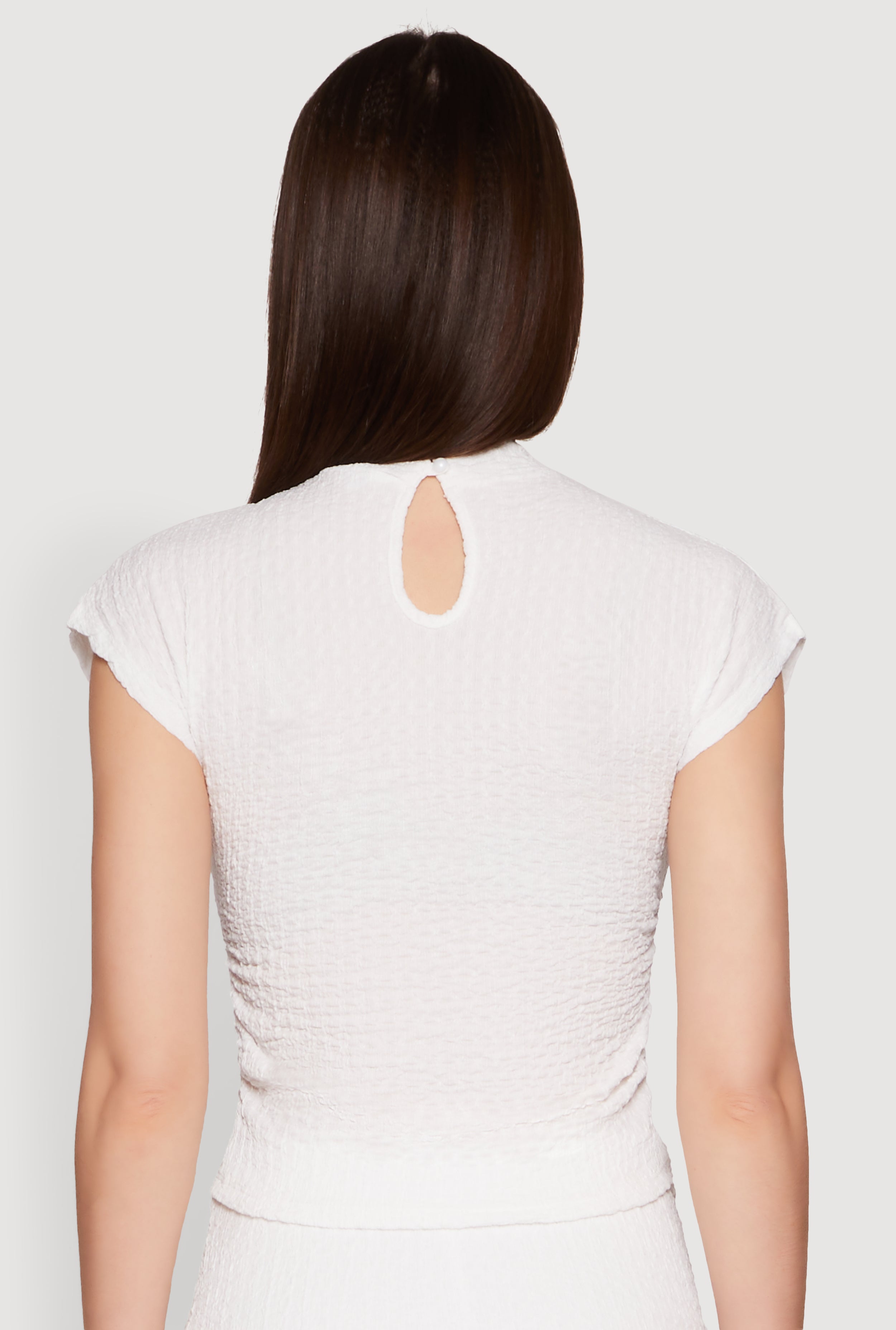 Elevate your everyday wardrobe with the Iris Textured Knit Blouse — where classic style meets modern flair. Crafted from cozy textured knit fabric, this blouse features a chic mock neck and cap sleeves, making it a versatile piece that transitions effortlessly from brunch dates to casual office days. The subtle ruching and button-back keyhole add just the right touch of detail, ensuring you'll turn heads without trying too hard. Perfect for those who love timeless silhouettes with a contemporary twist, this blouse is your new go-to for effortless style.