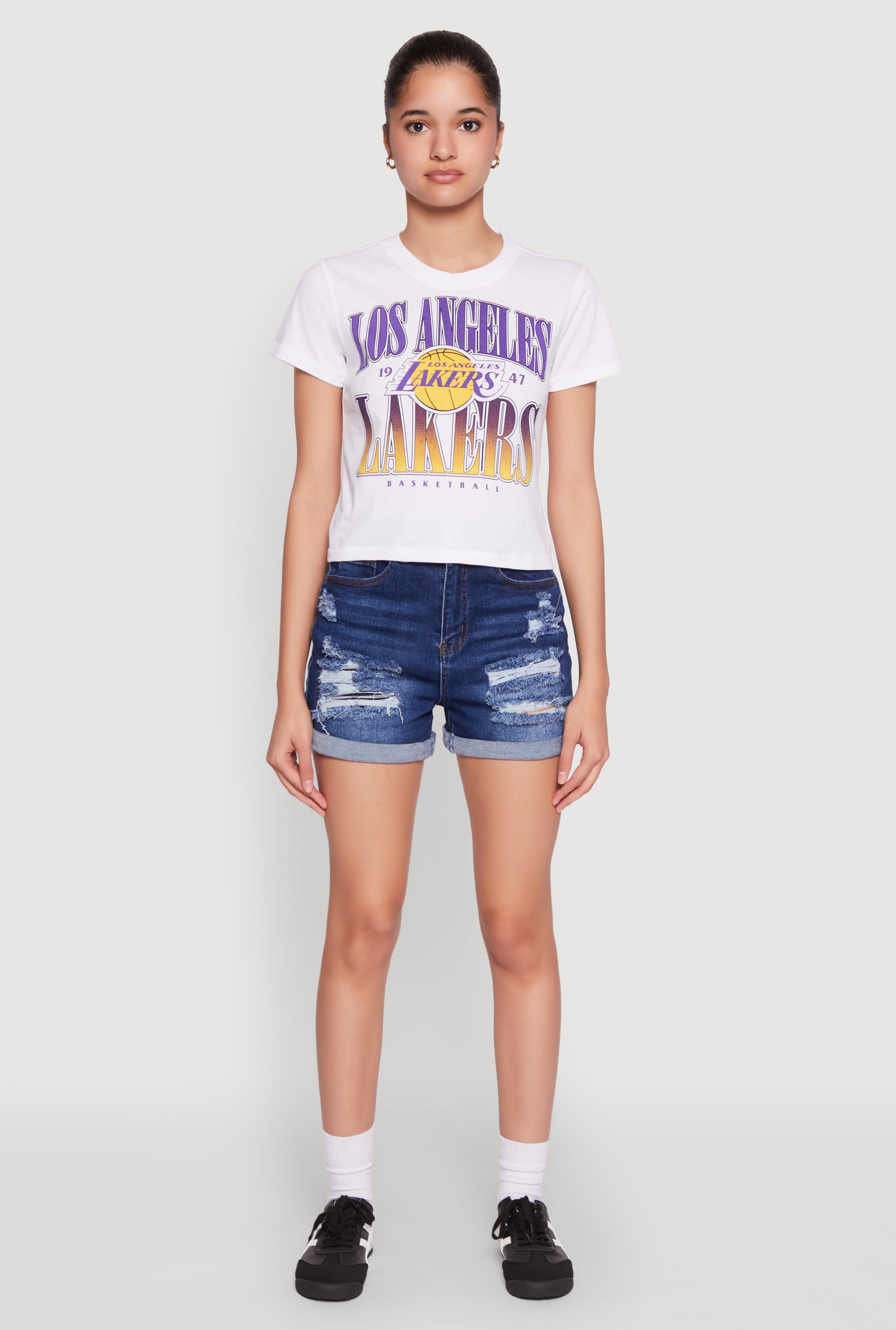 Looking to show off your team spirit in style? The NBA Los Angeles Lakers Cropped Top is your new go-to for effortless cool. With its classic fit and timeless silhouette, this T-shirt combines comfort and trendiness in one perfect package. Whether you're heading to the game or just want to add a sporty edge to your everyday look, this cropped top is a must-have for every Lakers fan. Its short sleeves and crew neckline make it easy to wear all day long while flaunting your team pride.