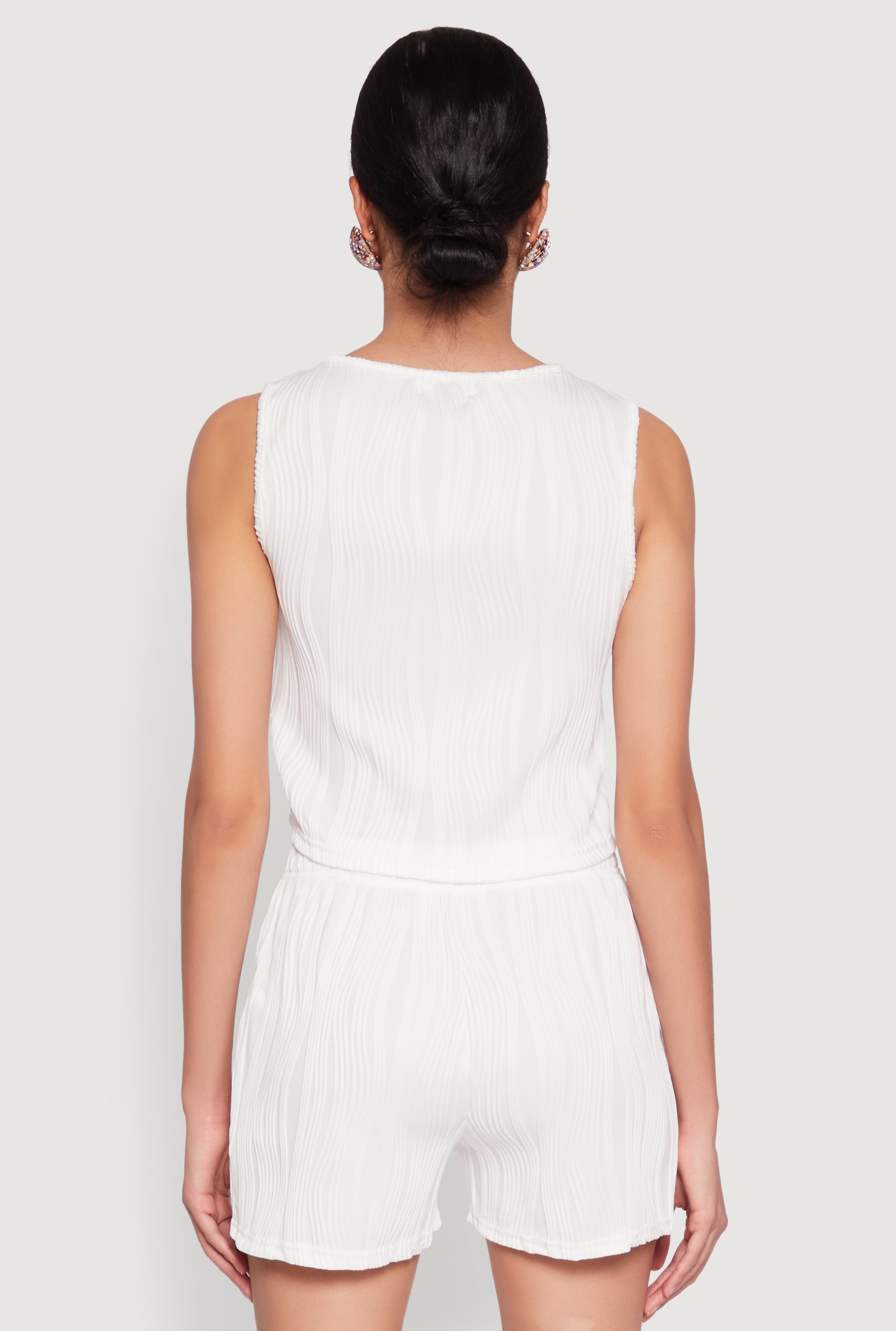 Upgrade your casual wardrobe with the Plisse Knit Cropped Tank Top, a must-have for effortless style and comfort. Its textured plisse fabric adds a fun, unique touch, while the square neckline and sleeveless design keep you cool and chic. Perfect for activewear or laid-back days, this timeless piece is your new go-to for a fresh, trendy look that fits just right.