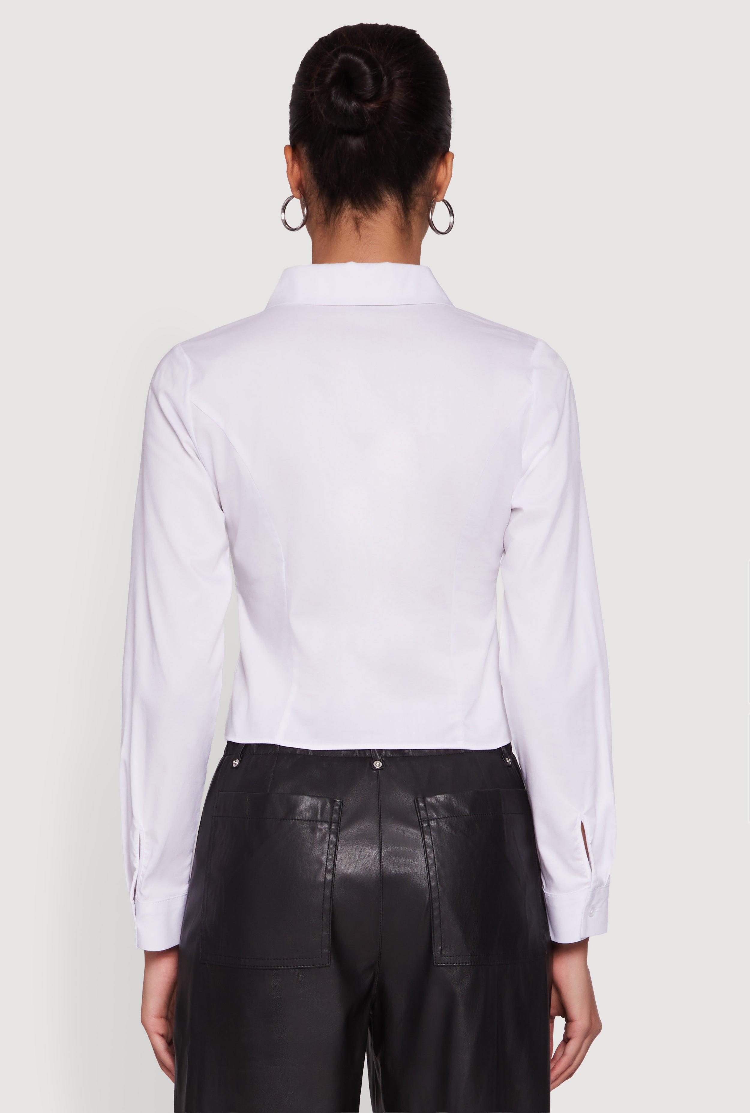 • Poplin Cropped Long Sleeve Button Front Shirt