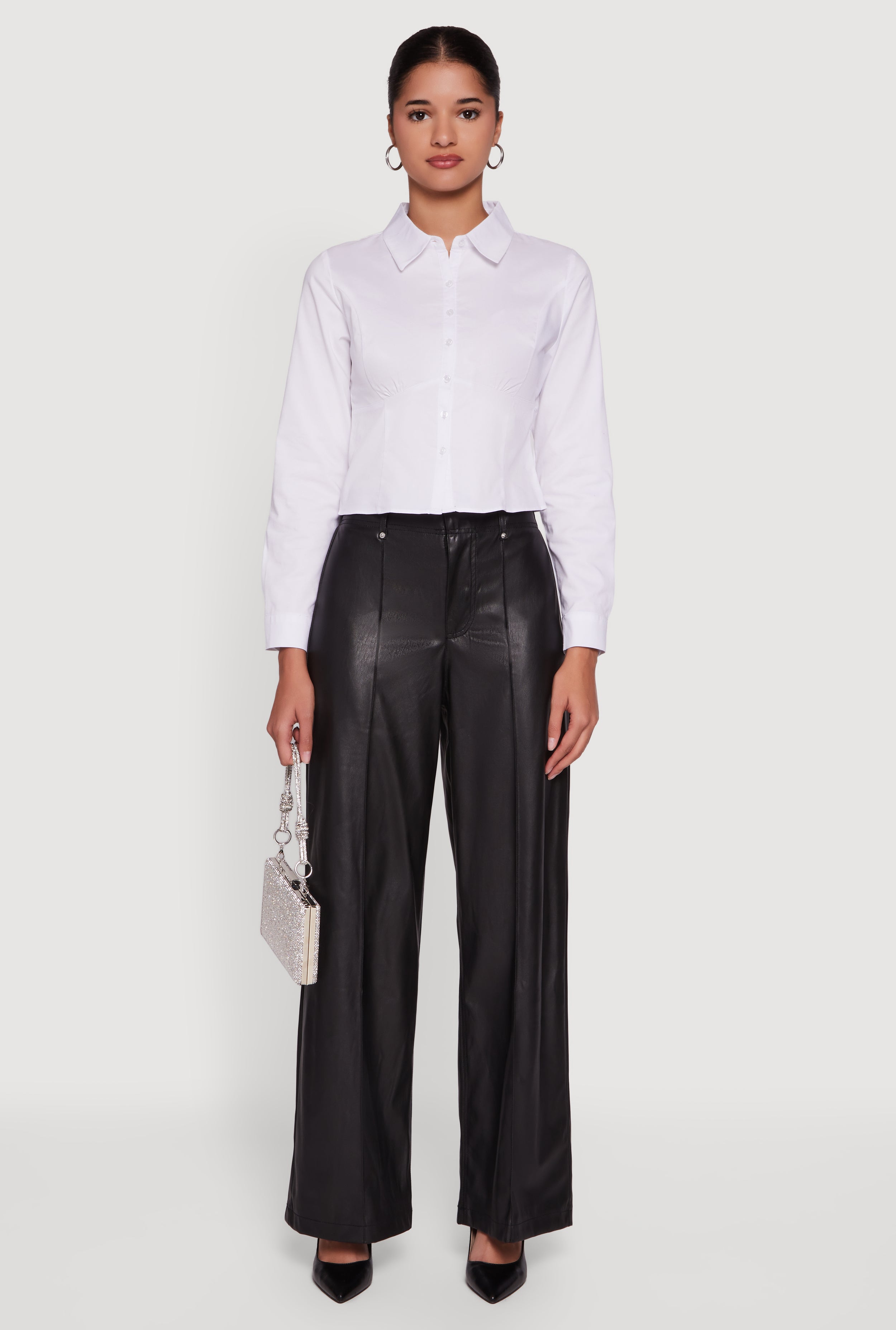 The Poplin Cropped Long Sleeve Button Front Shirt blends classic vibes with a fresh, cropped twist—perfect for casual hangouts or a night out with friends. Crafted from crisp poplin, it offers a timeless silhouette with a shirt collar and button front that keeps your look effortlessly cool. Whether layered or worn solo, this shirt adds a dash of laid-back chic to any outfit.