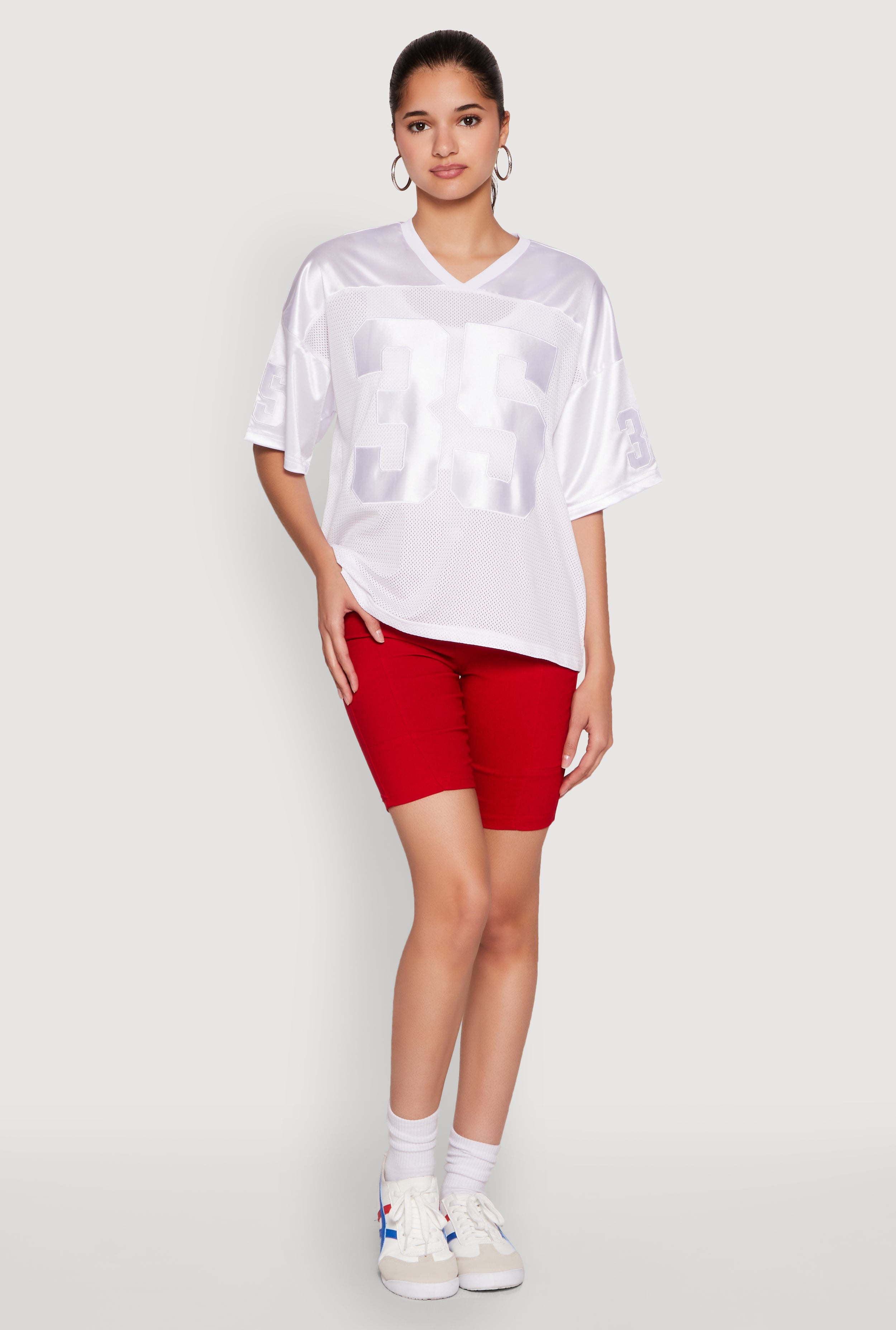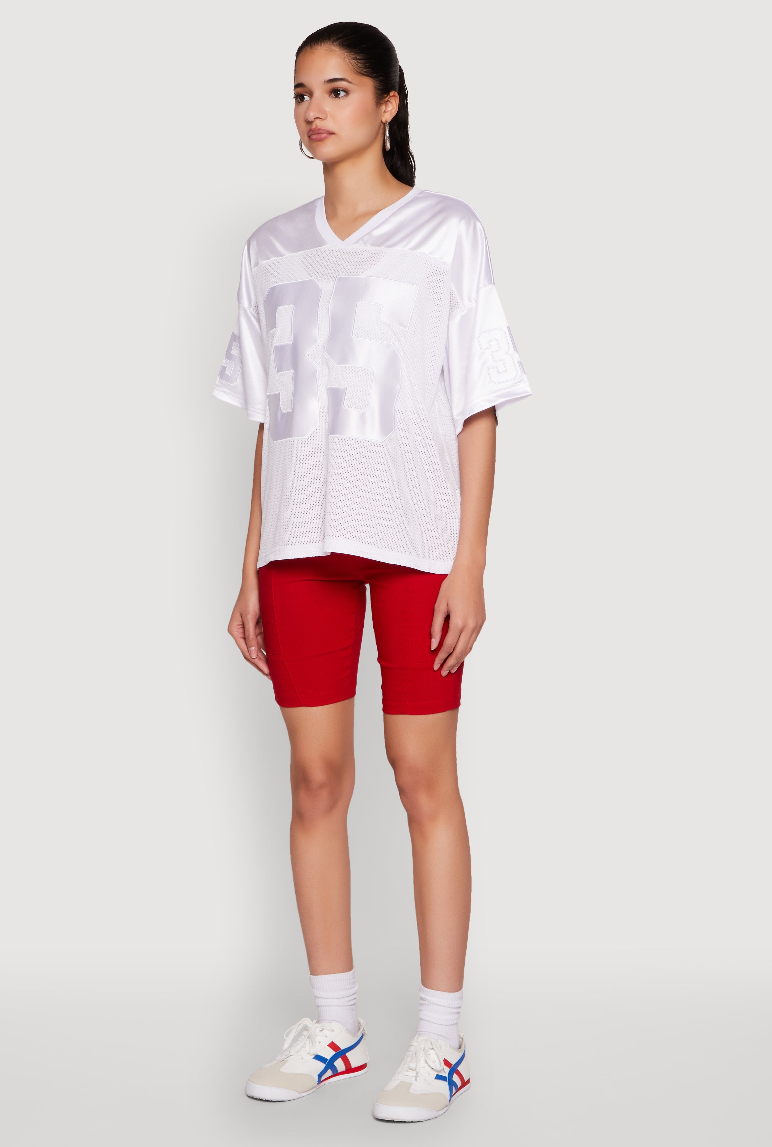 Step up your style game with our Satin Football Jersey, the perfect blend of sporty chic and luxe comfort. Designed for women who want to stand out, this classic fit T-shirt features a sleek satin finish that adds a touch of elegance to any casual look. With its V-neck and short sleeves, it’s effortlessly stylish and super easy to pair with your favorite jeans or skirts. Whether you're heading out with friends or just want to feel confident and comfy, this jersey is your new go-to piece for everyday fashion that makes a statement.