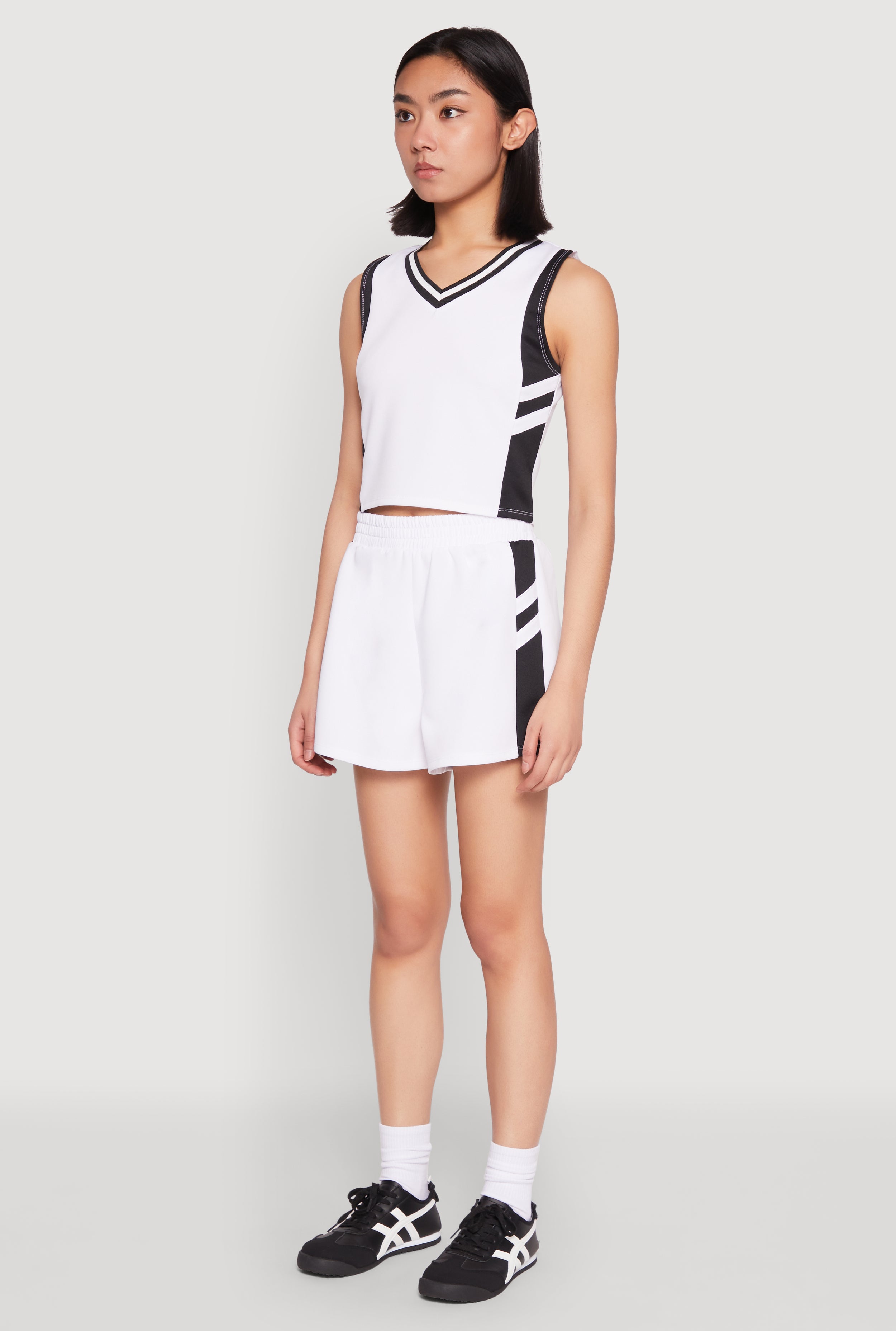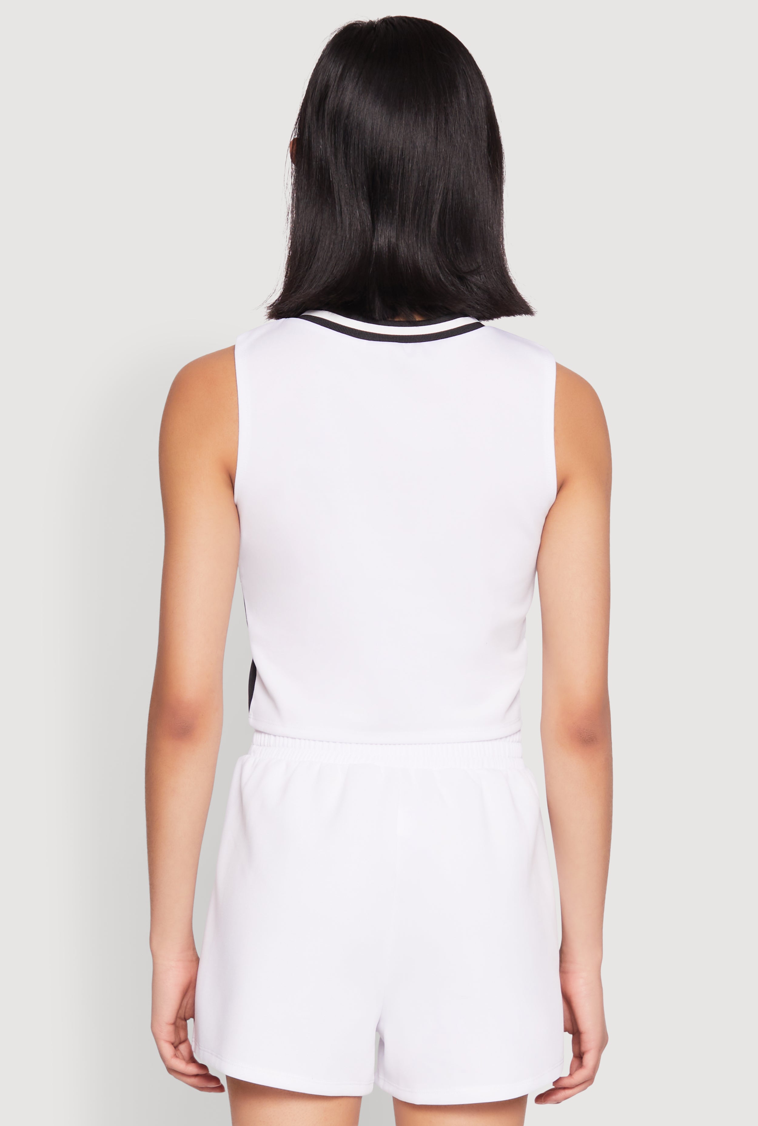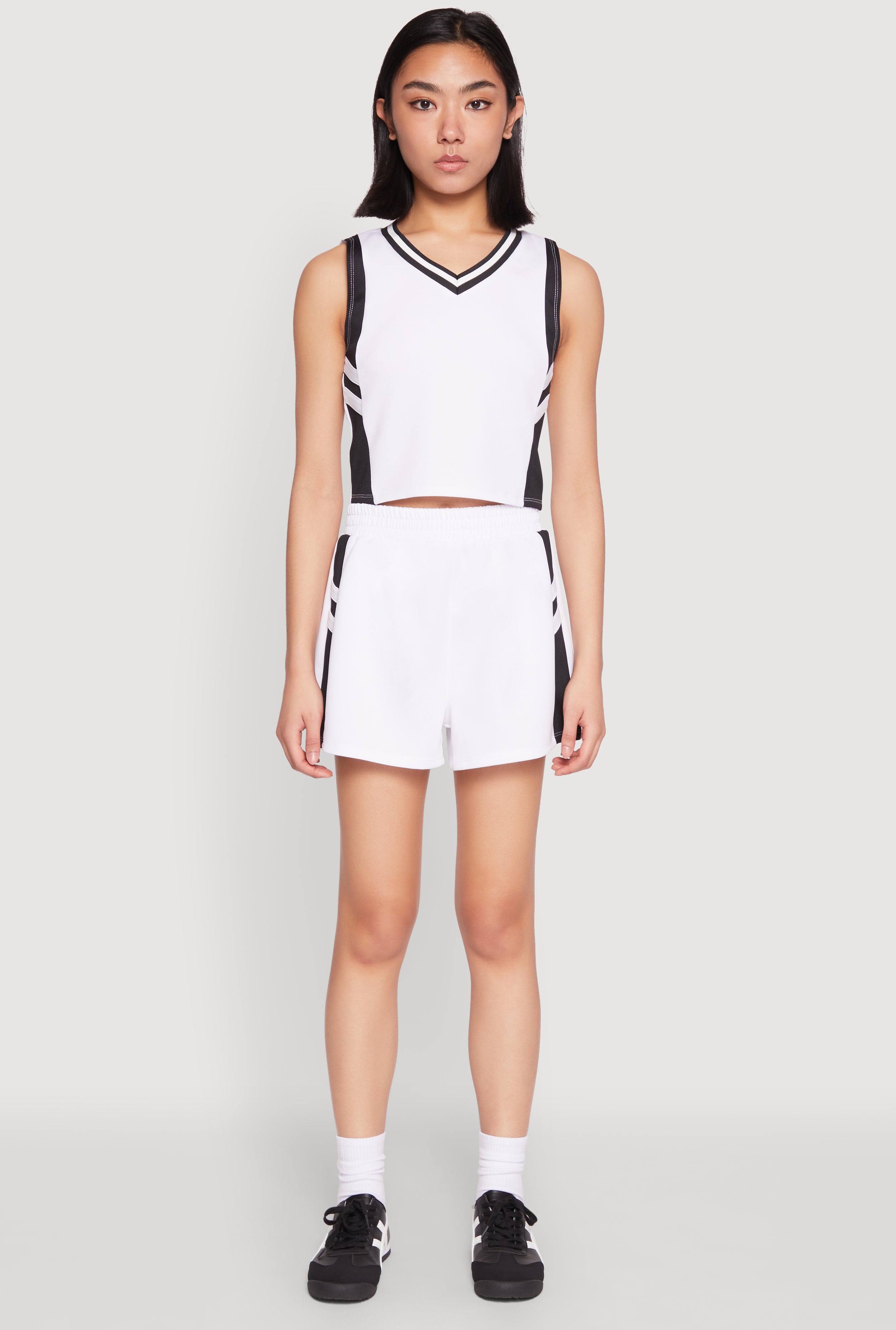 - Features a trendy varsity stripe contrast trim for a sporty aesthetic