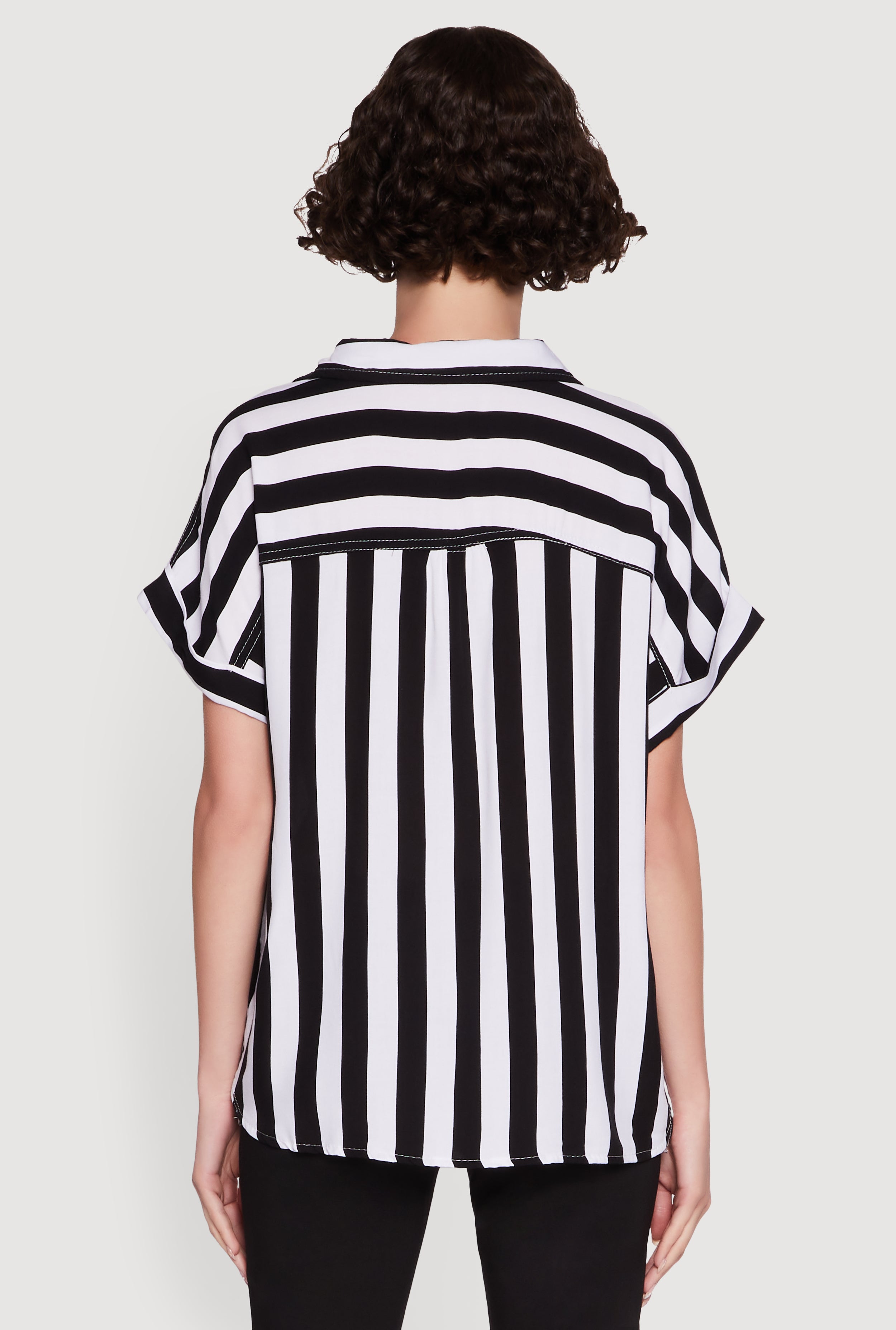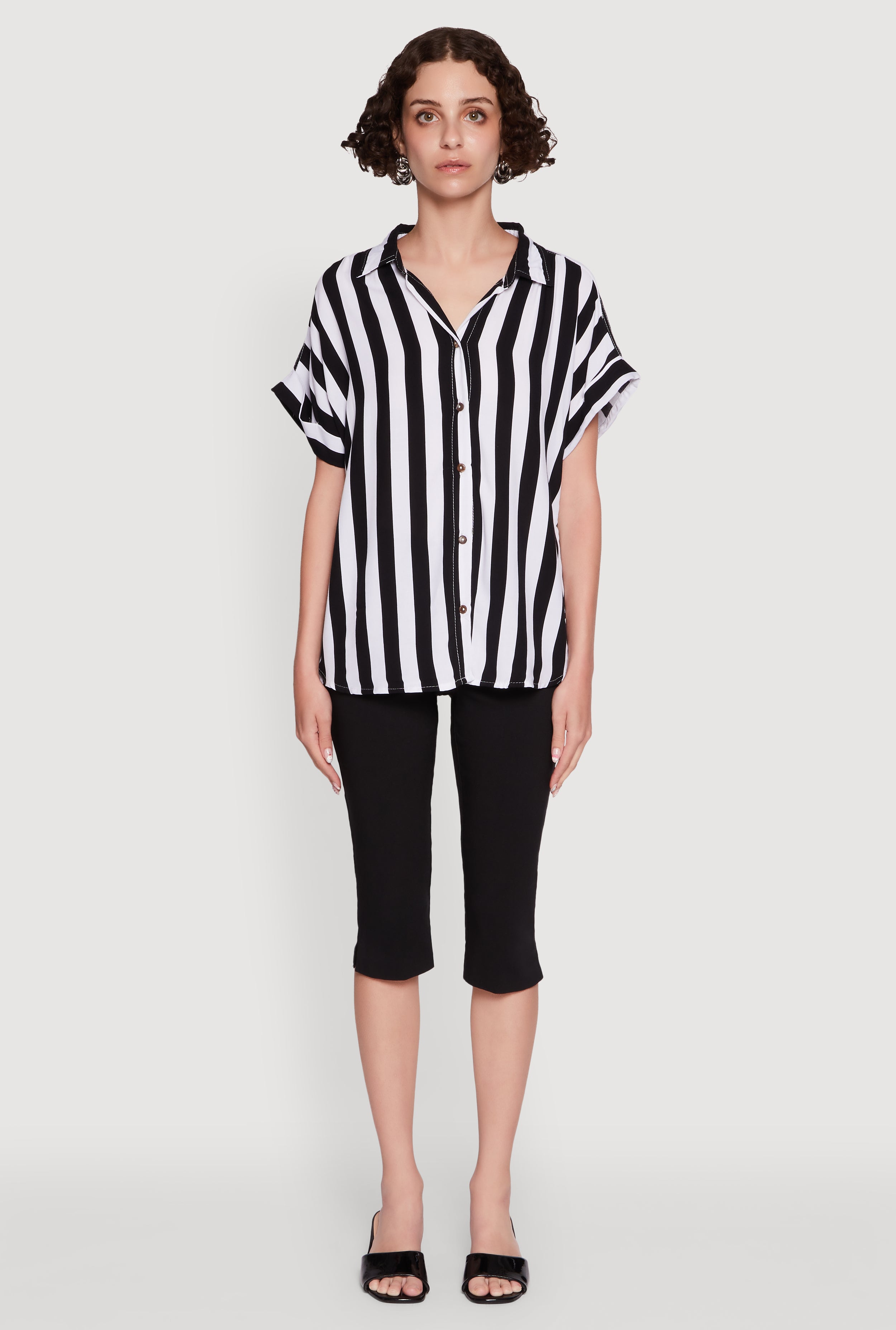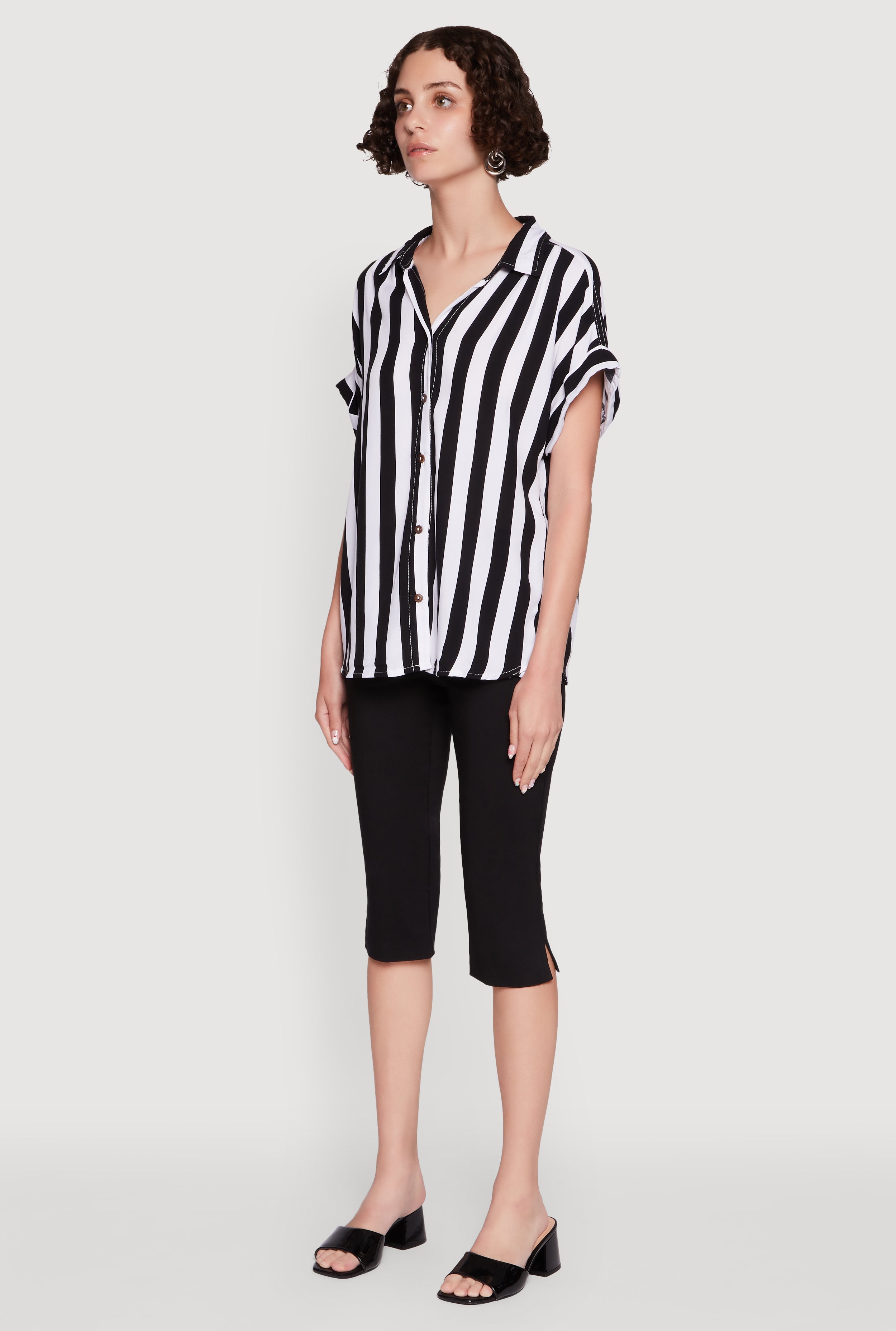 Step up your casual game with the Striped Button Front Fixed Cuff Shirt. This classic fit shirt brings timeless style with a fresh twist thanks to its crisp button front and cool striped pattern. Perfect for vacation vibes or everyday wear, its short sleeves and fixed cuffs keep things effortlessly chic and comfortable. Whether you're brunching with friends or exploring new spots, this shirt has got your back for easy, breezy style that never quits.