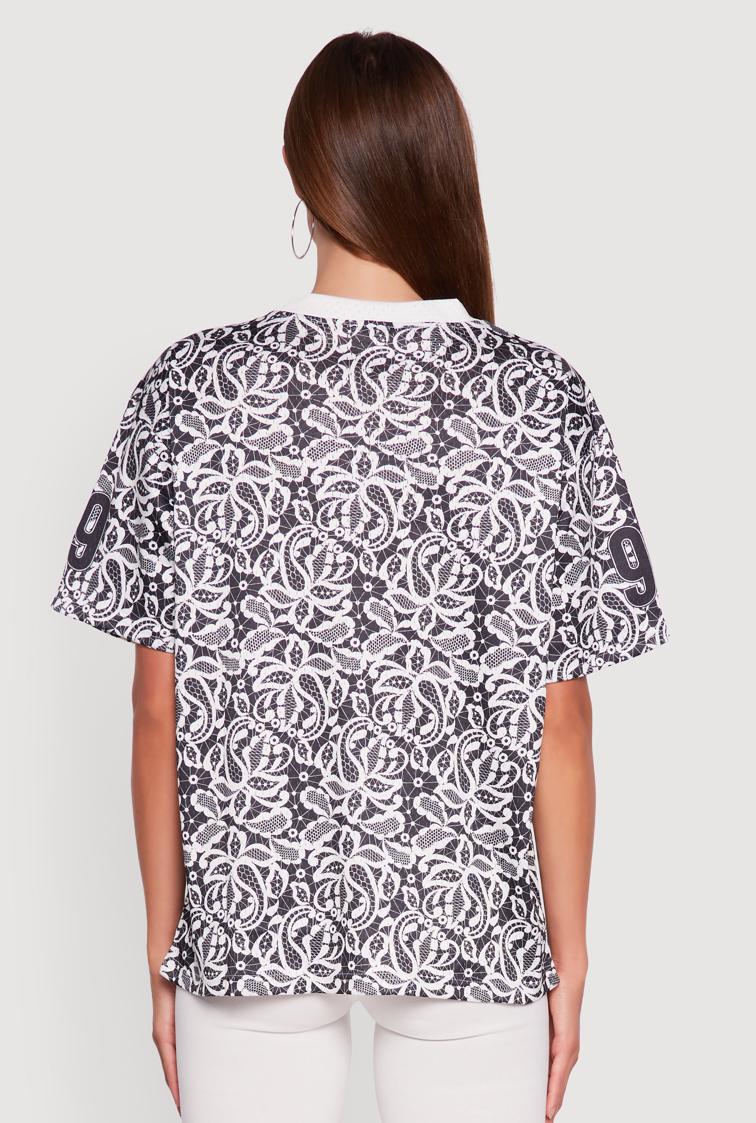 Step up your casual game with the V-Neck Patterned 99 Graphic Print Jersey. This classic fit tee brings sporty vibes with a cool graphic 99 print and a flattering V-neckline. Made from breathable jersey mesh, it keeps you comfy whether you're out with friends or just chilling. The short sleeves and timeless silhouette make it an easy go-to for any laid-back day.