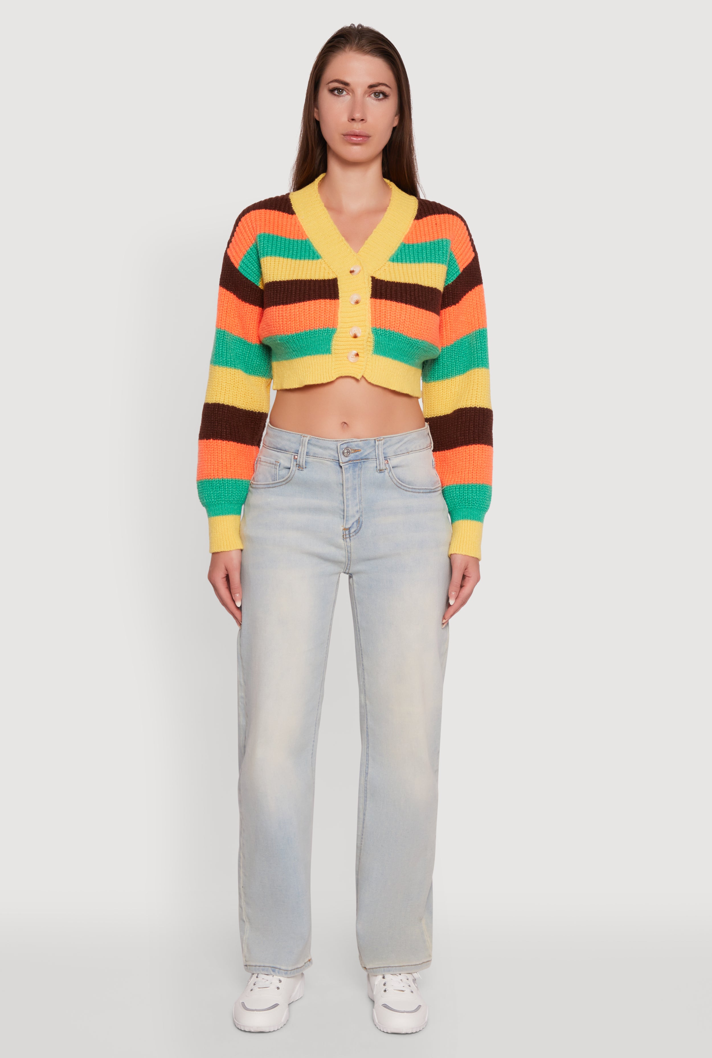 Meet your new go-to for effortless cool: the Daisy Striped V-Neck Button Front Cropped Cardigan. This classic fit piece brings timeless vibes with a fresh twist, thanks to its flattering cropped length and bold stripes. Whether you're heading back to school or just keeping it casual, this cozy brushed knit cardigan is ready to elevate your everyday look. Button it up or leave it open for instant style points that feel as good as they look.
