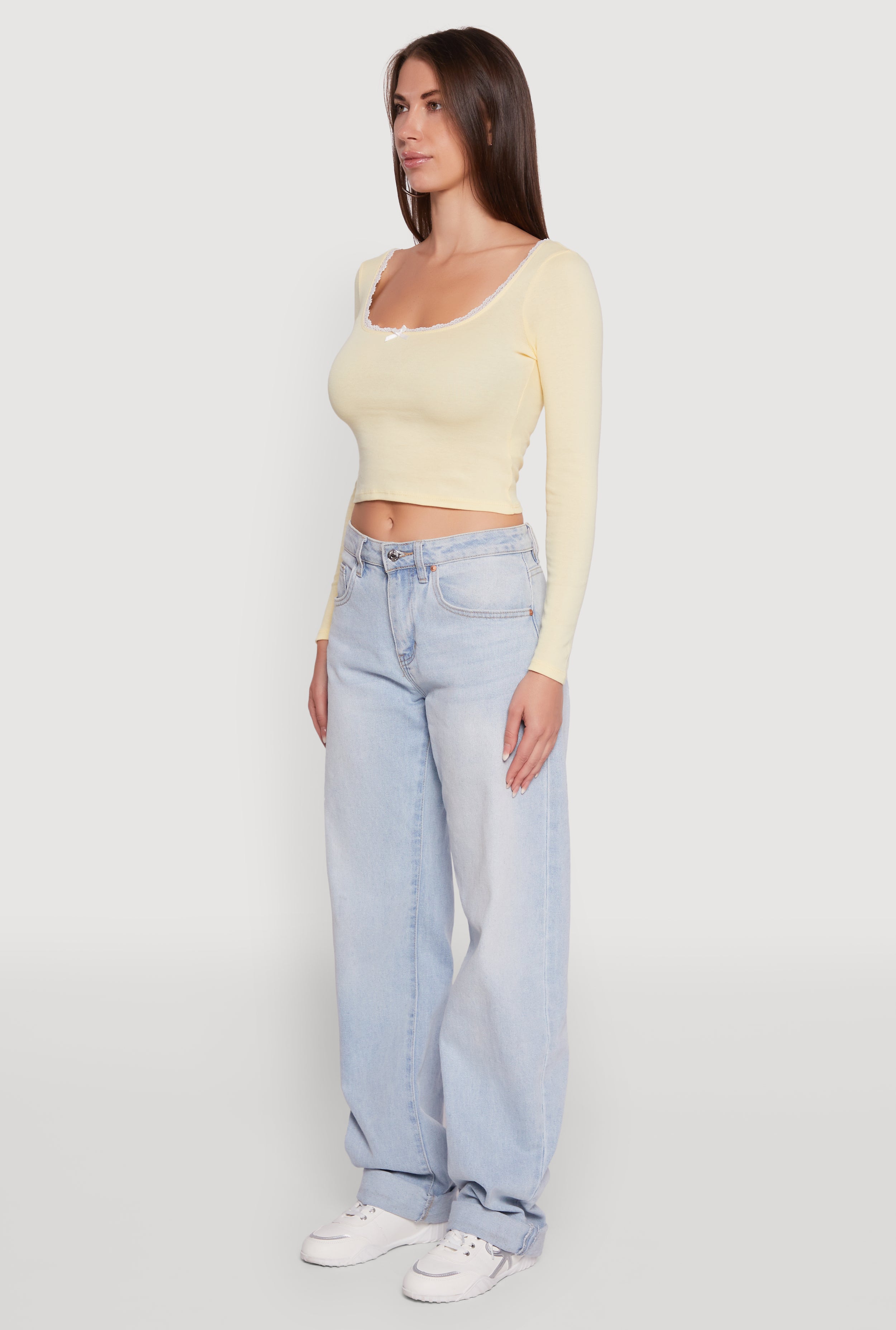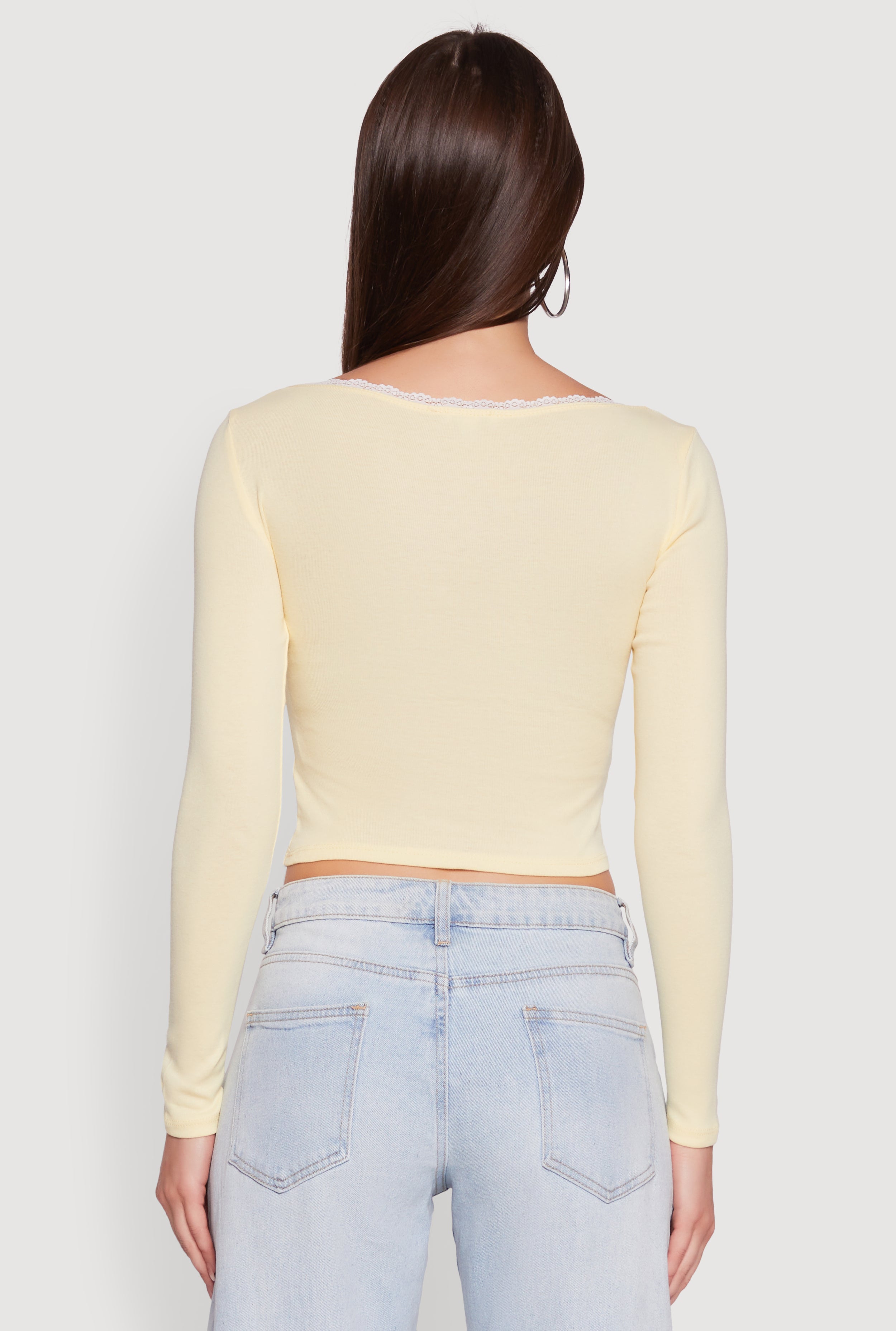 • Lace Detail Scoop Neck Long Sleeve Crop Top
