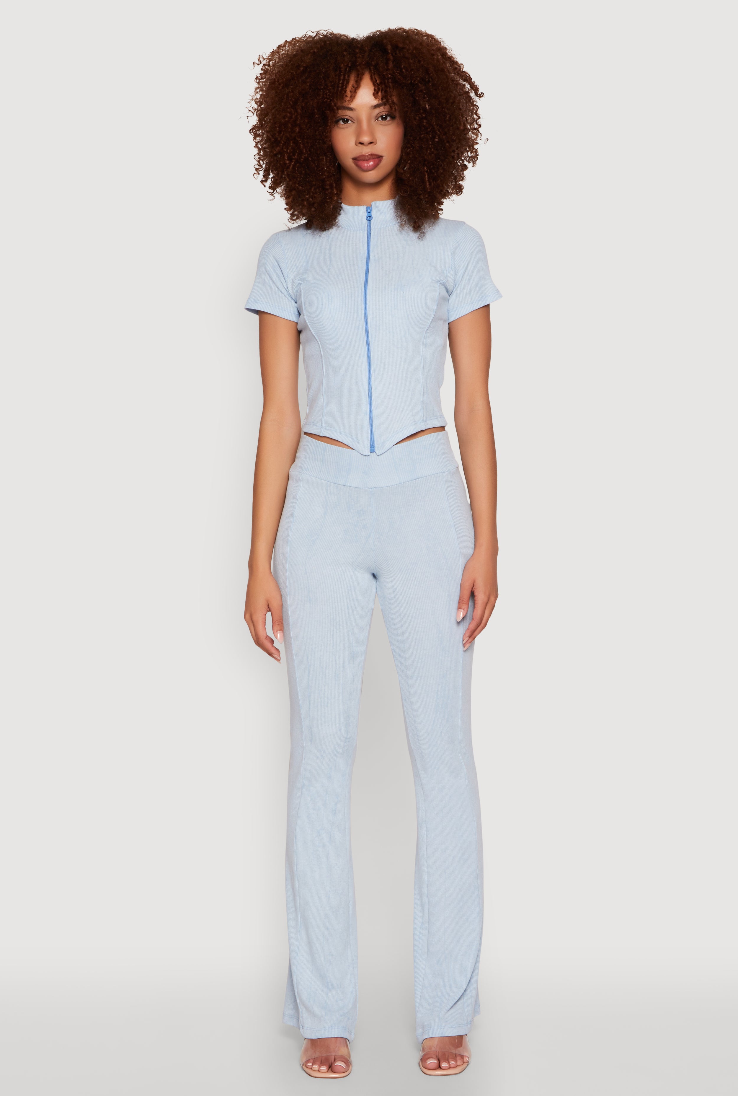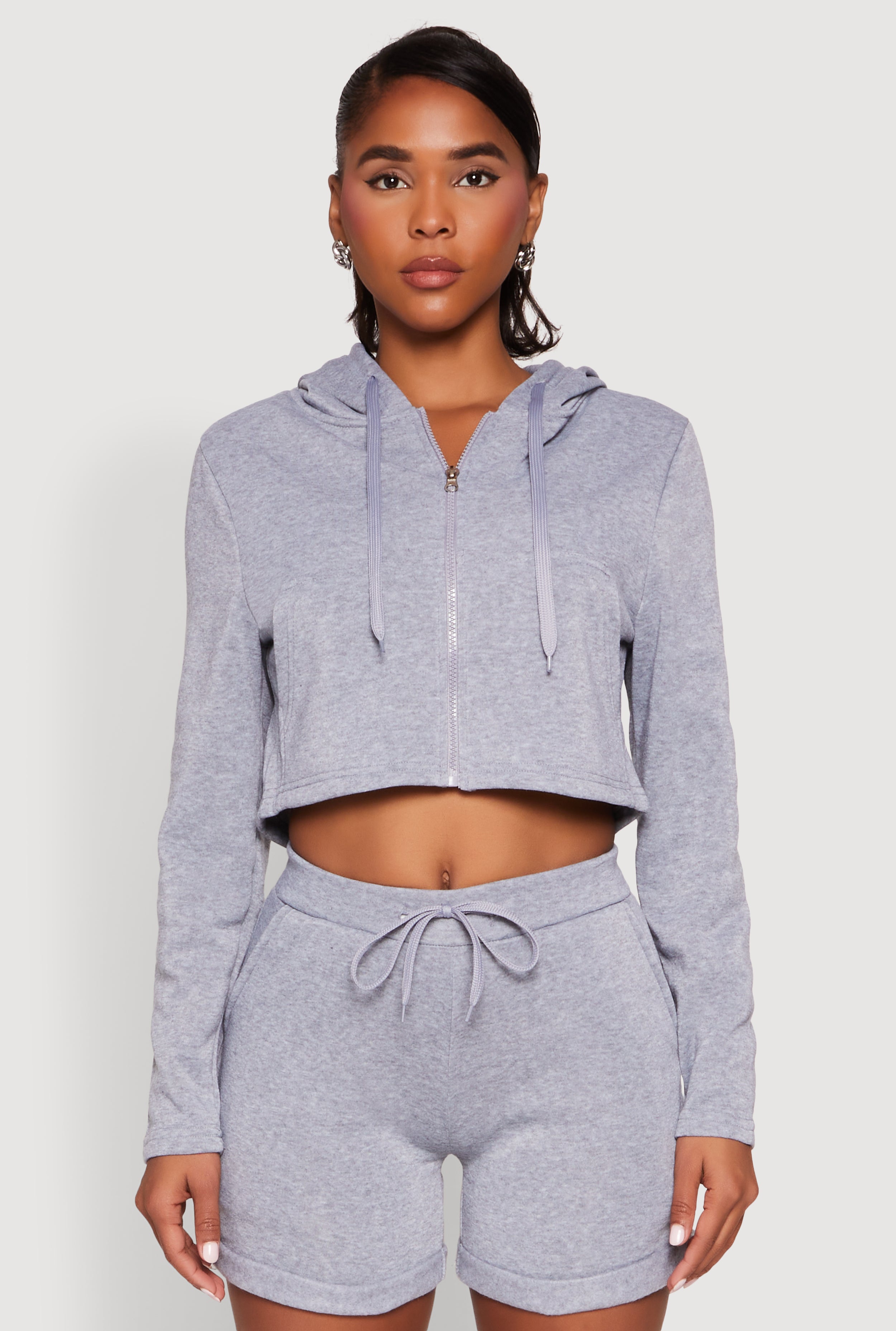 Fleece Lined Rib Knit Zip Front Sweatshirt