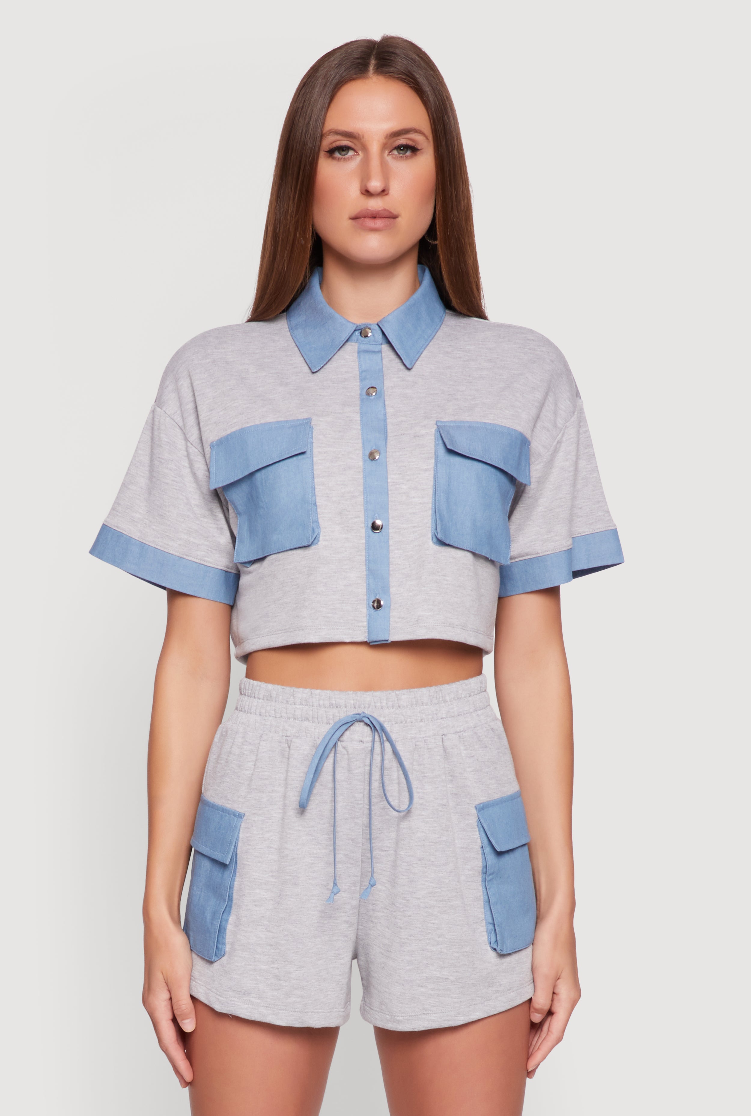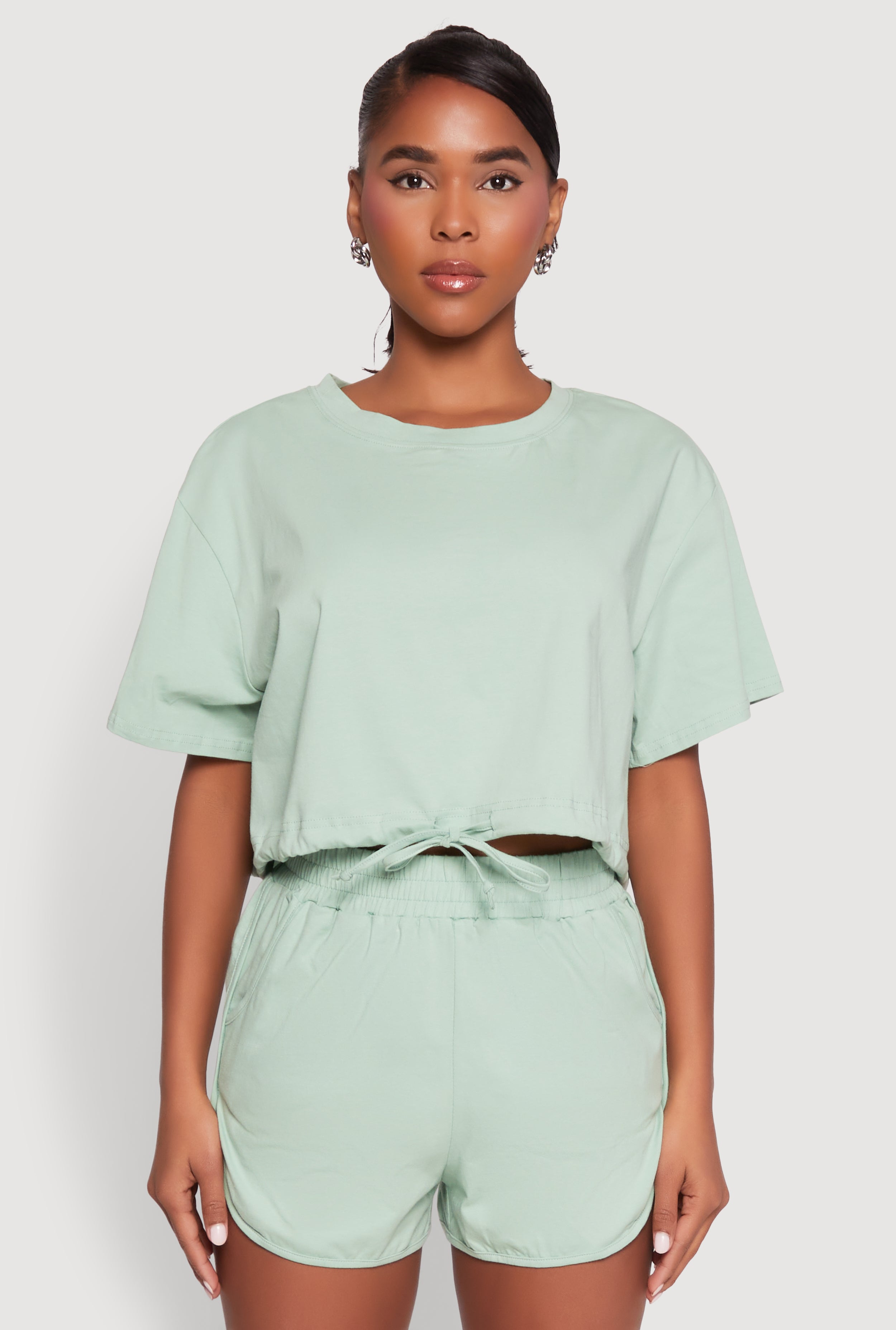Daisy Short Sleeve Drawstring Hem Crop Top