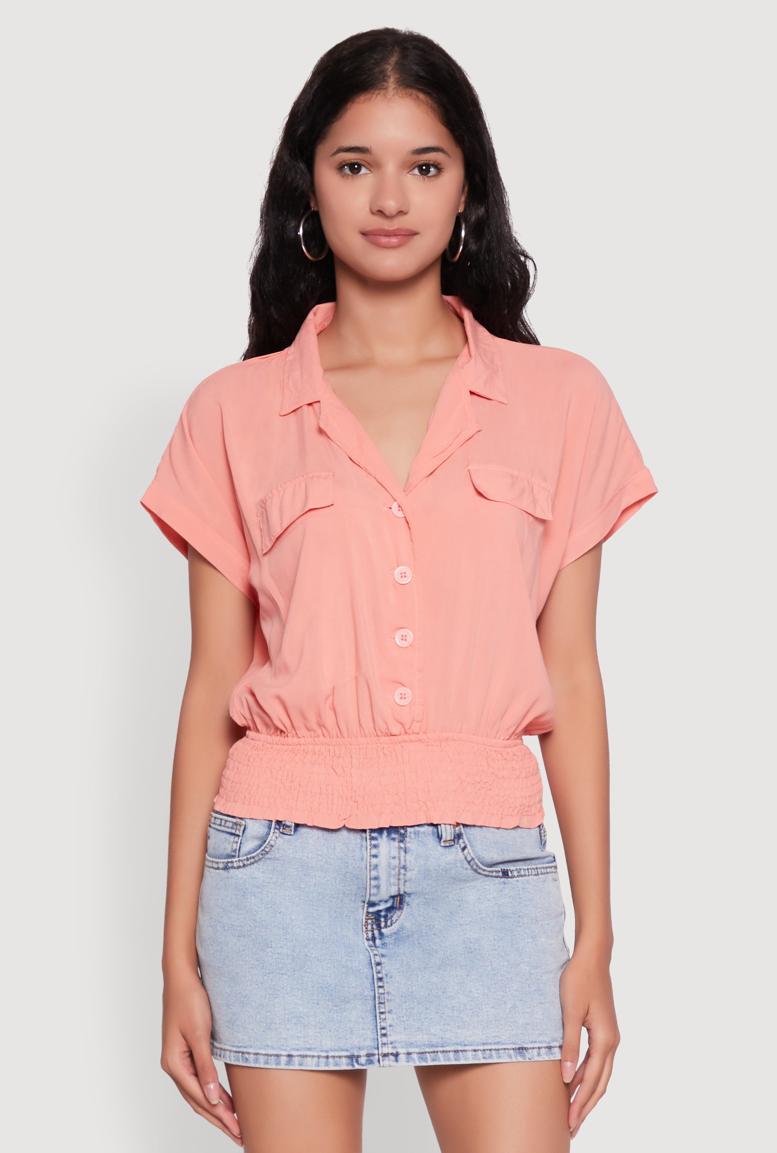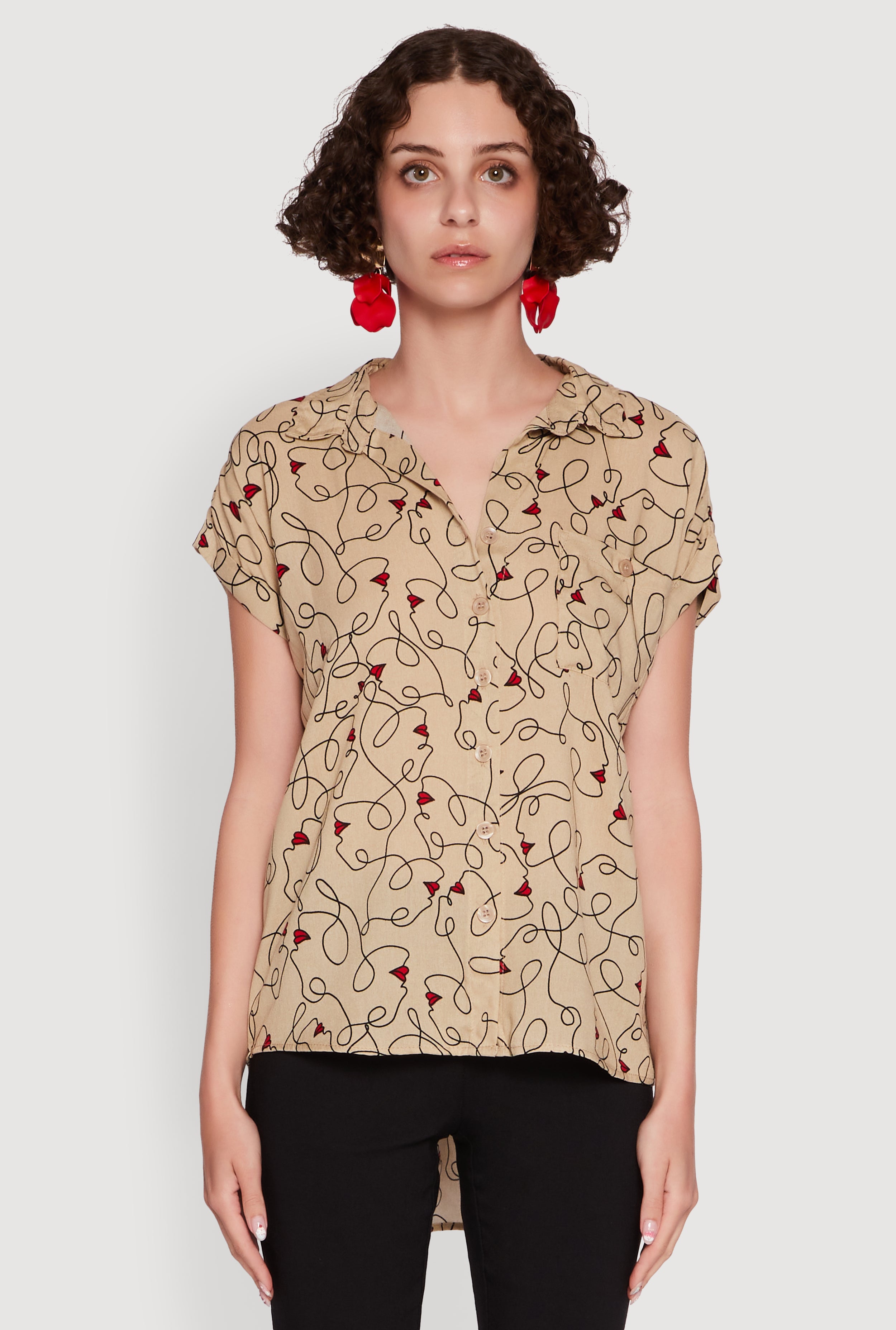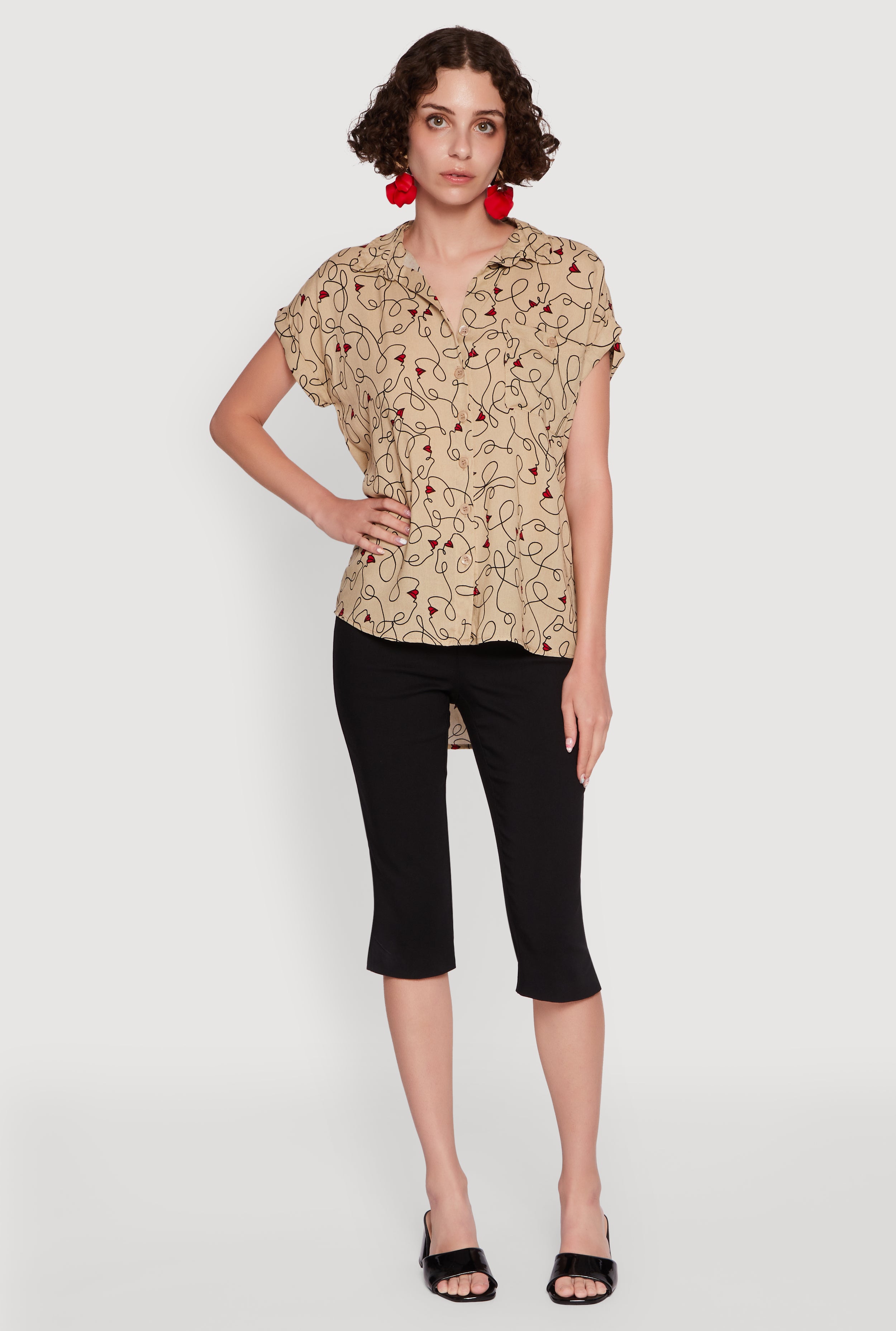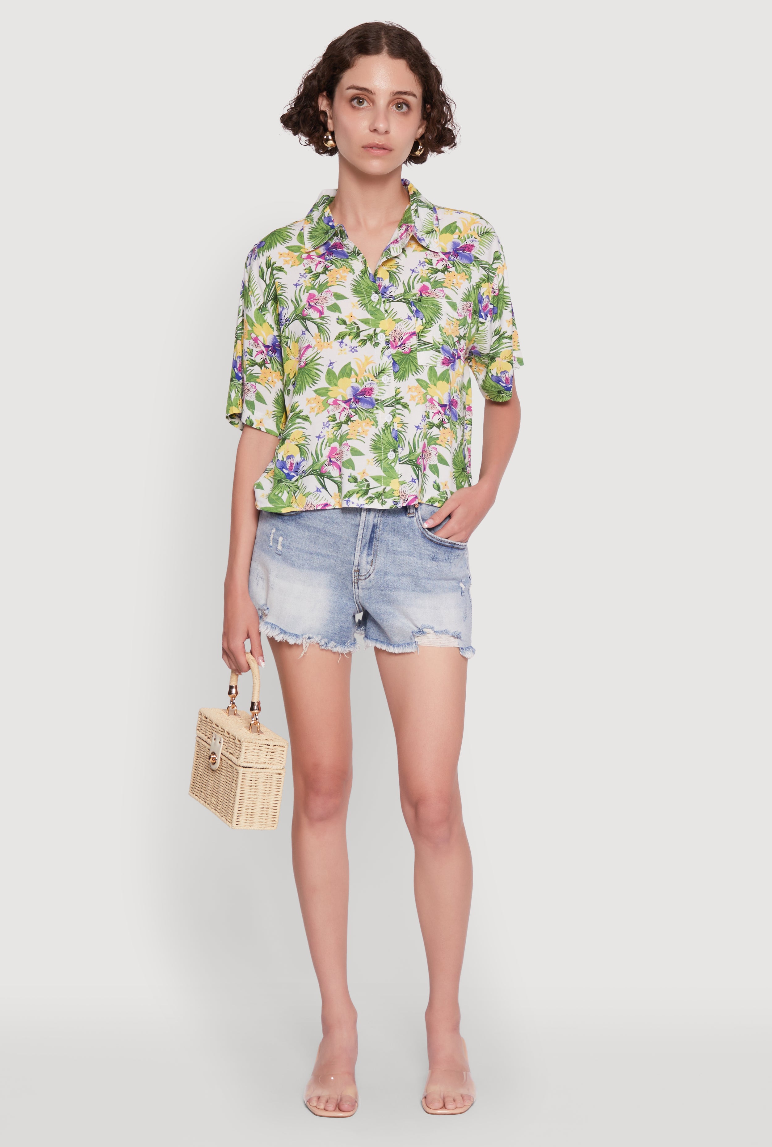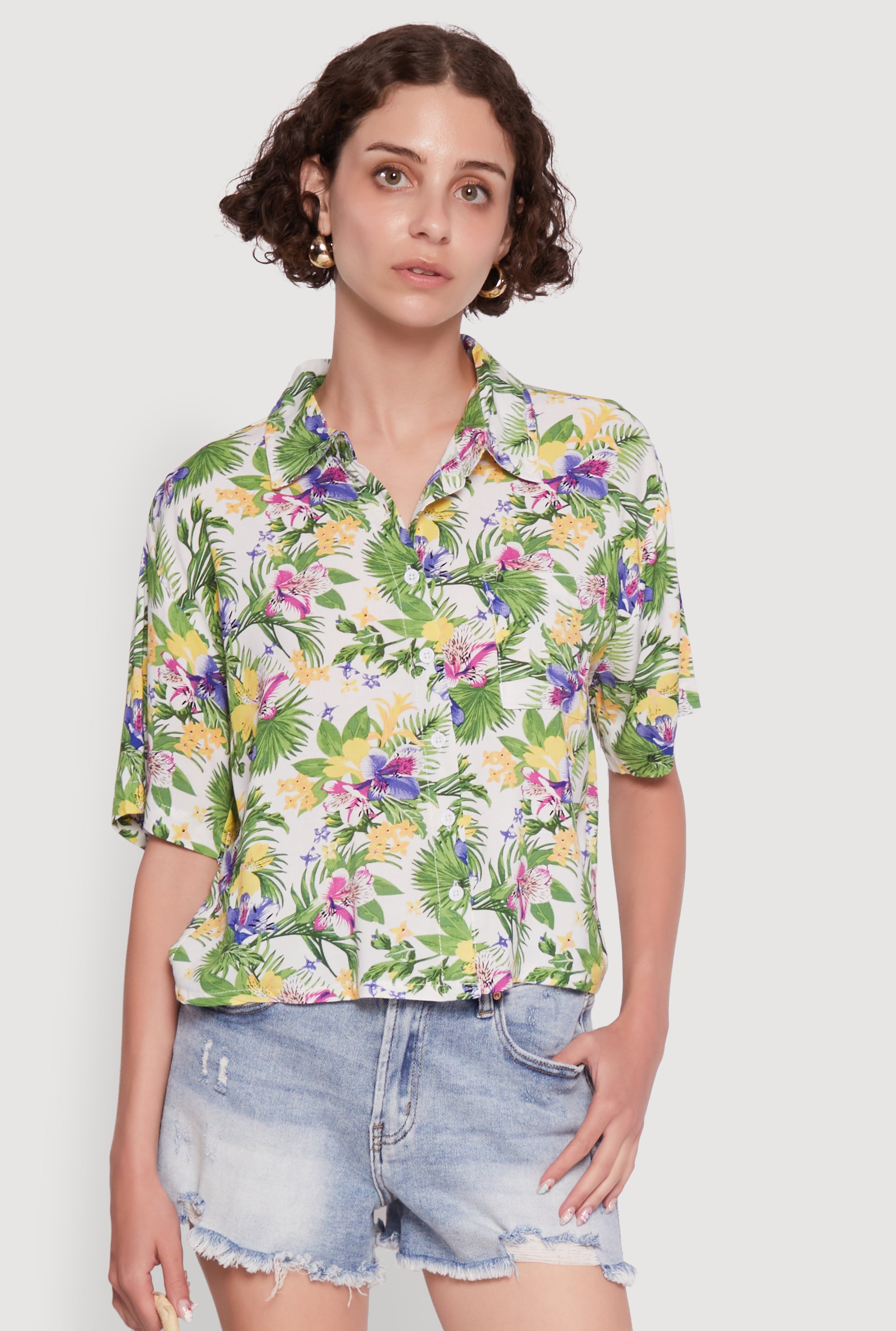 Trendy Tropical Floral Button Front Short Sleeve Shirt