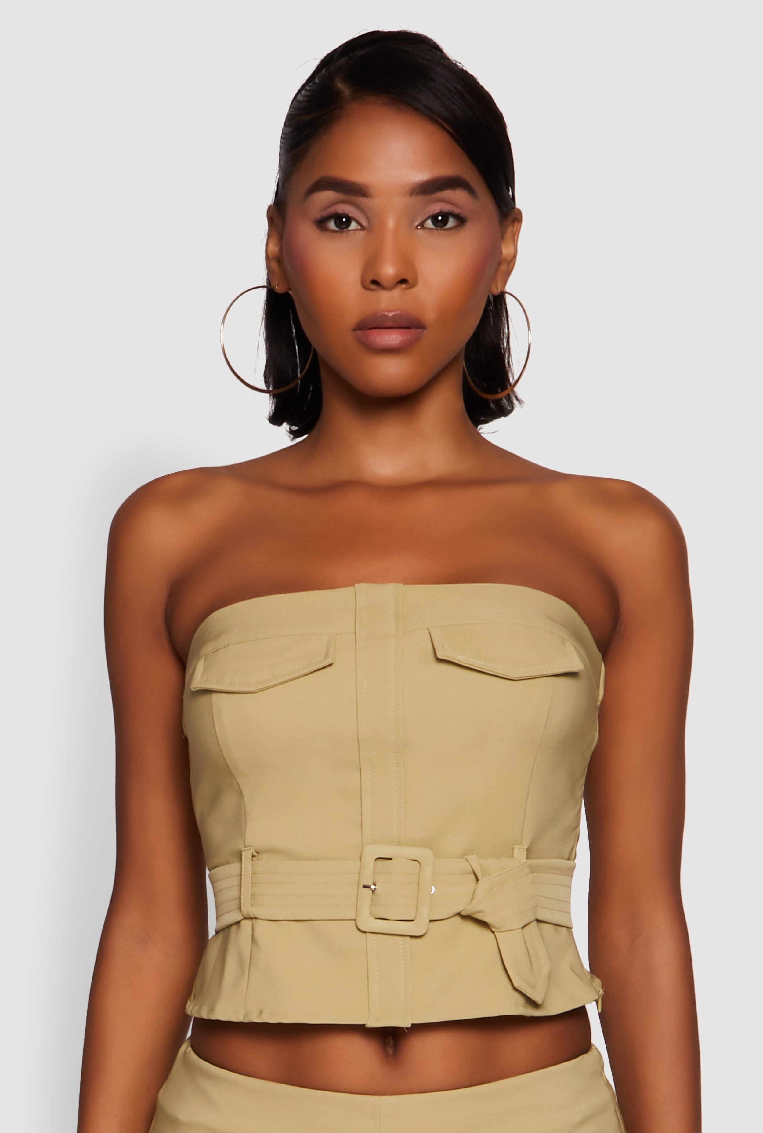 Haute Monde Flap Detail Belted Cropped Tube Top