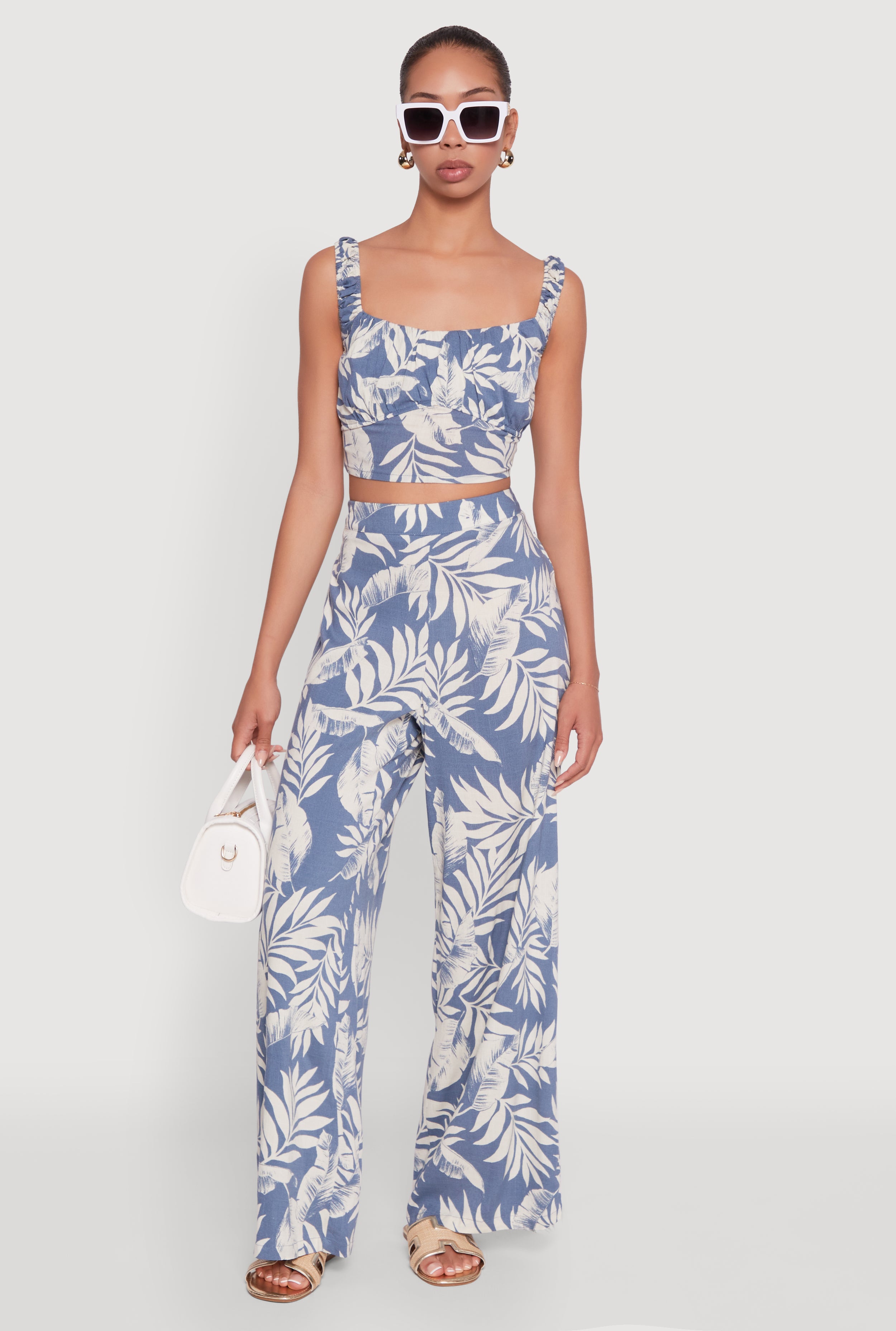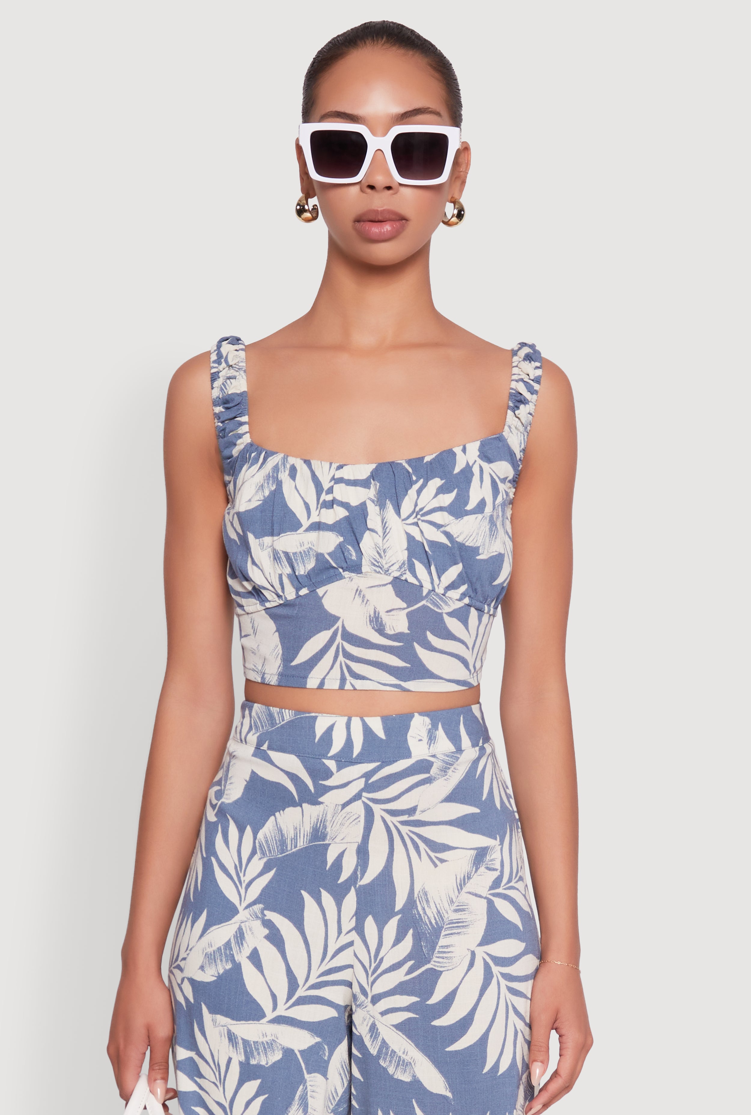 Iris Sleeveless Leaf Print Scoop Neck Crop Top