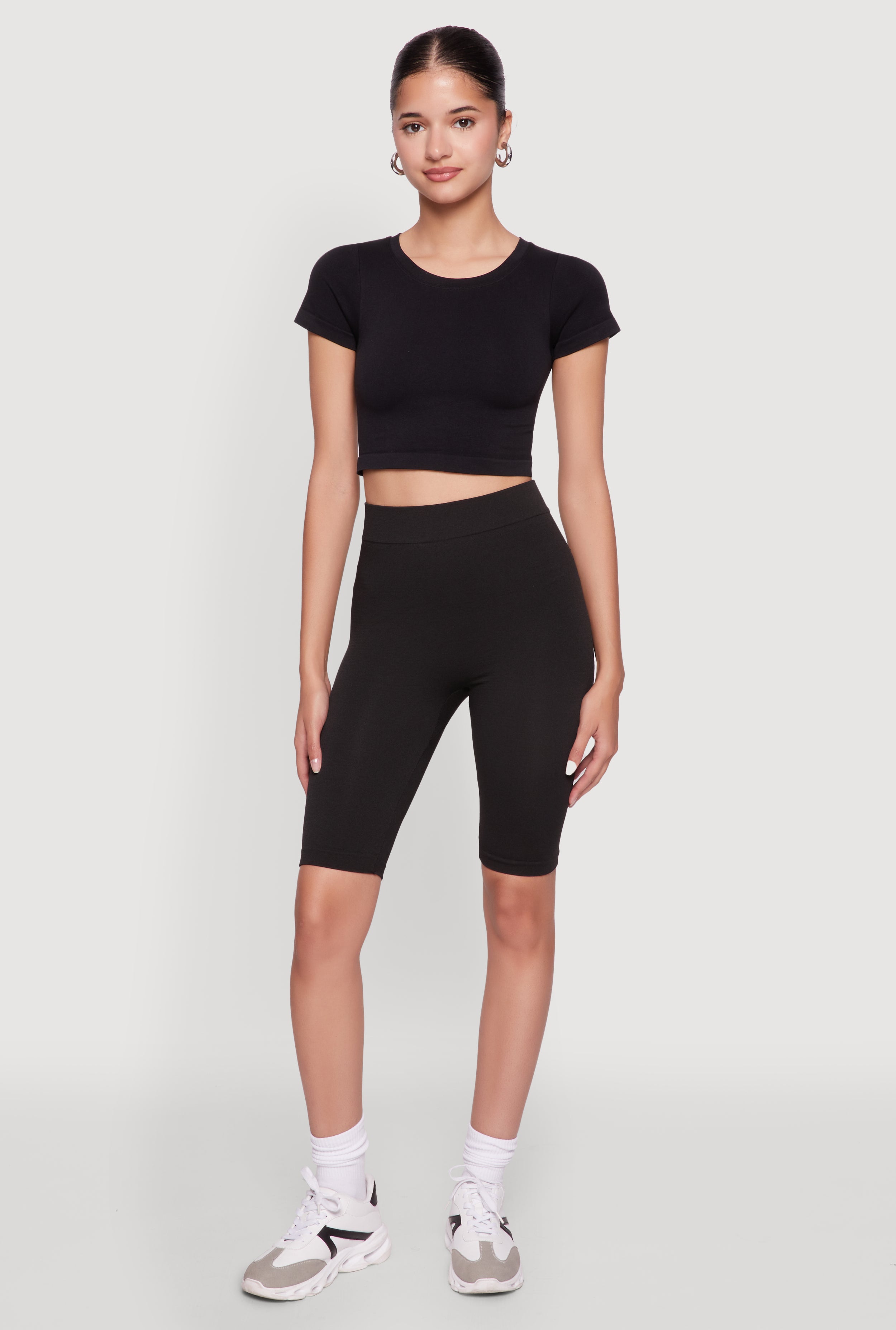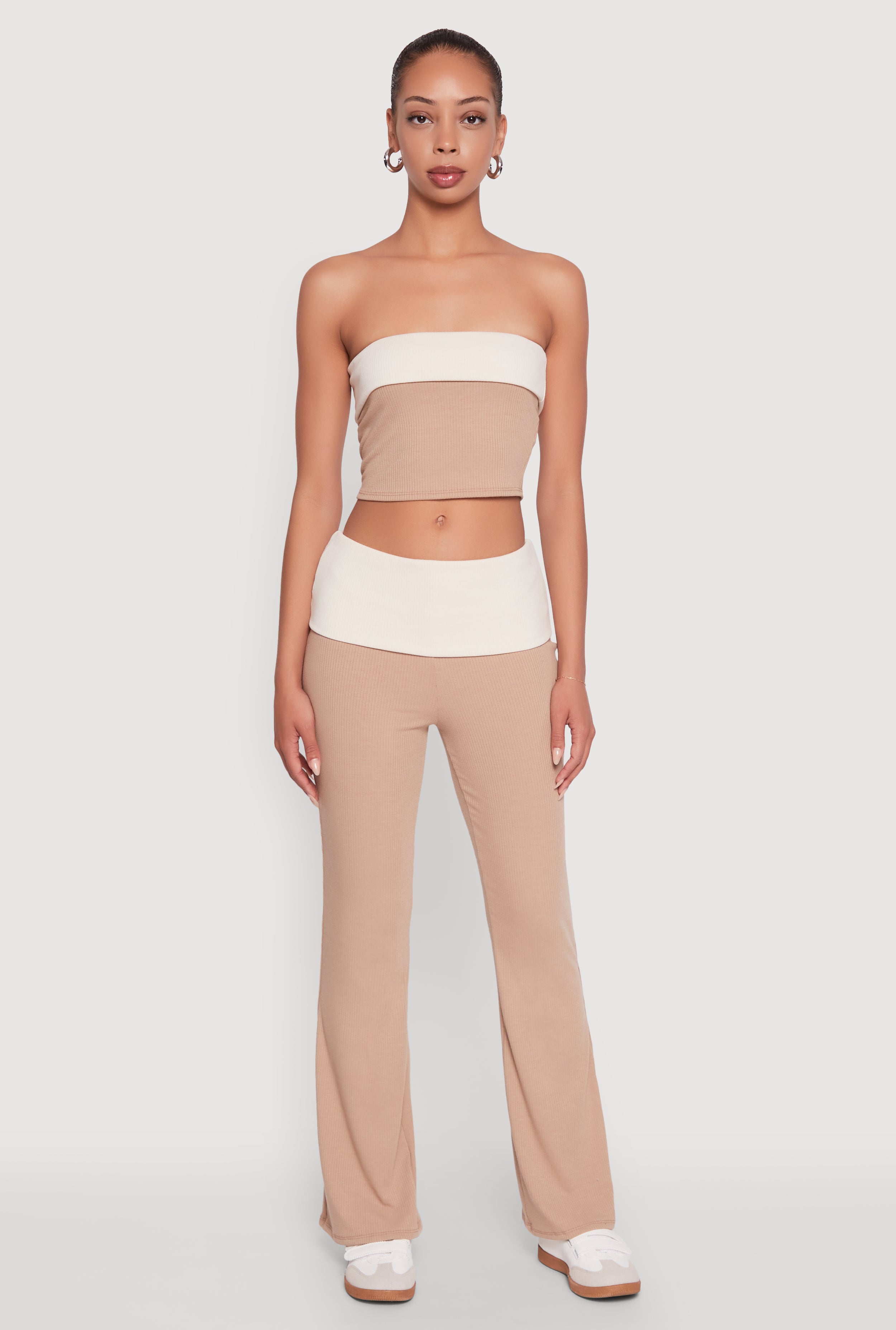 Stylish Rib Knit Contrast Fold Over Cropped Tube Top