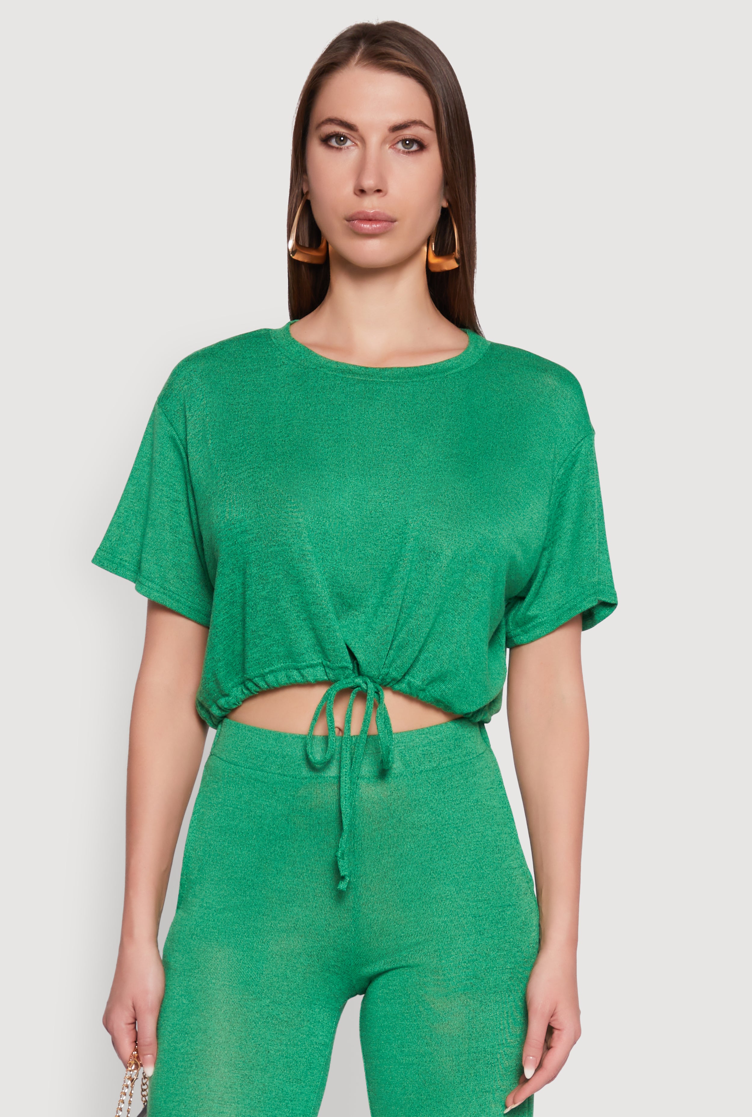 Daisy Drawstring Hem Crew Neck Cropped Tee